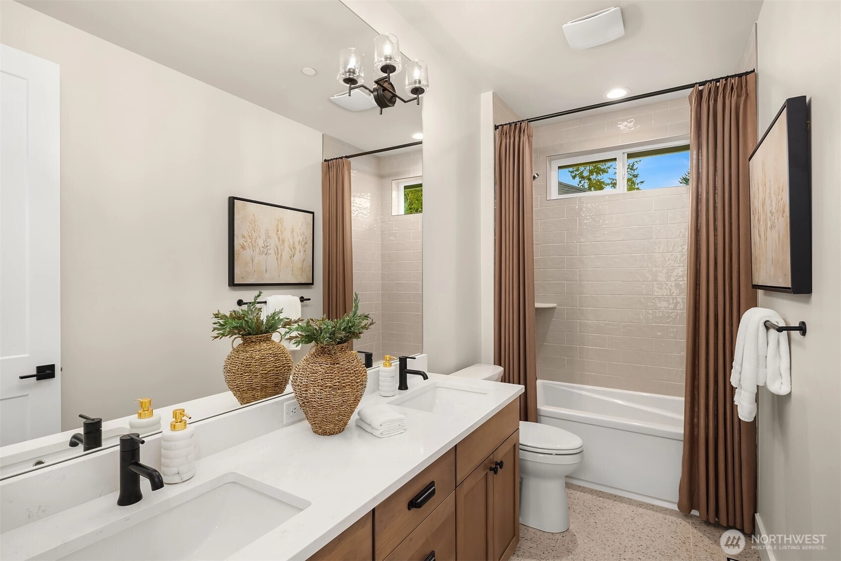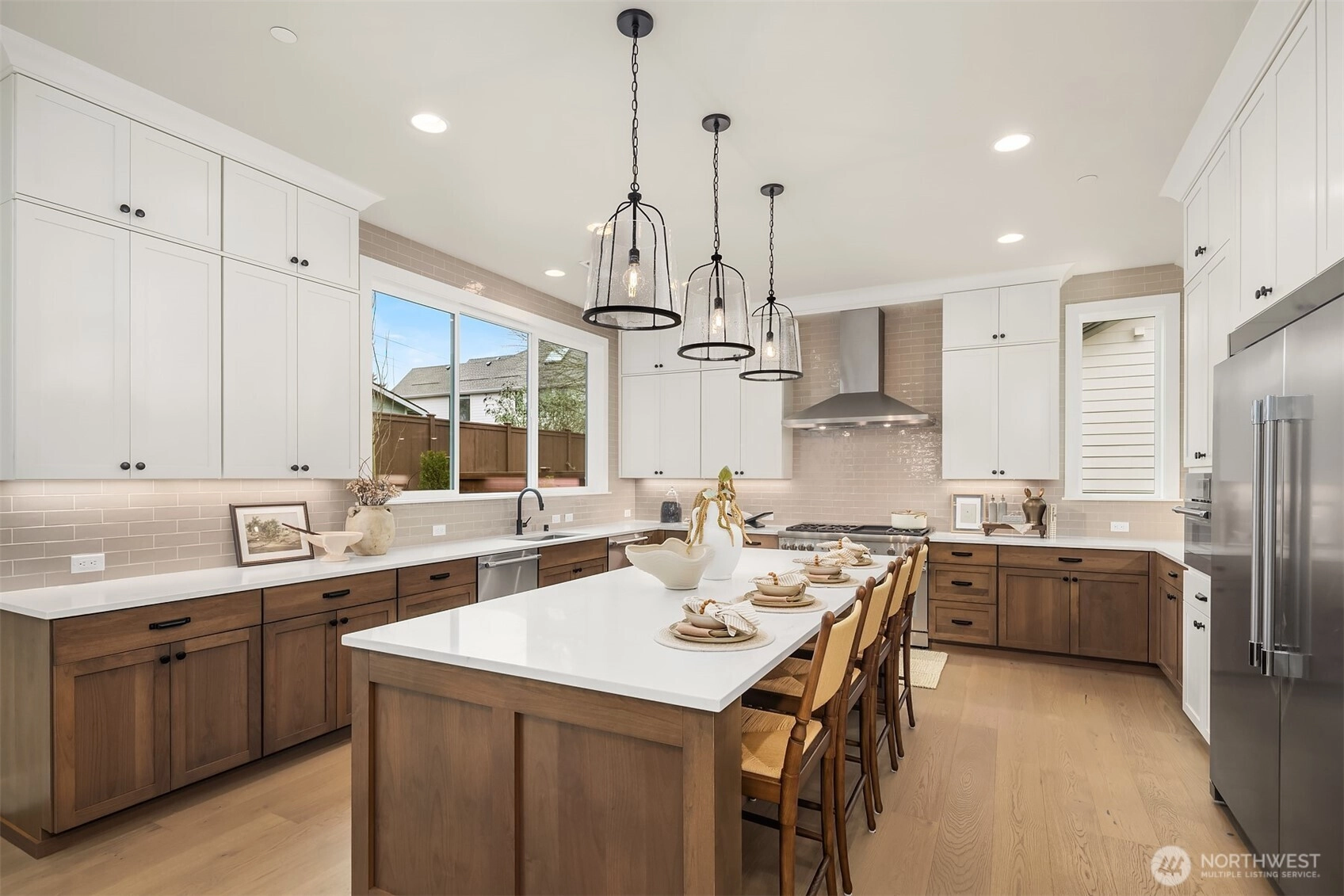 Murray Franklyn proudly introduces Jutta’s Garden & our stunning NEW Martinsville plan. This exceptional 5-bedroom, 4.5-bath home with a main-floor den blends comfort, flexibility, and modern elegance. Premium finishes include slab-quartz countertops in the kitchen and all baths, a Frigidaire full-size refrigerator and freezer, wide-plank engineered hardwoods, and stately 8-foot interior doors. The spa-inspired primary suite offers a mud-set shower and richly tiled flooring. Soaring windows fill the home with natural light, while the covered outdoor patio with fireplace creates a true indoor-outdoor retreat. All nestled in a beautiful new community with nearby parks and trails—just minutes to Redmond, Bellevue, and abundant local amenities.