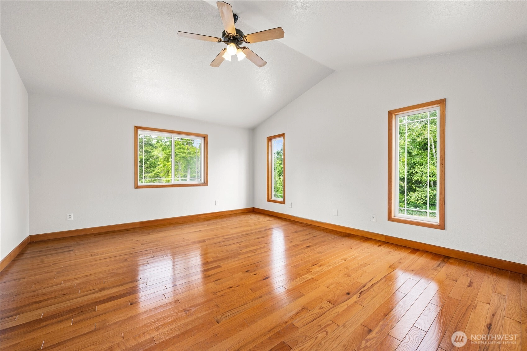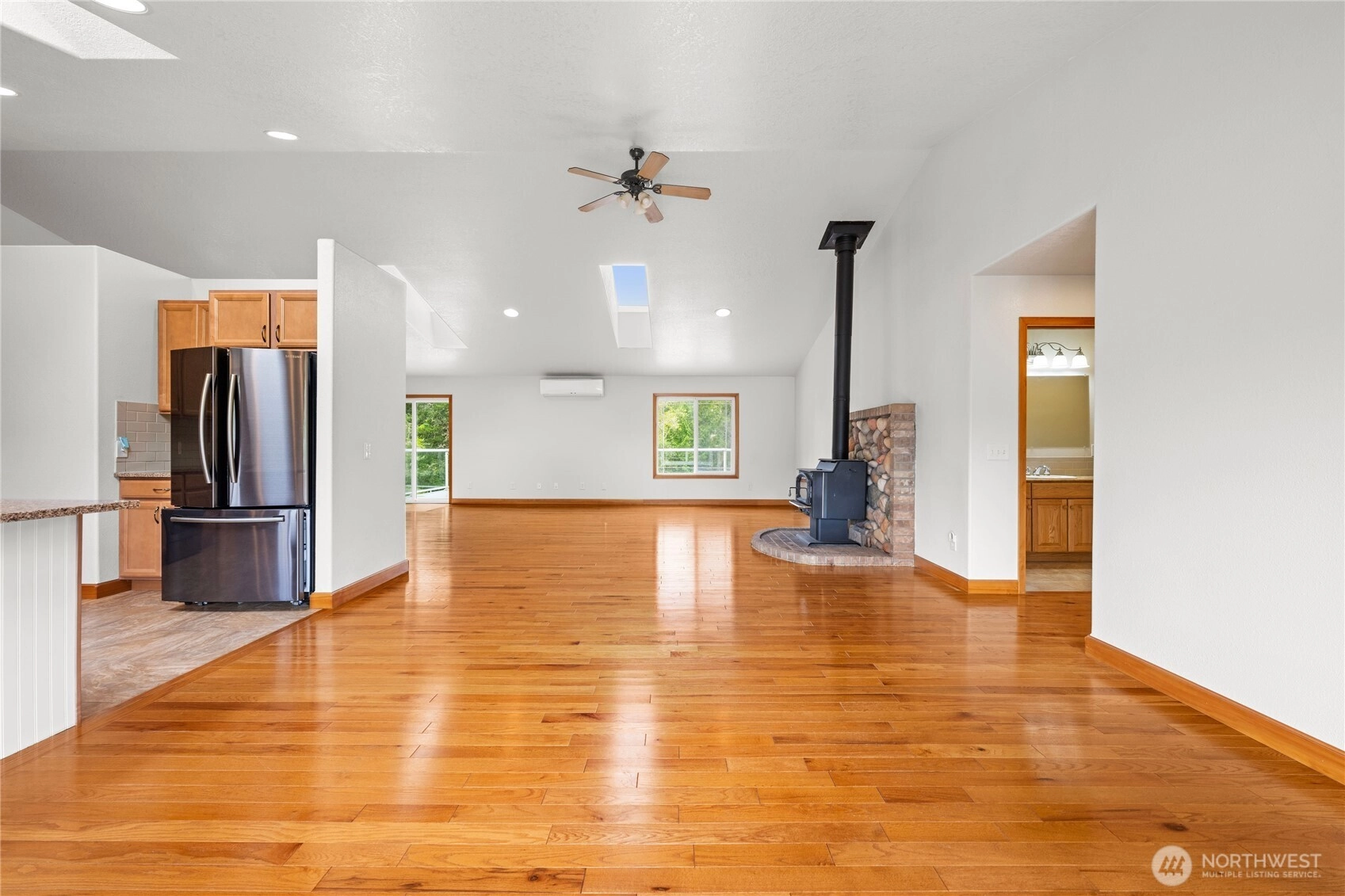 Experience country living in this well maintained, remodeled two story home on 5 acres. Home offers 2200 sq ft of living space above a spacious 32x50 three car garage. Interior highlights include 3/4 inch hardwood oak floors, solid wood doors, quartz countertops, and black stainless kitchen appliances. Primary suite features a jacuzzi tub. Home is equipped with a tankless three appliance water heater plus a whole house water filtration system. Other upgrades include a new roof and skylights, enclosed blue pine soffits, a 40x50 shop with cement floors and 10x10 doors, chicken coop with attached shed and fenced garden area with mature fruit trees. The yard is also partially fenced. A perfect blend of modern efficiency and rural charm.