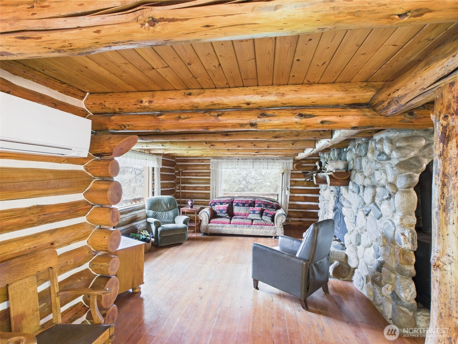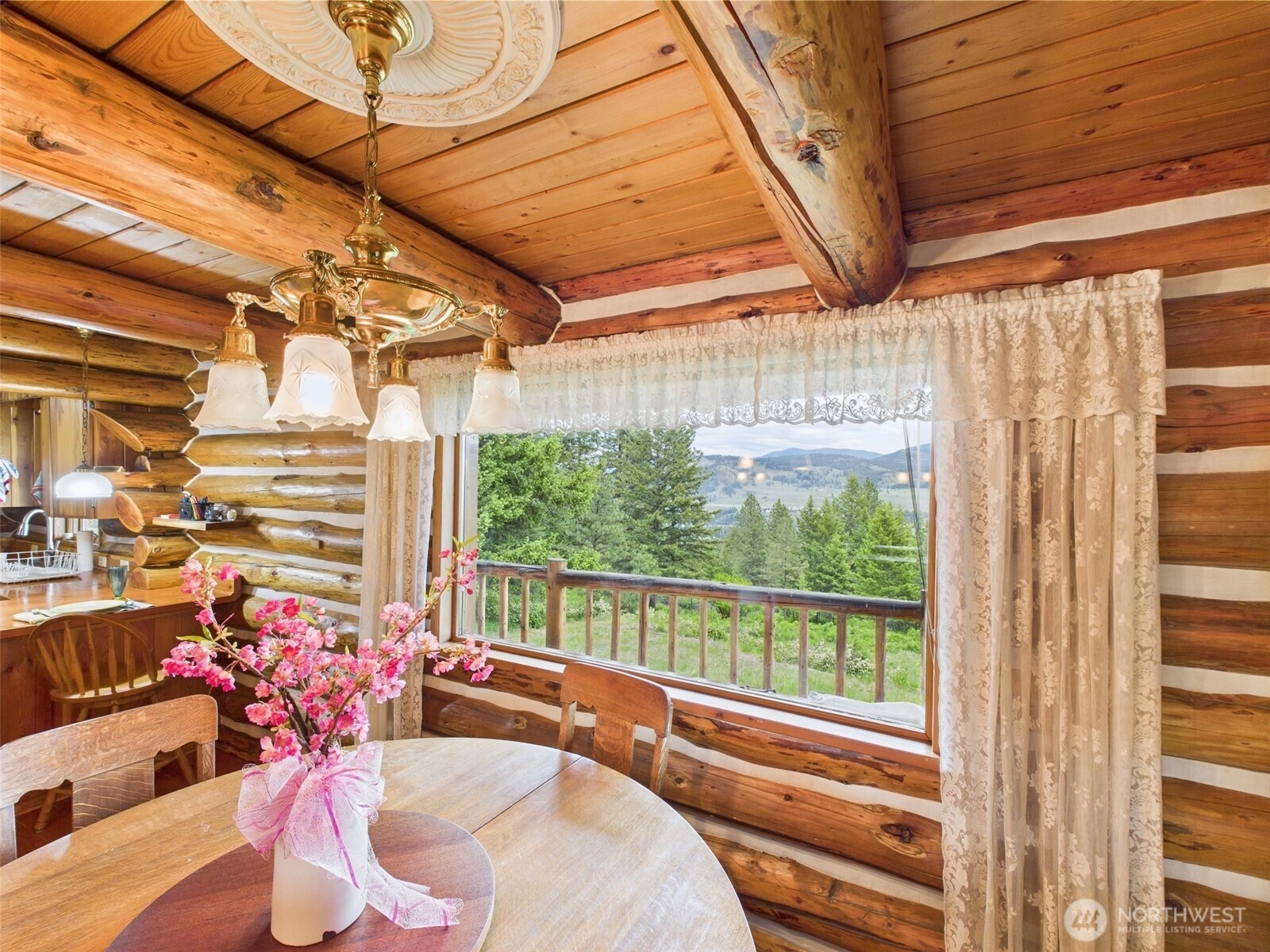Experience serene mountain living in this stunning 5-bedroom 4-bath log home overlooking Curlew Lake. Situated on 42 forested acres, this 4,100 sq. ft. property features a lodge-style interior, exposed beams and expansive windows that showcase sweeping lake and forest views. Whether you're looking for a full-time residence, vacation getaway or multi-use investment, this turnkey retreat blends rustic charm with modern convenience in a peaceful private setting. New kitchen appliances, new heat pump w/mini splits.
