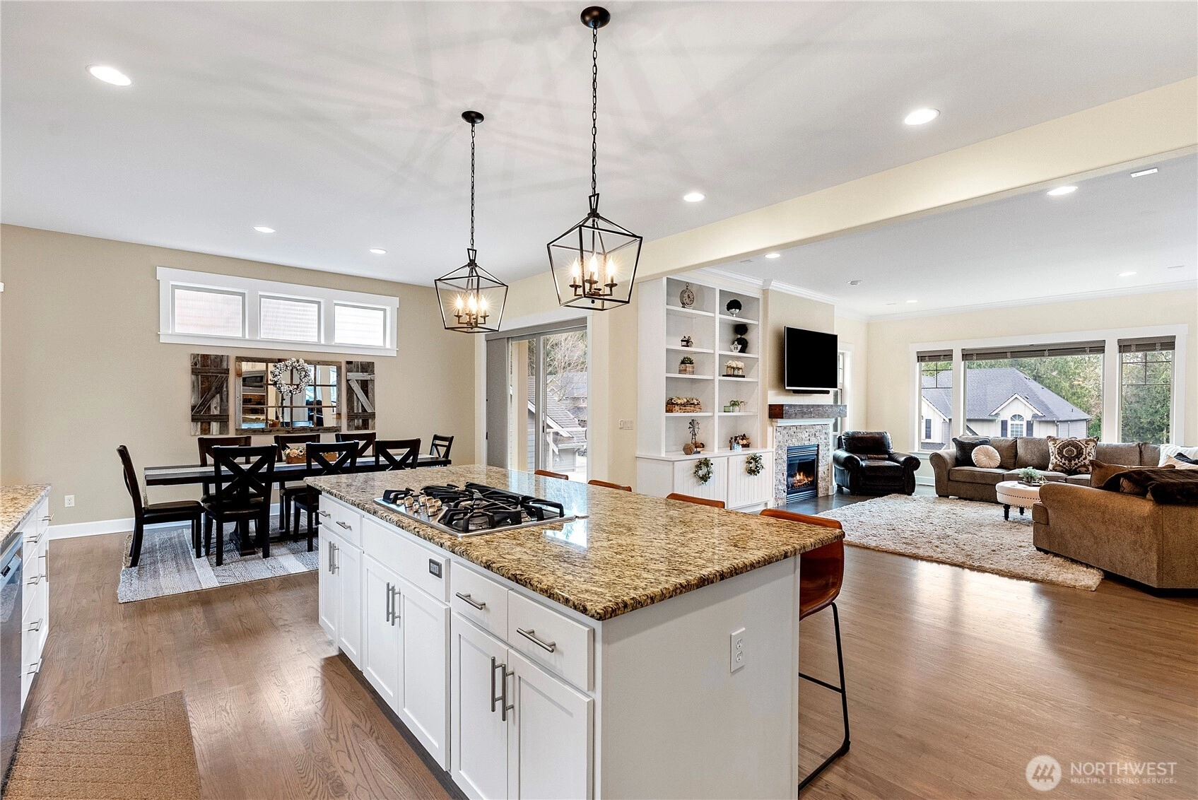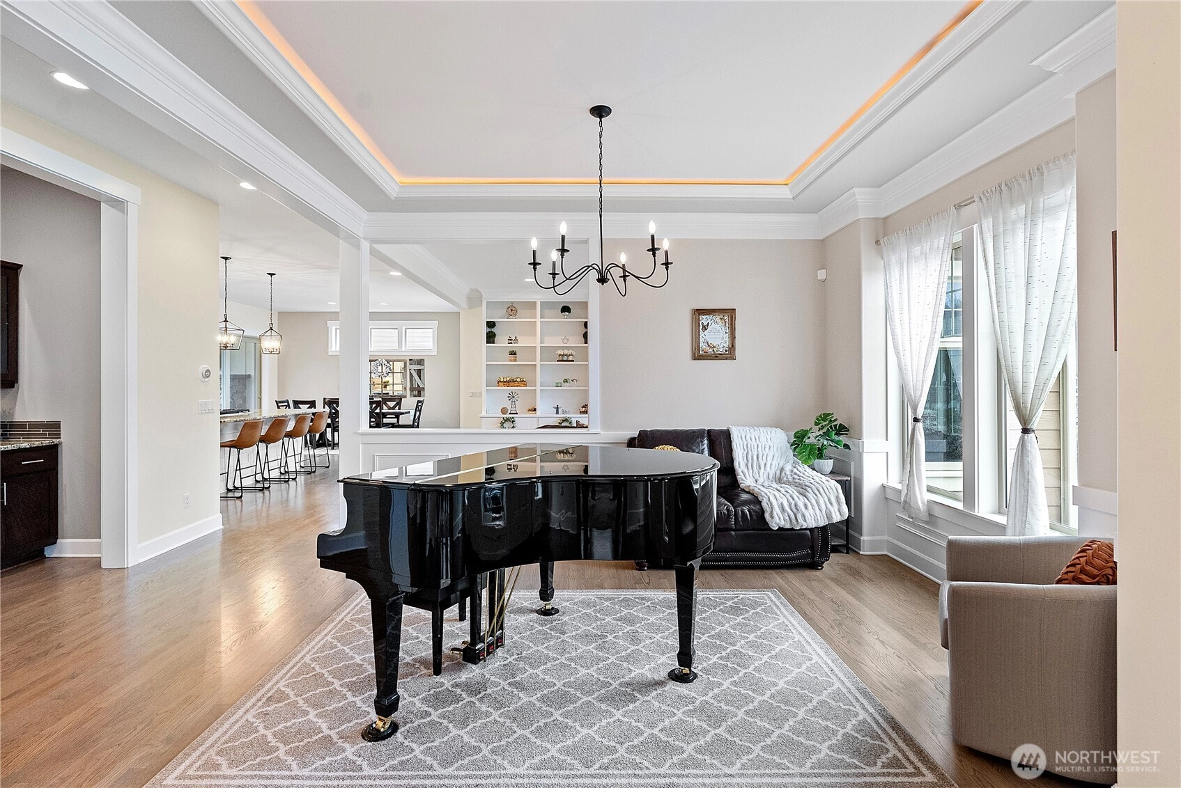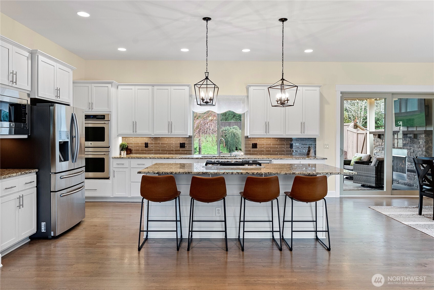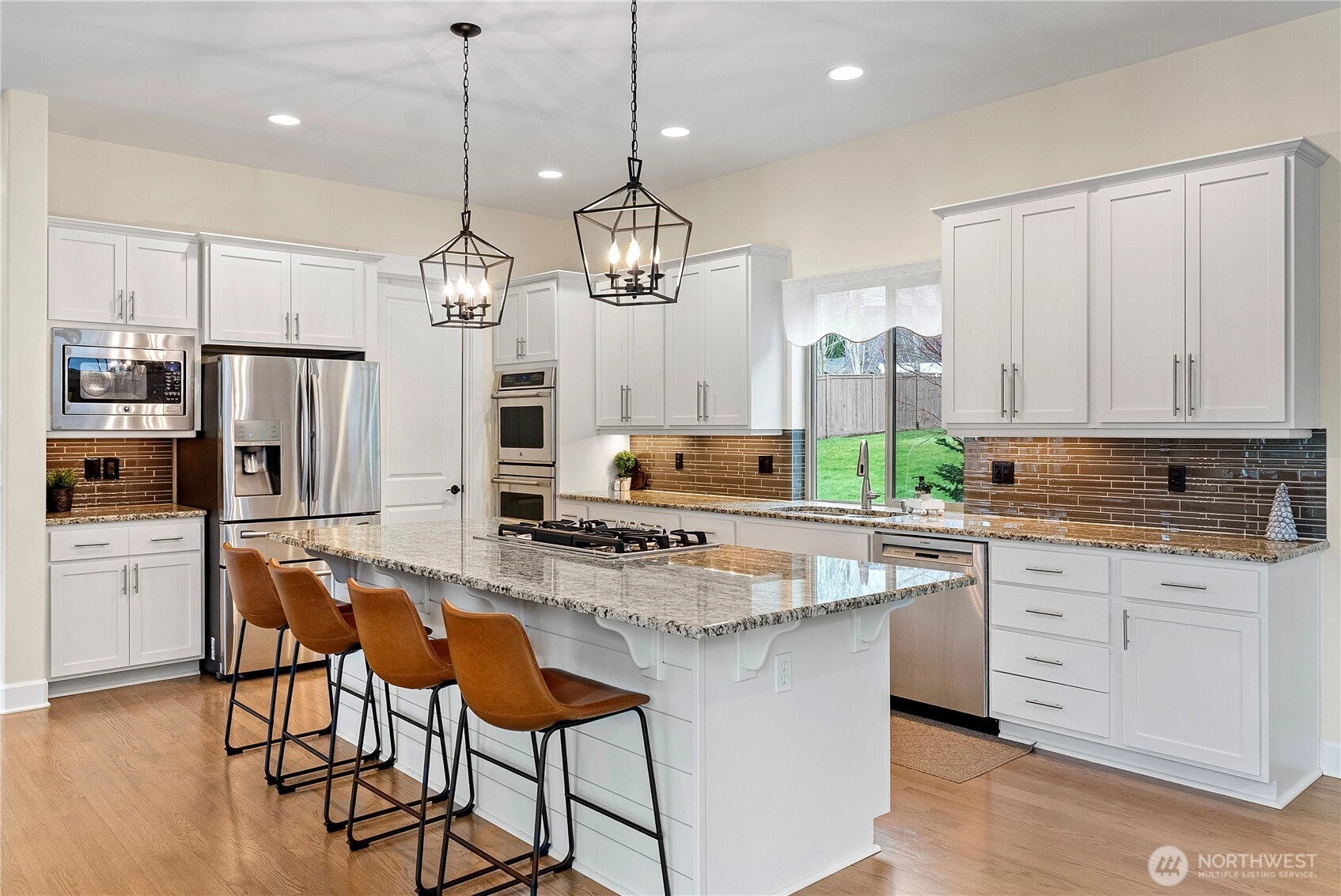Timeless elegance & modern living converge in this beautiful Chelsea Park home. 10' coffered ceilings, hardwood floors & abundant natural light. Built for entertaining with formal dining room, wet bar w/wine fridge & chef's kitchen w/granite counters, GE Cafe appliances, oversized island & giant addtl eat-in space. Covered patio, outdoor fireplace, and grilling shed extends living space in all seasons. Primary suite w/vaulted ceilings, soaking tub & oversized walk-in closet. Don't miss the bonus space and main level bedroom. Easy access to Hwy 16 and situated in the Peninsula School District. Fenced backyard, 3 car garage w/shop space. 2 year old 50 year roof and whole home generator.