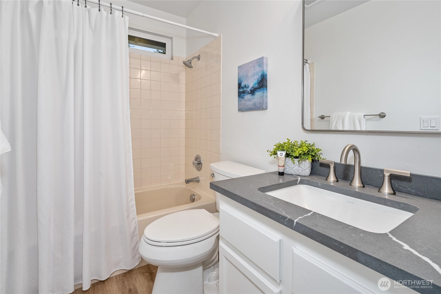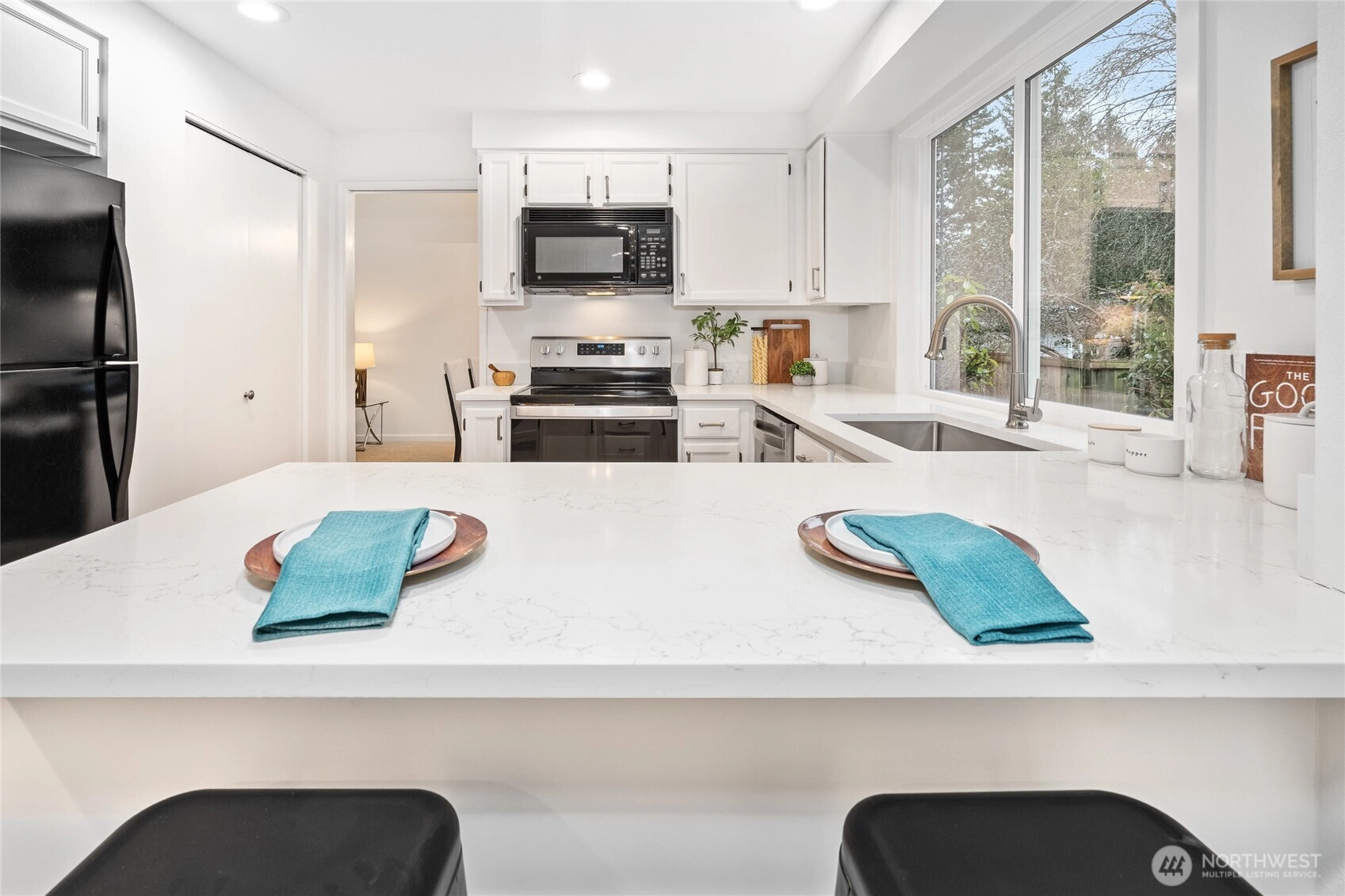 After over 30 years of ownership, no expense was spared to prepare this beautifully remodeled Audubon Ridge home for its new owner. Set on a sunny corner lot, it features vaulted ceilings, skylights and a cozy wood-burning fireplace across the living, dining and family rooms. The remodeled primary suite offers two walk-in closets. Updates include new windows, refinished and new LVP floors, new carpet, interior paint, windows, quartz counters, new lighting, Decora switches/outlets, wide baseboards, new water heater and refreshed cabinetry. New sinks, faucets, toilets and water heater add peace of mind. Enjoy the fully fenced, newly landscaped yard with patio, steps to the park, top-rated Issaquah Schools and Klahanie amenities.Pre-inspected.