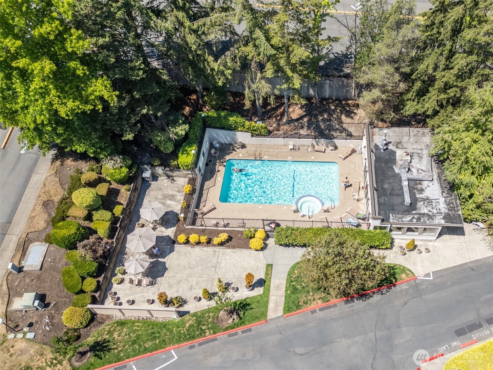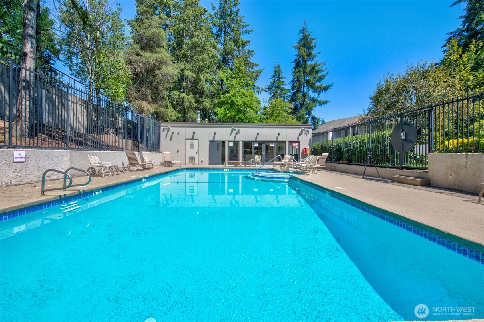 Welcome to The Ridge Bellevue. Updated 2 bed/1.75 bath, home features a modern kitchen w/white cabinetry, new stainless steel fridge and dishwasher;open pass through to the dining area. Enjoy the large covered deck, cozy fireplace, fresh interior paint/brand-new vinyl flooring throughout. The primary suite includes an en-suite shower. New in-unit washer /dryer. Two designated parking spaces (one near the entry and one covered carport space w/ large storage). Community amenities include a pool &cabana. No rental cap. No special assessment. Well-managed HOA.Convenient to Hwy 520, Bellevue Square, and major campuses. Clyde Hill Elementary, Chinook Mid School &Bellevue High. Move-in ready. Rare opportunity for top school living and investment.