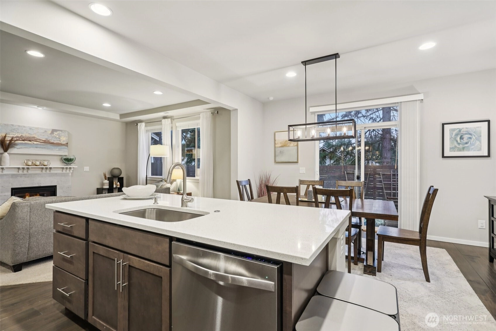 Welcome to this impeccably maintained 5 bed/2.75 bath home tucked into a peaceful cul-de-sac & designed for comfort & style. A functional layout is enhanced by engineered hardwood floors & features a main-level bedroom w/a ¾ bath, + a spacious kitchen, quartz coutertops & a large island that flows seamlessly into the dining area—perfect for everyday living or entertaining. Upstairs, the expansive primary suite offers vaulted ceilings, a walk-in closet, & a spa-inspired 5-pc bath. Enjoy central A/C, upgraded NW contemporary finishes throughout & a fully fenced backyard w/ low-maintenance turf & paved patio space. Ideally located near I-405 & Hwy 167 w/ easy access to major employment hubs, shopping, & dining. Pre-inspected & move-in ready.