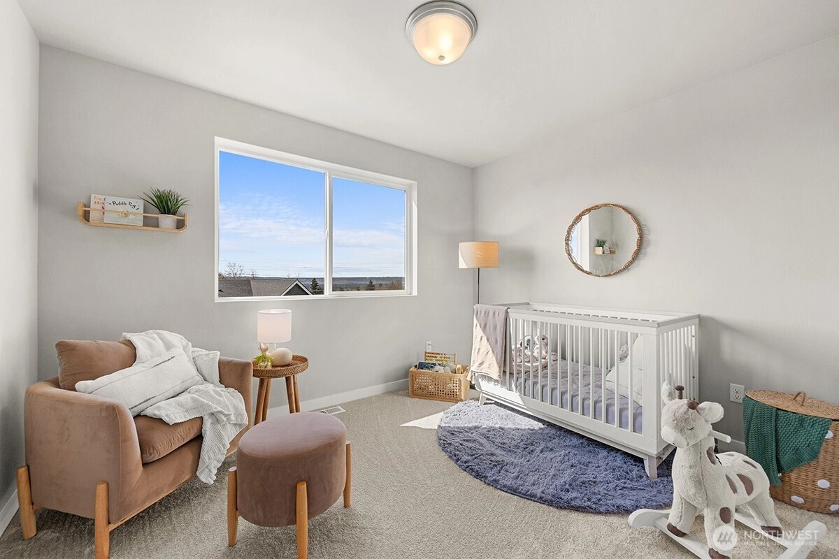 Noble Ridge is an exquisite boutique community of just fourteen homes, perfectly positioned high above the bluff to capture breathtaking panoramic views of the Puget Sound and the Olympic Mountains. Tucked away on a quiet dead end cul-de-sac with direct trail access, this desirable setting offers privacy, tranquility, and a strong connection to nature while remaining close to everyday conveniences. The Dakota on lot 7 is a thoughtfully designed home offering approximately 3,298 square feet of expansive living space. With six generously sized bedrooms, three and three quarter bathrooms, a dedicated office, and a flexible bonus room, this home easily accommodates multigenerational living, remote work, and entertaining. The open concept kitchen, dining, and great room create a seamless flow, highlighted by stunning engineered hardwood flooring, sleek quartz countertops, ample cabinetry, and a warm gas fireplace that anchors the space for cozy gatherings. The luxurious primary suite serves as a private retreat, featuring elegant finishes, a relaxing lounge tub, and a spa inspired atmosphere. New home, new year, and new possibilities await with the benefits of brand new construction, including modern design elements, energy efficient features, lower maintenance living, updated safety standards, and the peace of mind that comes with a new home warranty, making this an exceptional opportunity to enjoy refined living in a truly special location.
