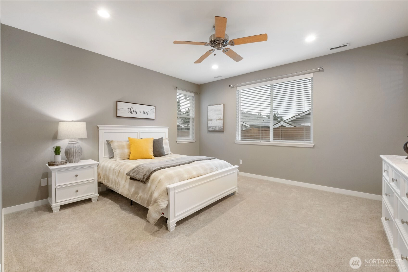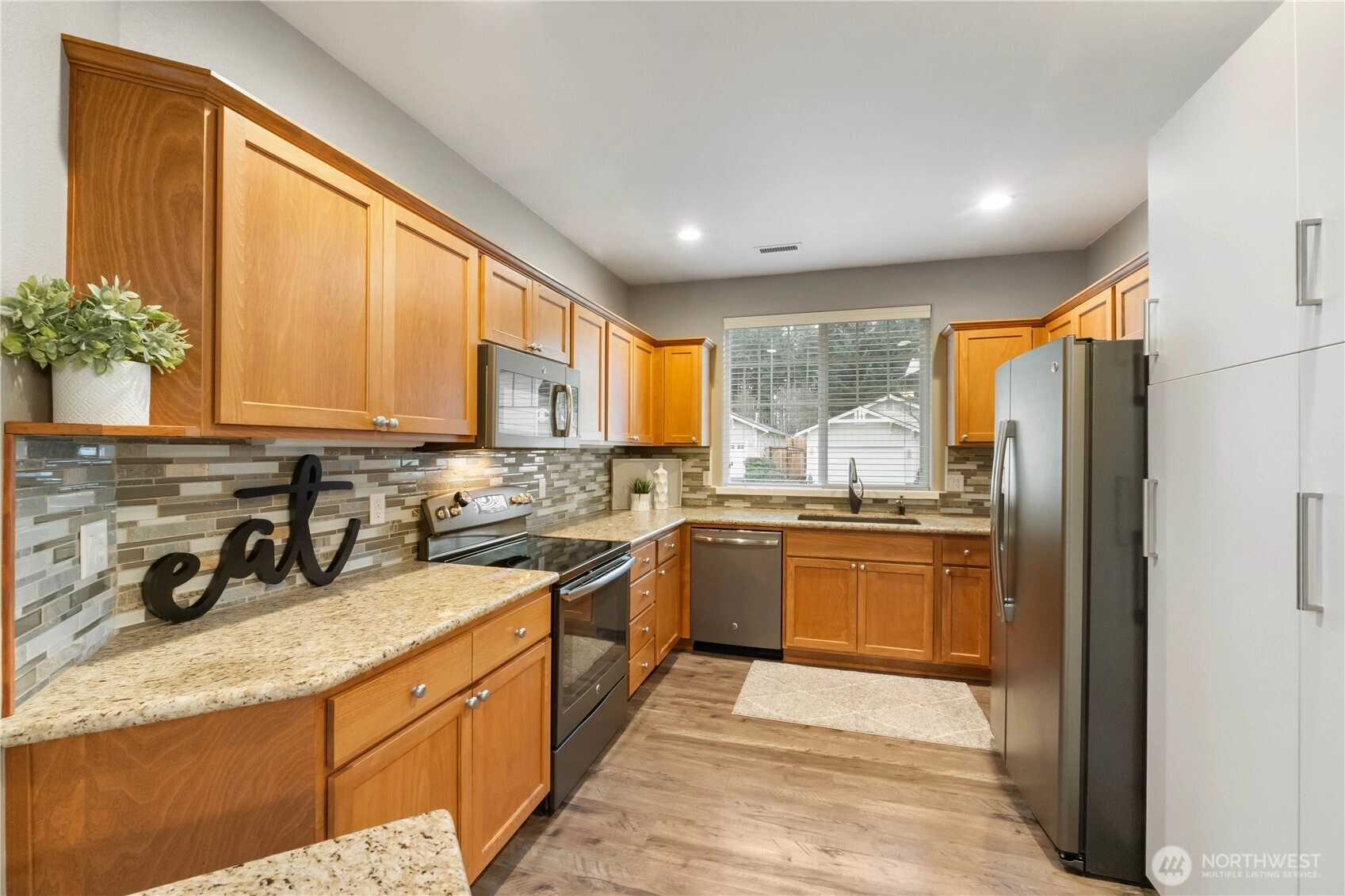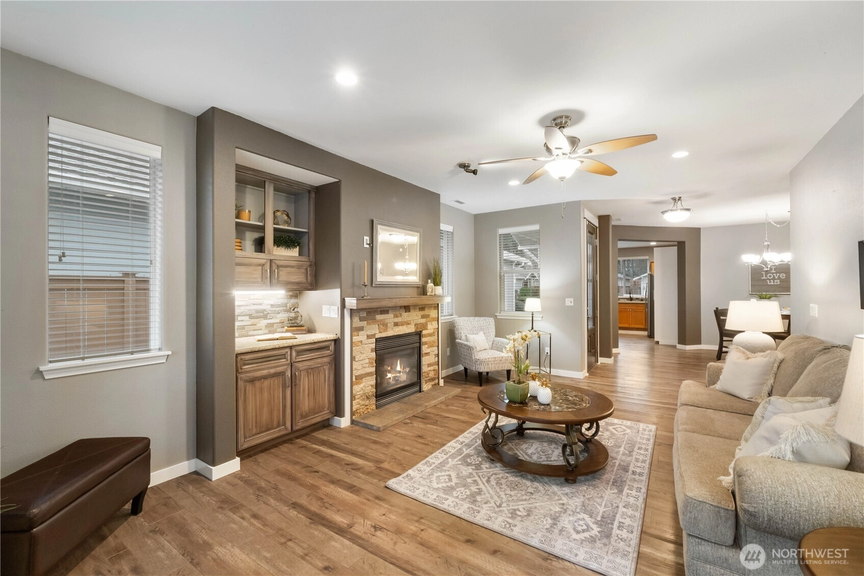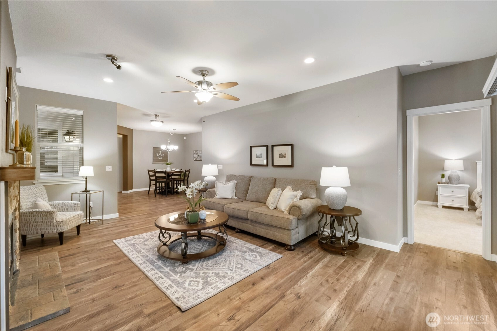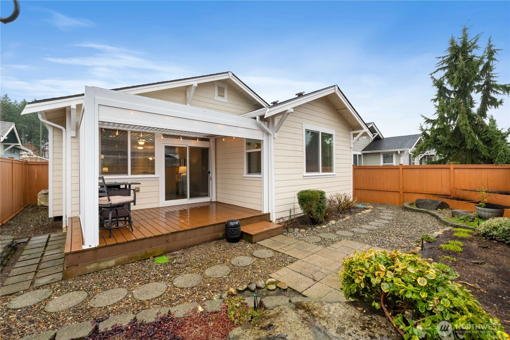 Fall in love with resort living at Jubilee-the premier 55+ adult community of the PNW. This low-maintenance home is located near the Lodge for easy access to enjoy all the amenities including Indoor Pool, Fitness Center, Trails, Social Events & Clubs. A popular Bayshore floor plan with 2-bedrooms and 1¾ bath offers a perfect blend of comfort and convenience. Special features include new carpet, built-in cabinetry in the kitchen and livingroom, granite countertops, stunning vinyl plank flooring in the main living areas, and A/C. Outside, enjoy a beautifully landscaped, low-maintenance backyard complete with relaxing covered deck with privacy screening, ideal for unwinding or entertaining. Garage has easy access custome storage and a sink!