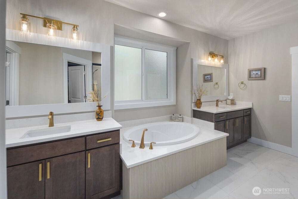 Luxury, style and convenience come together in this Rob Rice new build stunner in West Olympia’s Cooper Point! Situated on nearly an acre, this quality home is loaded with upgrades—think Monogram appliances, Cocoa maple cabinets, main floor primary suite w/spa bath, and dual walk-ins! Main also gives you 2 more bedrooms + den, while the upstairs flexes with a bonus room, wet bar, full bath, rec space. Covered patio + lush yard = easy outdoor living. Plus: $65K+ in extras incl. generator & custom storage solutions. All wrapped in gorgeous finishes and close to everything you love in Olympia. It's the kind of home that hugs you back. Must see!