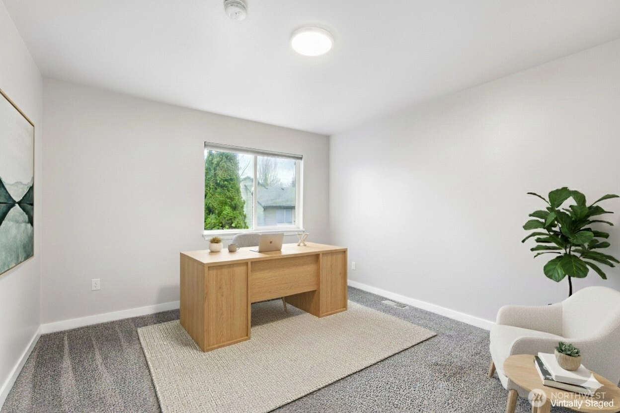 Step into this stunning three bedroom, two and a half bath townhome designed for comfort and convenience. The open-concept main level features Luxury Vinyl Plank Flooring, bright living and dining areas with large windows and a cozy gas fireplace. The updated kitchen boasts quartz counters, ample cabinetry and a spacious island with seating—perfect for entertaining. Upstairs, the primary suite offers generous space, two closets (including a walk-in), a private bath with dual quartz sinks and even blackout blinds. Two oversized bedrooms —each large enough for a king bed—share a full bath with a tub and in-unit laundry adds to everyday ease. Enjoy the private patio that opens to a shared greenbelt/play area, the attached two-car garage, extra storage, 240-volt/ 50-amp EV outlet, a private driveway with room for two more cars and close to I-5, Home Depot, shopping, restaurants and Paine Field!