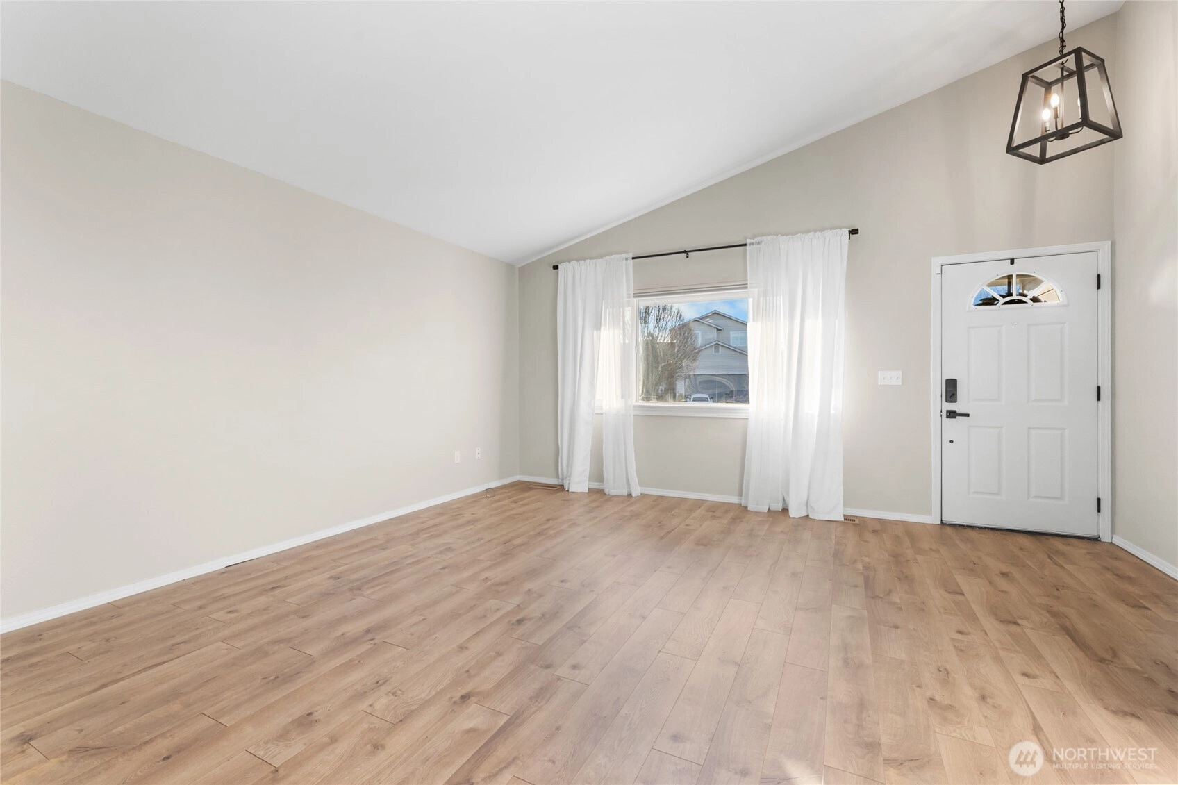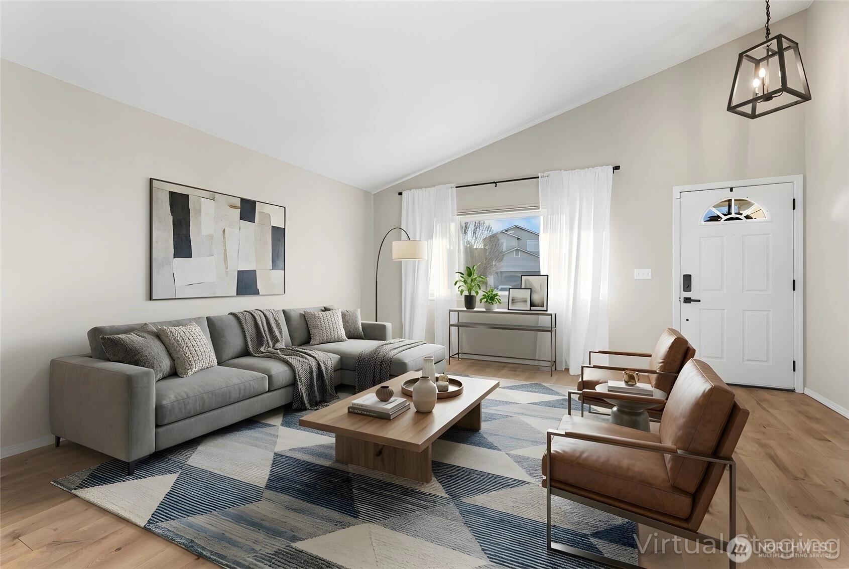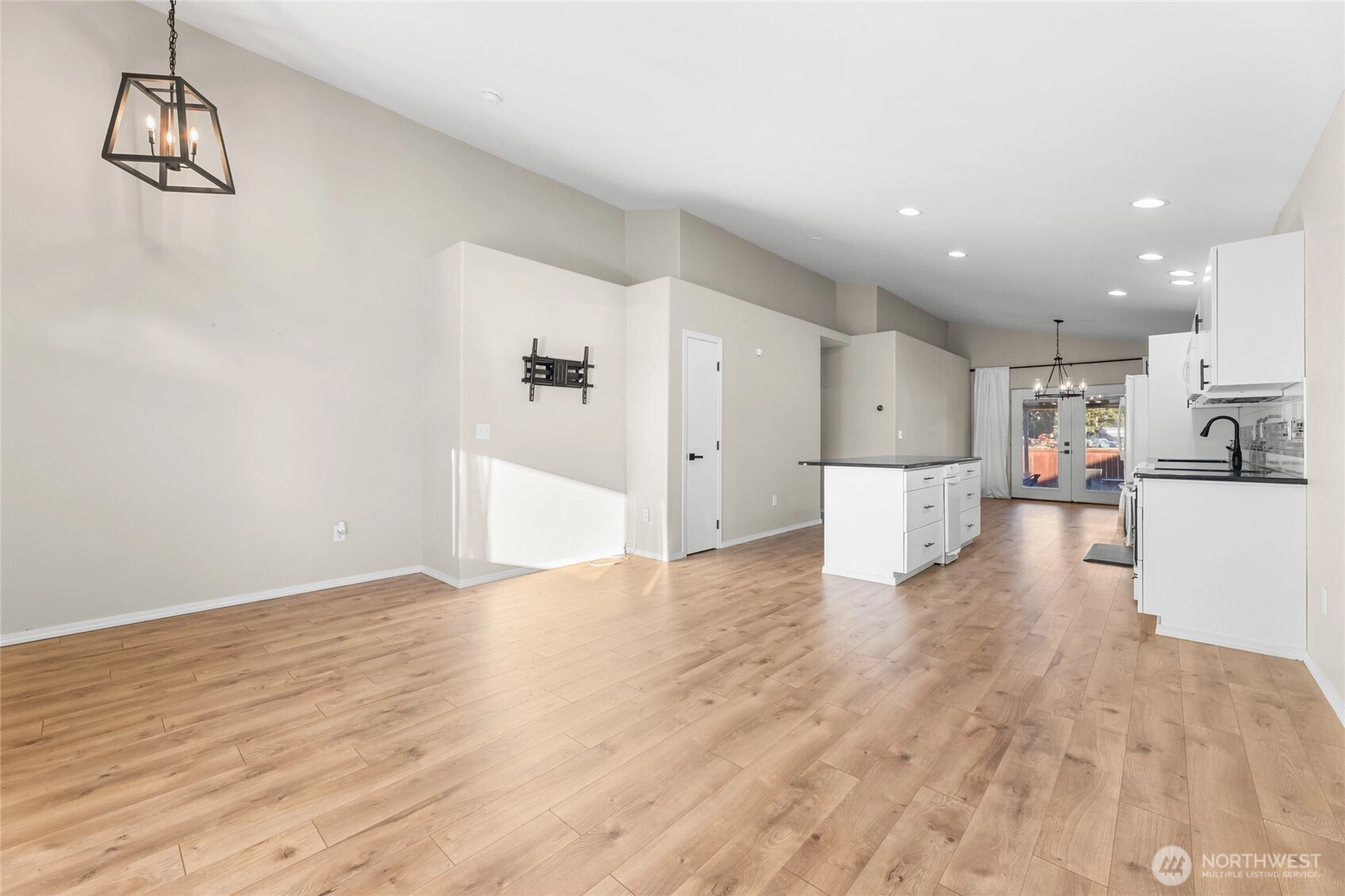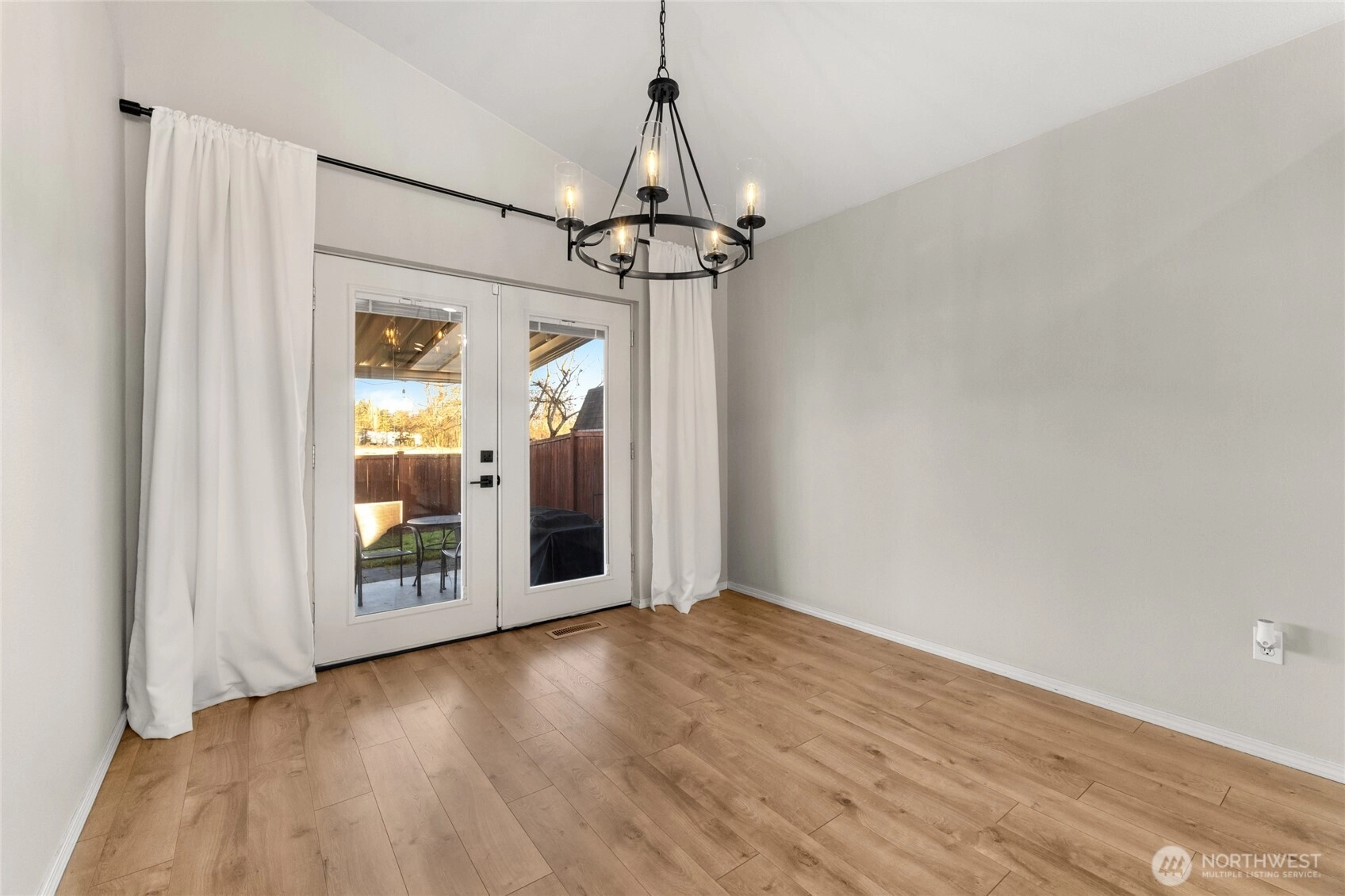 Desirable rambler on an expansive lot with modern updates throughout. The home features quartz counters, soft-close kitchen drawers, a full height tile backsplash & a convenient pantry. Vaulted ceilings & LVP flooring throughout create a bright, open floor plan. Freshly painted inside & out, including trim & doors, with new modern light fixtures & updated bathroom faucets. The primary bedroom offers a private bath & a mudroom off the garage includes the washer & dryer. The roof was replaced in 2022. French doors open to a covered patio & private backyard oasis w/no neighbor behind, a fully fenced yard, an invisible fence, fire pit, and multiple garden beds. A front yard sprinkler system adds easy upkeep. Only second owner!