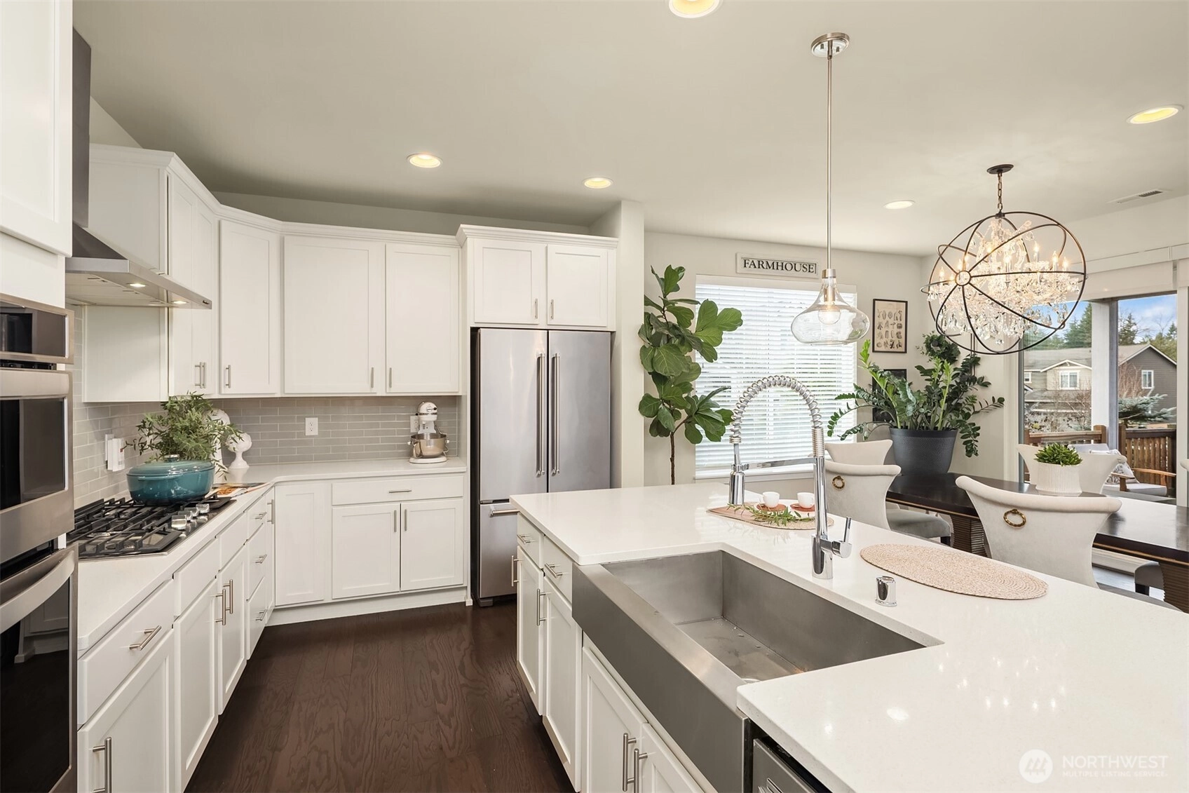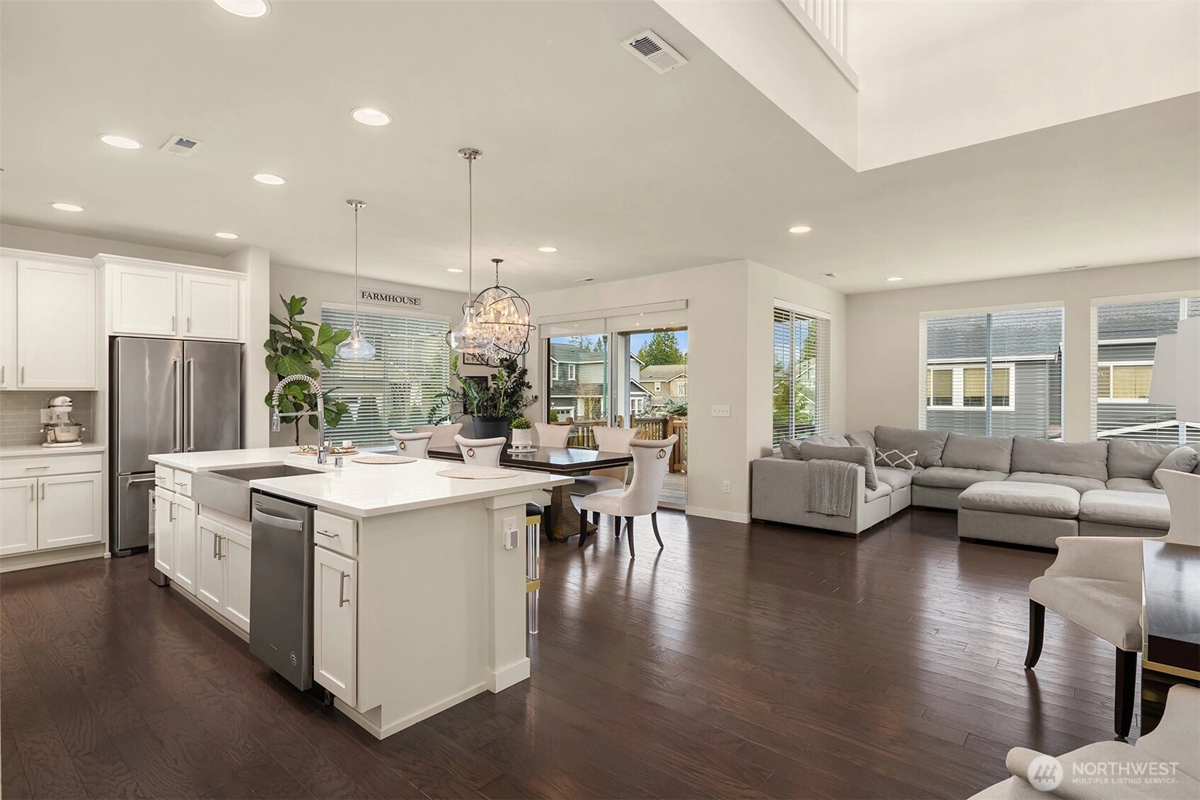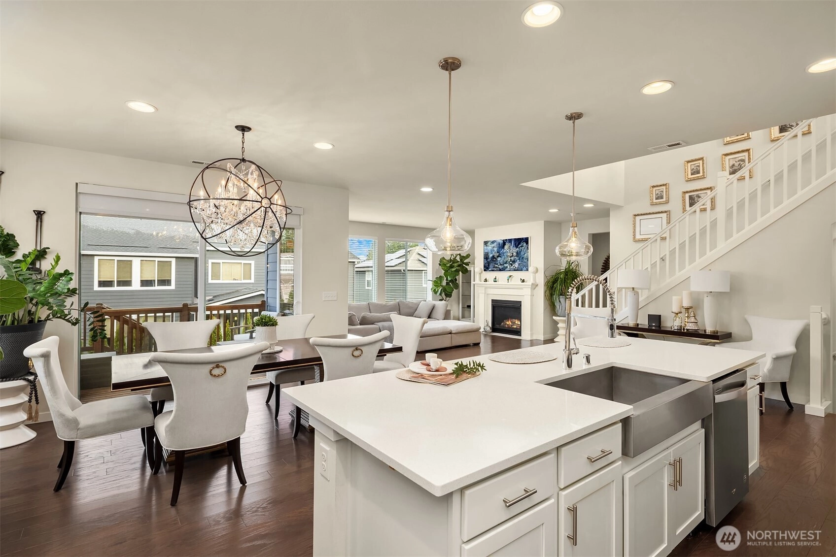 This elite Pulte residence in North Hill offers space, flexibility, and refined living. Main floor features tall ceilings, hardwood floors, light-filled living w/fireplace, Chef’s kitchen w/XL island, SS appliances, walk-in pantry, expansive dining & slider to covered deck ideal for entertaining or quiet mornings, executive office & powder room. Upstairs: versatile loft, opulent primary suite w/5-piece bath, & 3 add large bedrooms, each w/walk-in closet, & full bath. Spacious daylight lower-level w/tall ceilings has 5th bedroom, full bath, rec room & sliding to backyard patio - perfect for guests. Fully fenced yard w/curated landscaping, gazebo, patios, is pure delight. Walk to high school, parks, trails, shops, dining, Microsoft Connector.