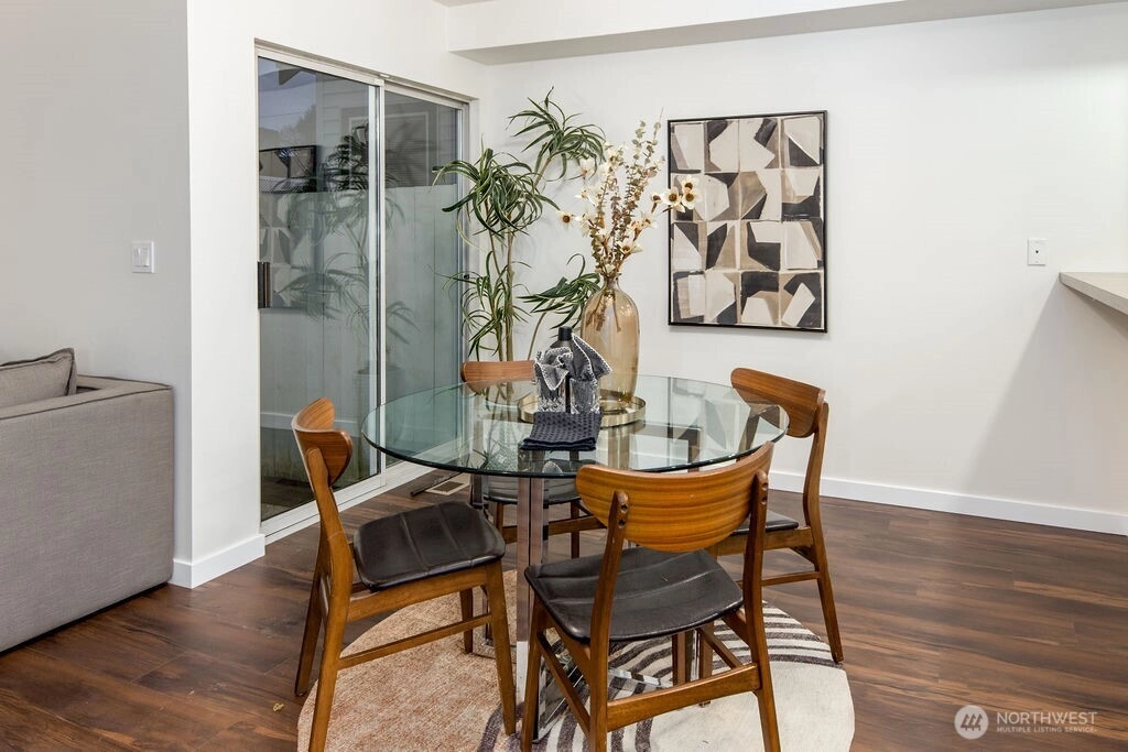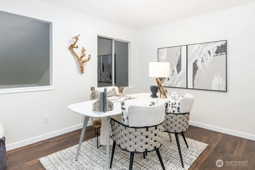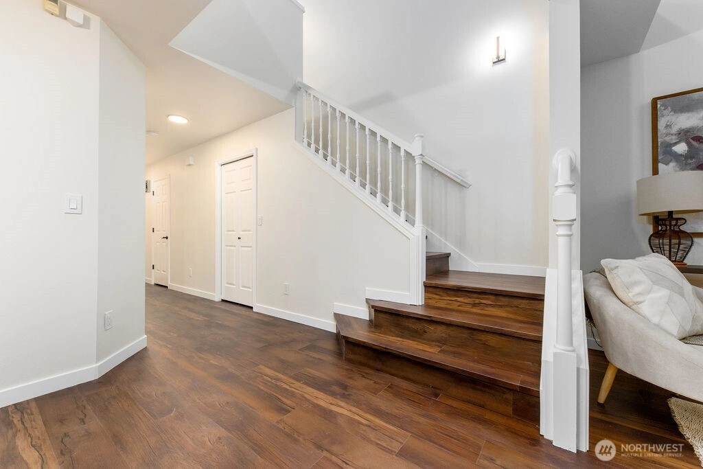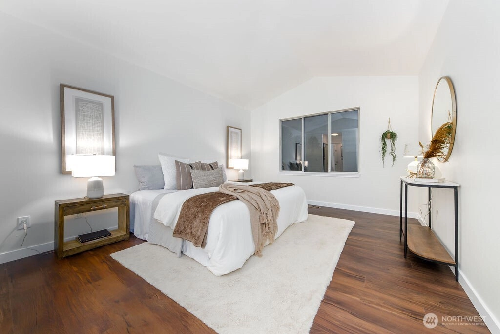 Beautifully renovated 1,416 sq ft two story townhome in the desirable Le Blanc community of Kent. Features vaulted ceilings, premium LVP flooring, recessed lighting, and a cozy gas fireplace. Open concept kitchen and living with a main floor powder room and access to a peaceful backyard area. Upstairs offers a loft, two bedrooms, and two full bathrooms. Enjoy a newer roof, an attached garage with storage, low HOA dues, and close proximity to shopping, schools, freeways, and transit.