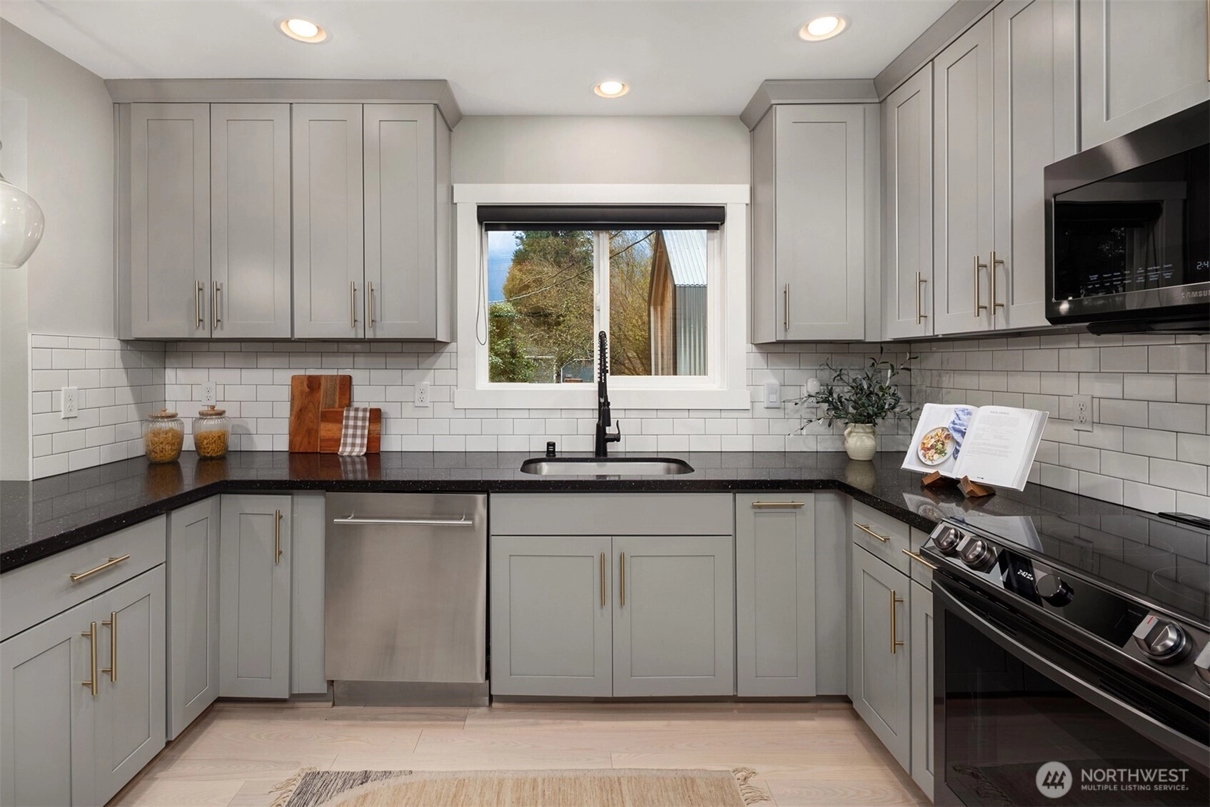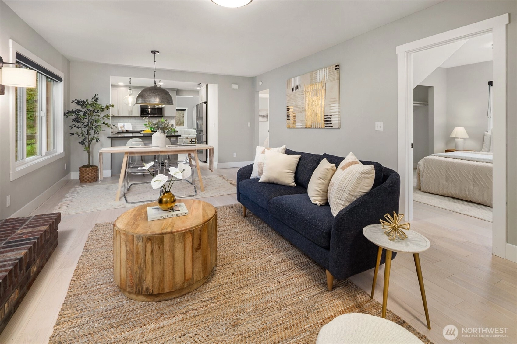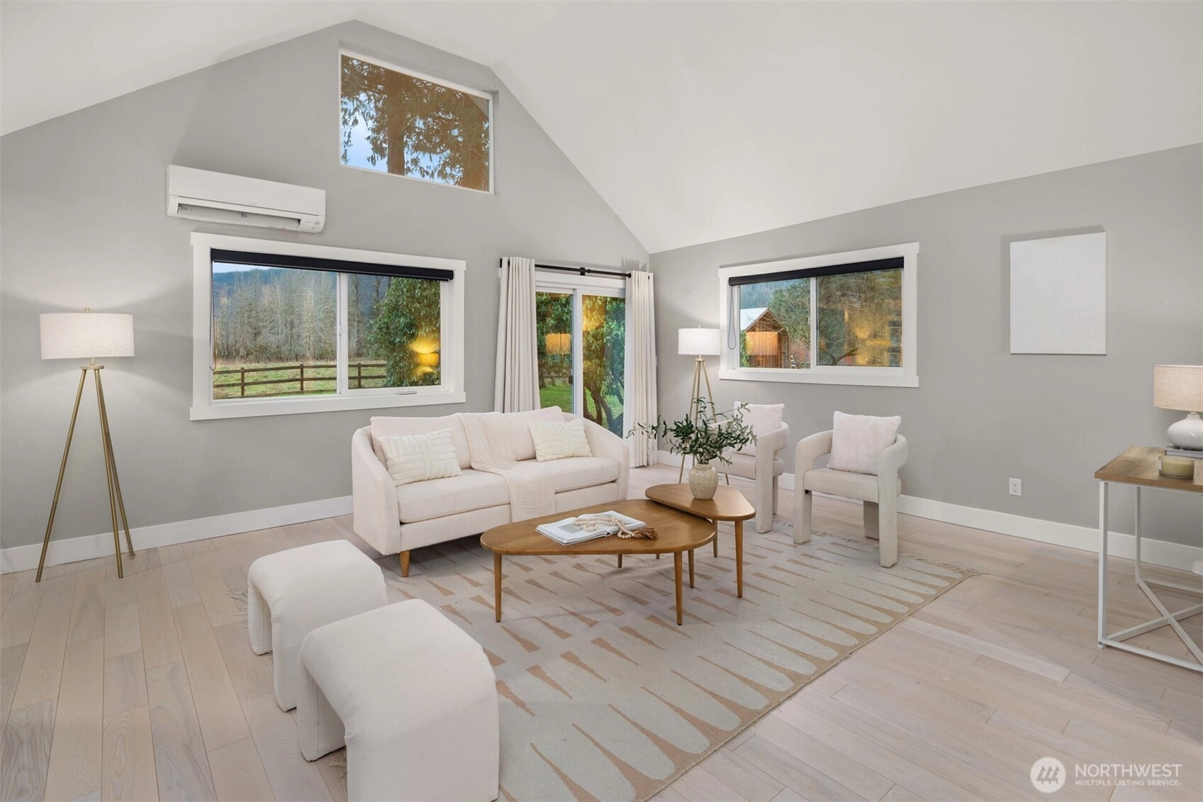 Mount Si sets the backdrop for this fully renovated North Bend farmhouse near Tollgate Farm Park, where privacy and modern comfort meet. Set on nearly three acres, the property offers rare space with direct access to trails and open surroundings. Inside, over $200,000 in thoughtful upgrades include solid hardwood floors, vaulted ceilings, and a bright, open layout. The modern kitchen features quartz countertops, custom cabinetry, and seamless flow into the main living areas. Just outside is a dedicated work from home space with a prewired 20 amp circuit and internet ready. A powered workshop and barn provide exceptional flexibility for hobbies or storage, all just minutes from downtown North Bend dining, shopping and year round recreation.