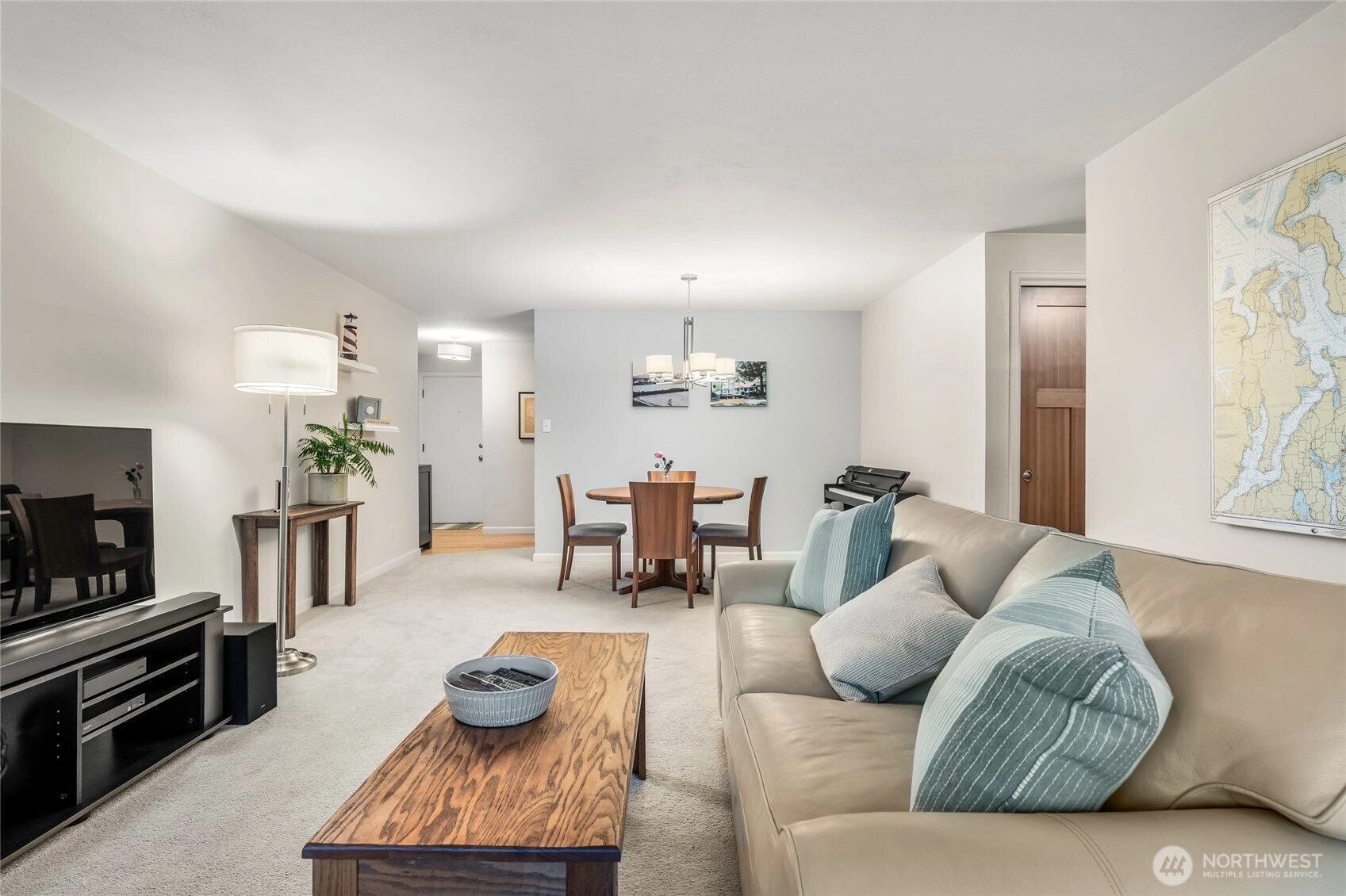 Beautiful 2-bedroom view condo in the heart of the Edmonds Bowl, offering Puget Sound views. Watch ferries glide by and enjoy sunsets from both the living room and private balcony, now enhanced with a new sunshade for added comfort. Inside, you’ll find updated appliances and a spacious ADA-rated shower. The kitchen features a large pantry with ample cabinet space, and a conveniently located stackable washer/dryer in the hallway closet makes everyday living easy. Located just 1½ blocks from downtown Edmonds, this well-maintained, non-smoking building offers easy, level access with no stairs or elevators required.