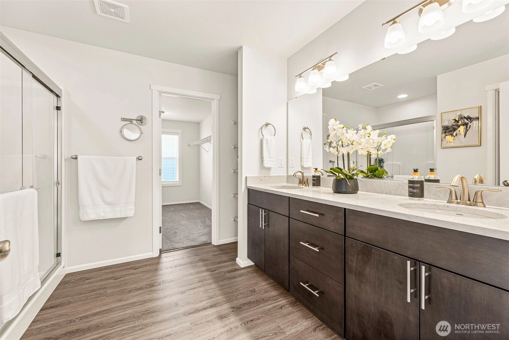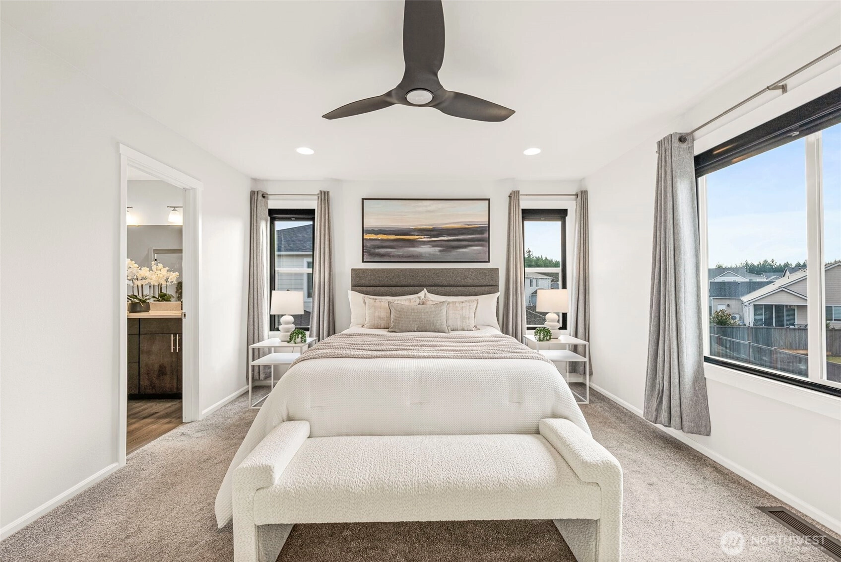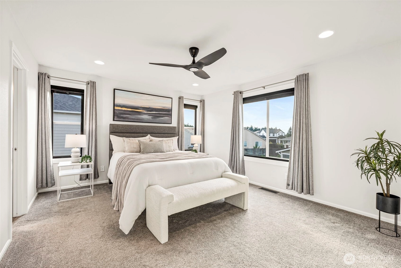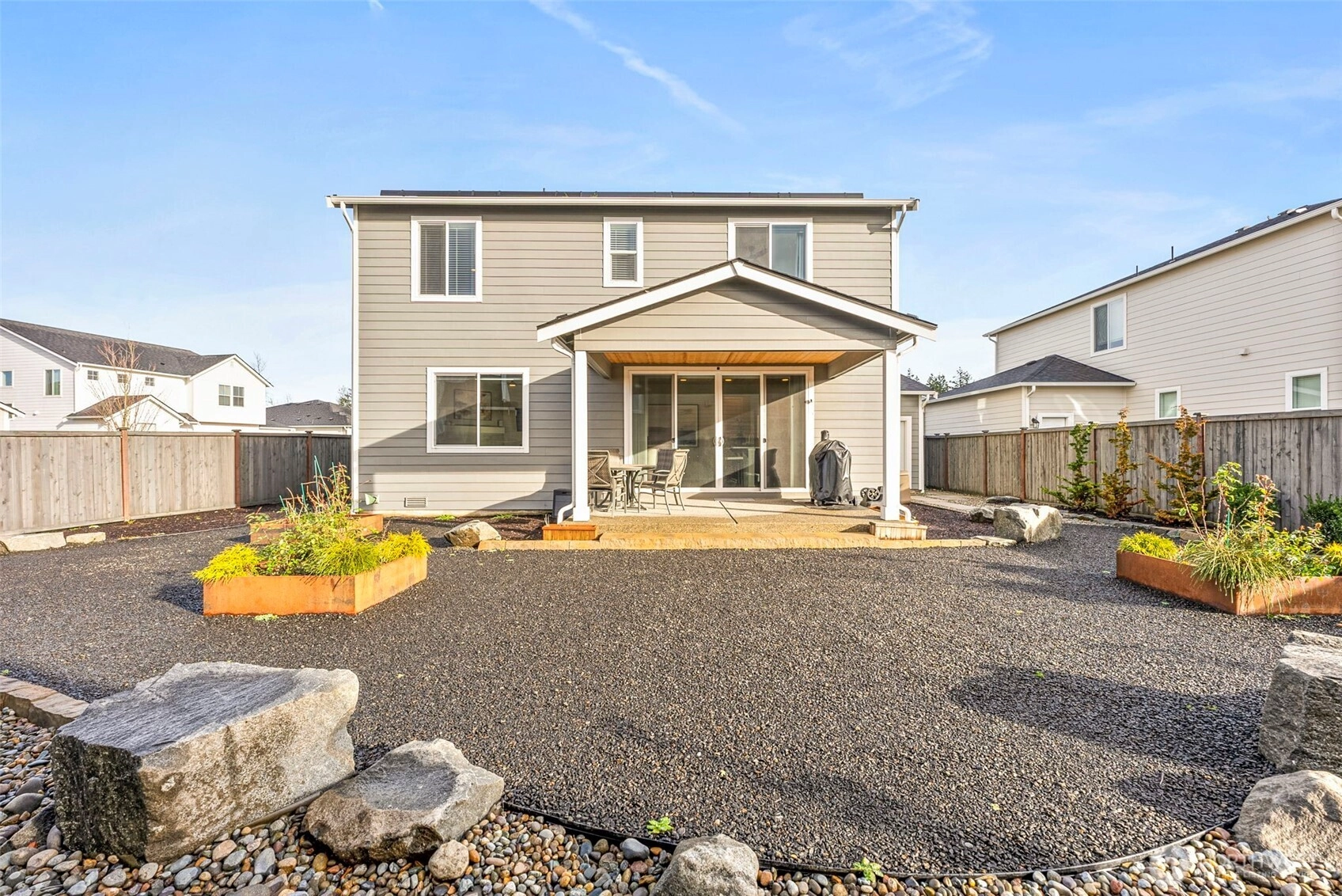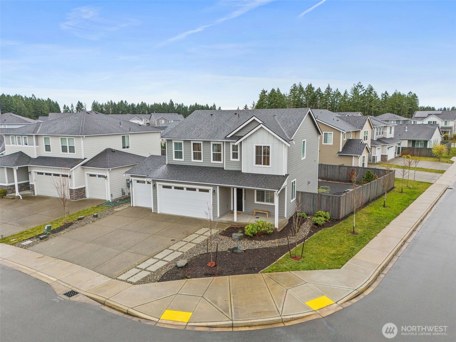 Exceptional corner-lot home with rare 3-car garage w/ huge investment in drought-resistant landscaping. This tech-forward property features a SPAN electrical panel, Tesla Home Battery Backup (Gateway 2 with auto switch during outages), EV charger, smart HVAC vents, smart lighting, security cameras, and video doorbell. Enjoy year-round comfort with heat pump/AC and newer heat-pump water heater. The kitchen shines with stainless appliances, pull-out cabinet drawers, and a custom pantry system. Added comforts include blackout bedroom curtains and power shades on the main level. Located in a sought-after Puyallup community near parks, schools, shopping, and commuter routes this home blends efficiency, style, and peace of mind.