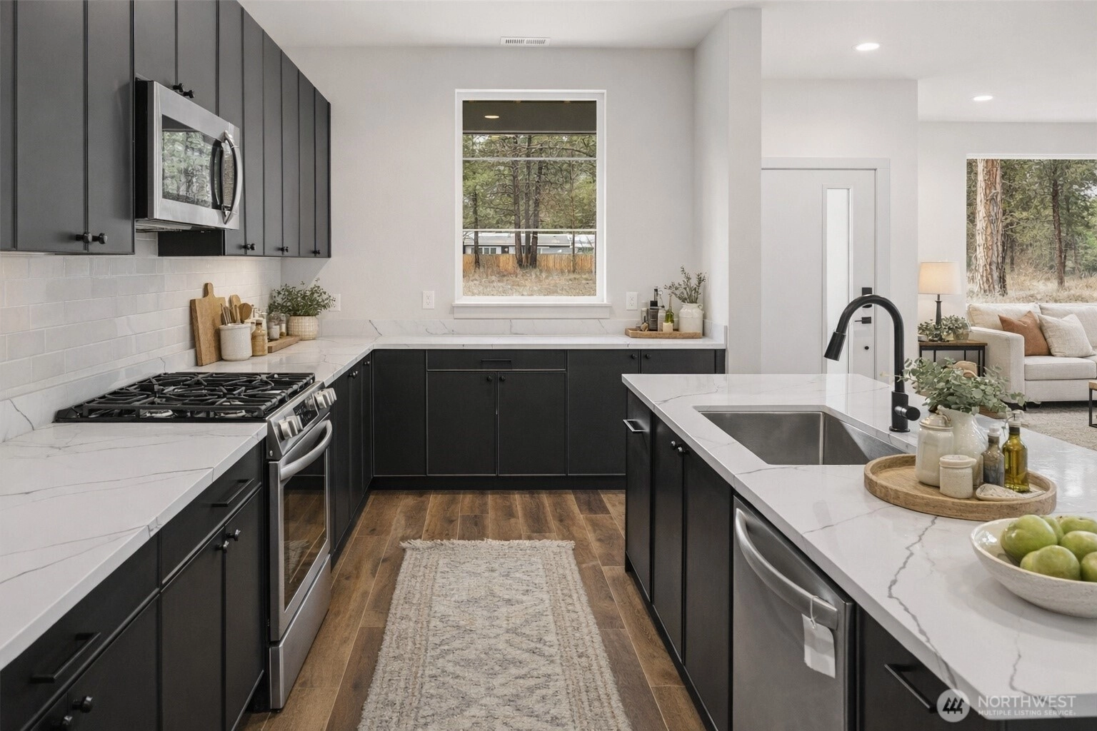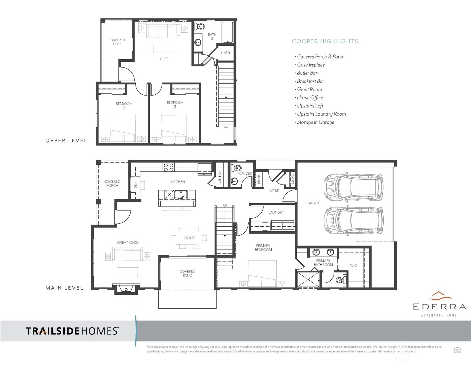 Featuring The Cooper by Trailside Homes, Lot 23 in Ederra offers a sought-after main-floor primary suite and refined contemporary design. This 3-bedroom plus loft home showcases an open-concept layout with abundant natural light, a covered patio, upper-level deck, and a generous garage with room for gear and storage. The front of the home fronts permanent open space with paved trails just steps away, creating a rare sense of privacy and connection to nature. Thoughtfully curated finishes, modern detailing, and effortless indoor-outdoor living elevate the experience. Enjoy access to over 200 acres of open space, trail networks, and the Coal Trax Bike Park—all in sunny Cle Elum, just 90 minutes from Seattle.