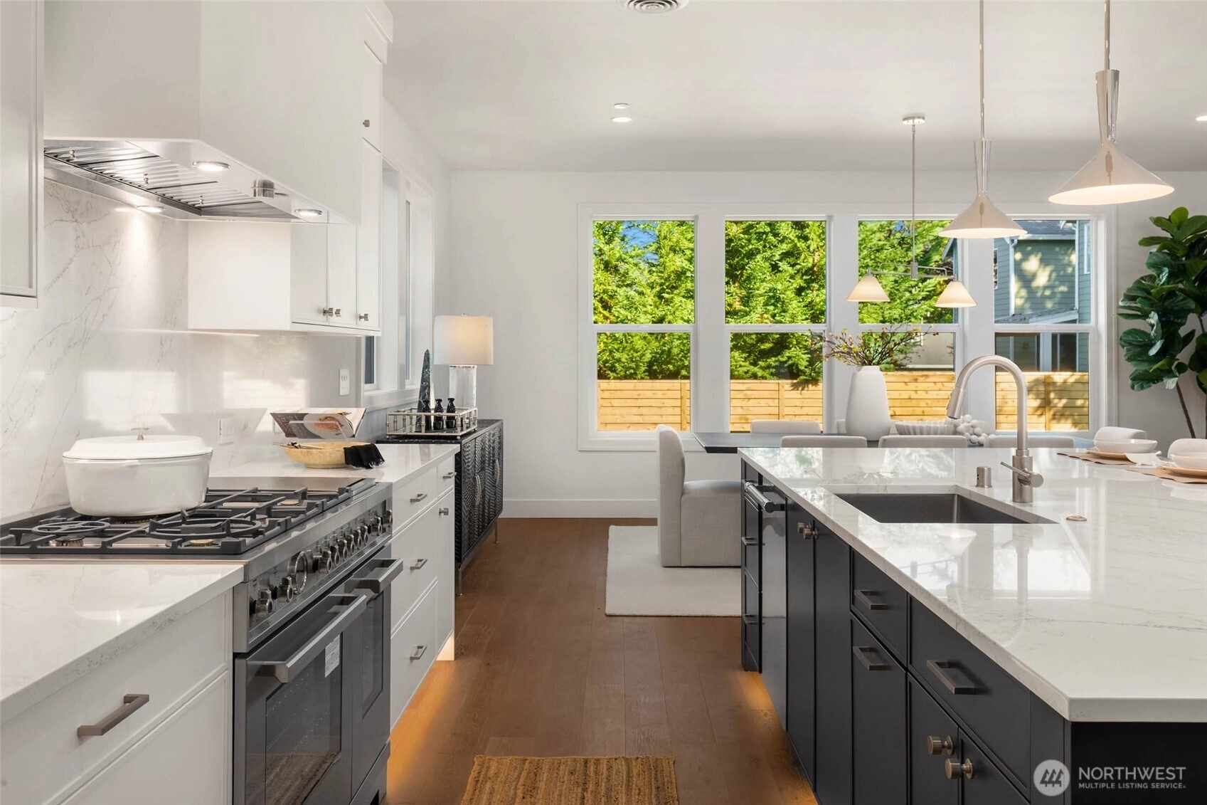 Thomas James Homes proudly presents a new West Bellevue residence in Surrey Downs with a walk score of 89! Minutes from Old Main, dining, shops, and parks, this home blends modern luxury with everyday convenience. Double-height great room and vaulted ceilings throughout create abundant natural light. Dual-sided fireplace warms both the great room and office/den. Gourmet kitchen with gas cooking, top appliances, and expansive pantry flows into a large dining area, great for entertaining, with a main-level guest ensuite. Step outside to a spacious east-facing yard and covered patio for year-round enjoyment. Upstairs, the primary retreat offers city views, spa-like bath, and private deck, along with two addl bedrooms & a versatile bonus room!