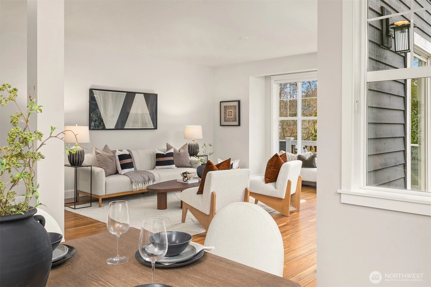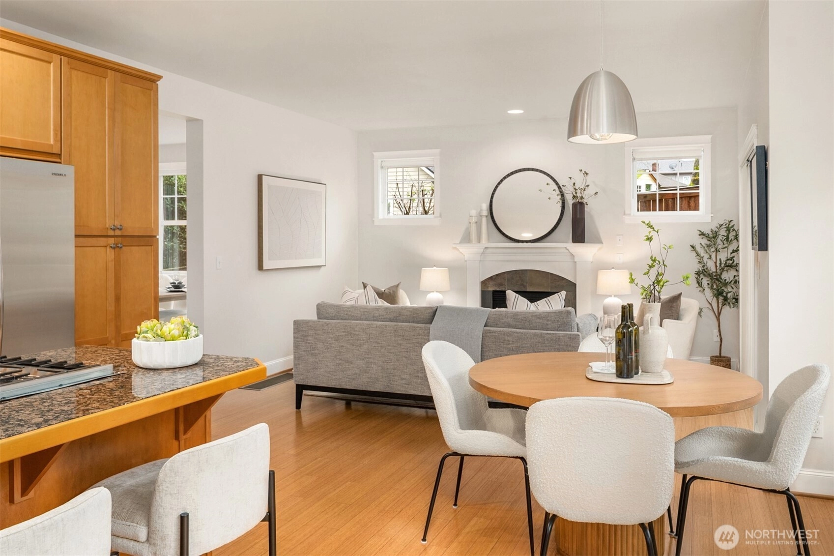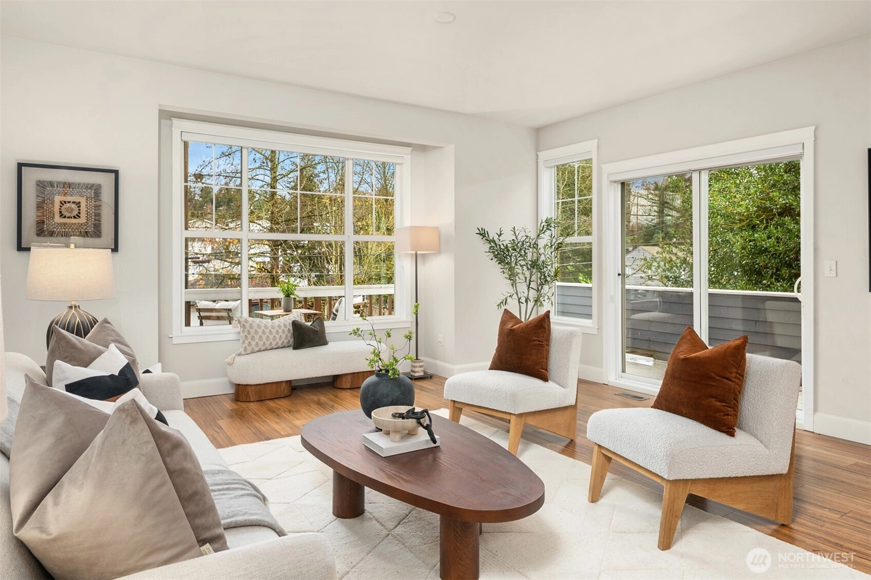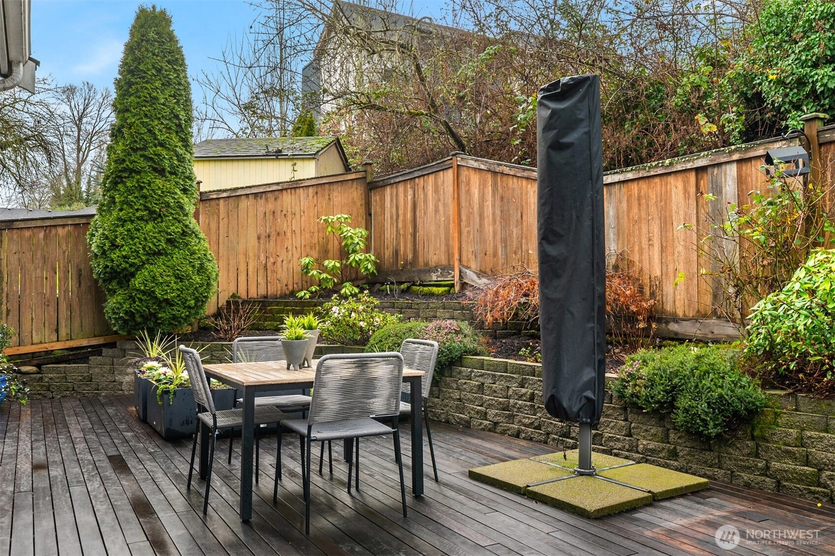 Incredibly located home just blocks in any direction to shops & cafes, this peaceful urban sanctuary delivers everything on your wish list: great yard, spacious floorplan & massive garage. High ceilings on main floor drench formal living & dining rooms with natural light and flows easily into the oversized eat-in kitchen and attached informal living room w/ cozy FP. The kitchen area overlooks the professionally-designed backyard with indestructible ipe deck and mature plantings. Upper level has ideal layout of 3 beds/2baths, w/ primary suite boasting 5 piece bath w/walk-in closet. Got gear? This house has a HUGE 2 car garage with room for hobbies + addtl storage space. Plenty of room in the driveway for EZ guest parking. New roof & decks!