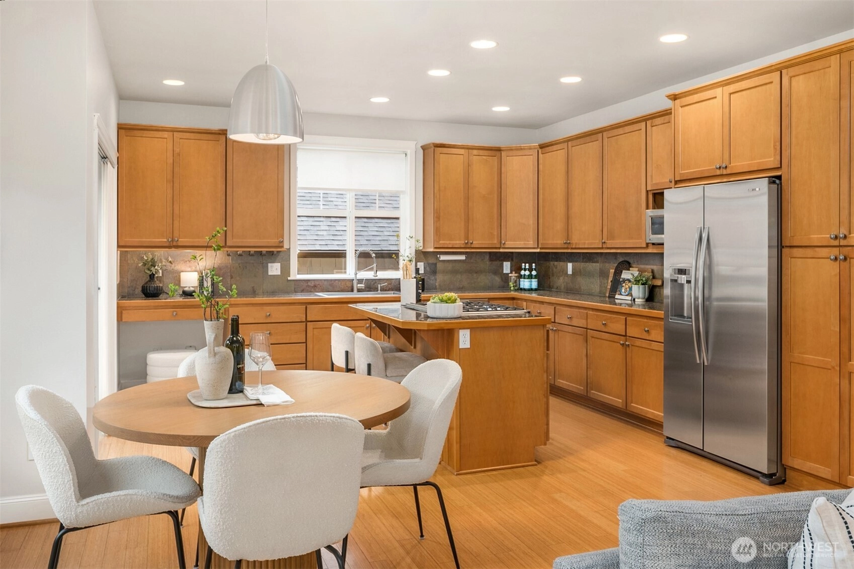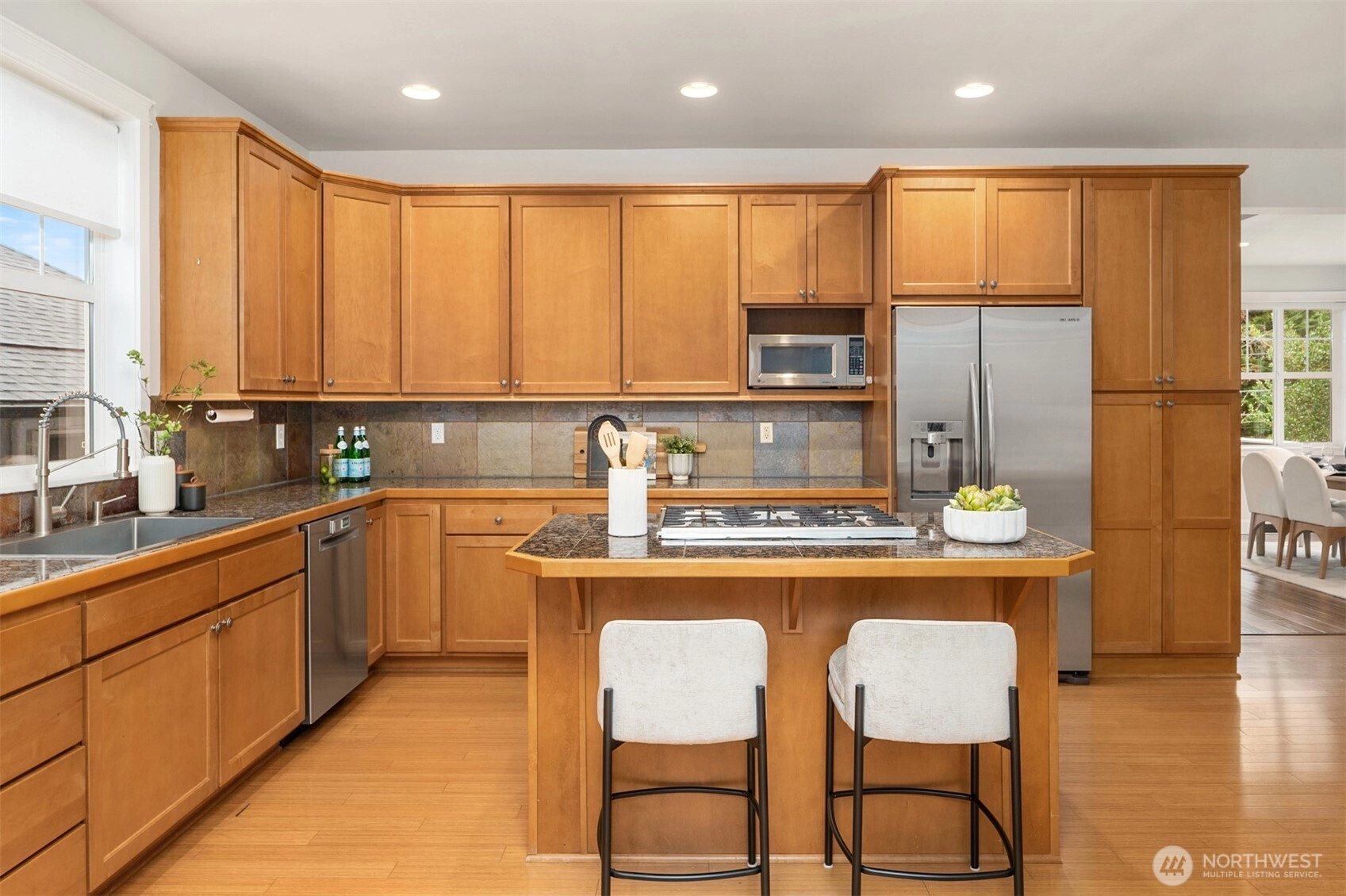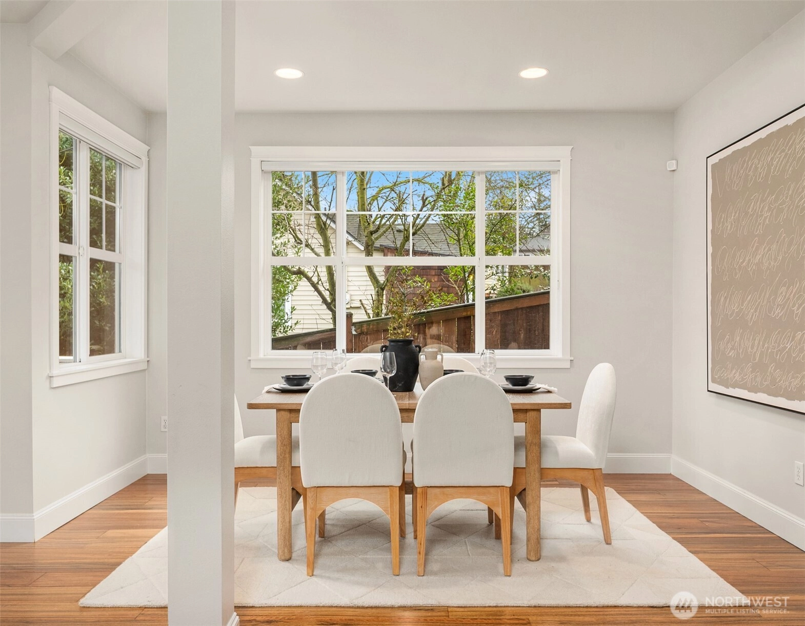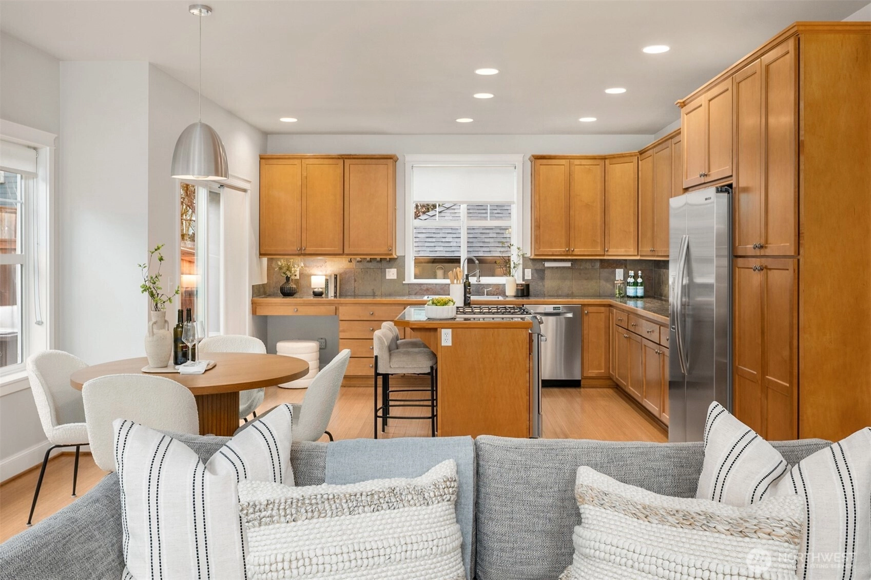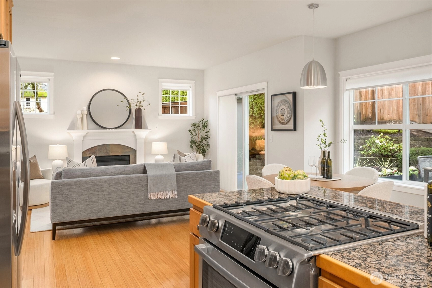 Incredibly located home just blocks in any direction to shops & cafes, this peaceful urban sanctuary delivers everything on your wish list: great yard, spacious floorplan & massive garage. High ceilings on main floor drench formal living & dining rooms with natural light and flows easily into the oversized eat-in kitchen and attached informal living room w/ cozy FP. The kitchen area overlooks the professionally-designed backyard with indestructible ipe deck and mature plantings. Upper level has ideal layout of 3 beds/2baths, w/ primary suite boasting 5 piece bath w/walk-in closet. Got gear? This house has a HUGE 2 car garage with room for hobbies + addtl storage space. Plenty of room in the driveway for EZ guest parking. New roof & decks!