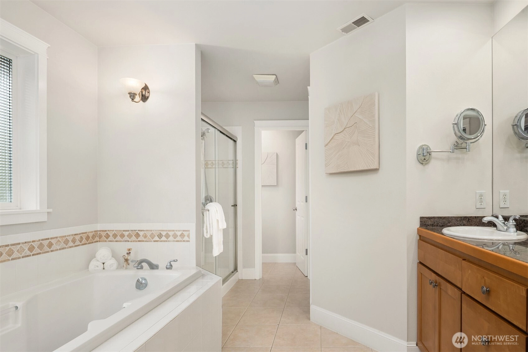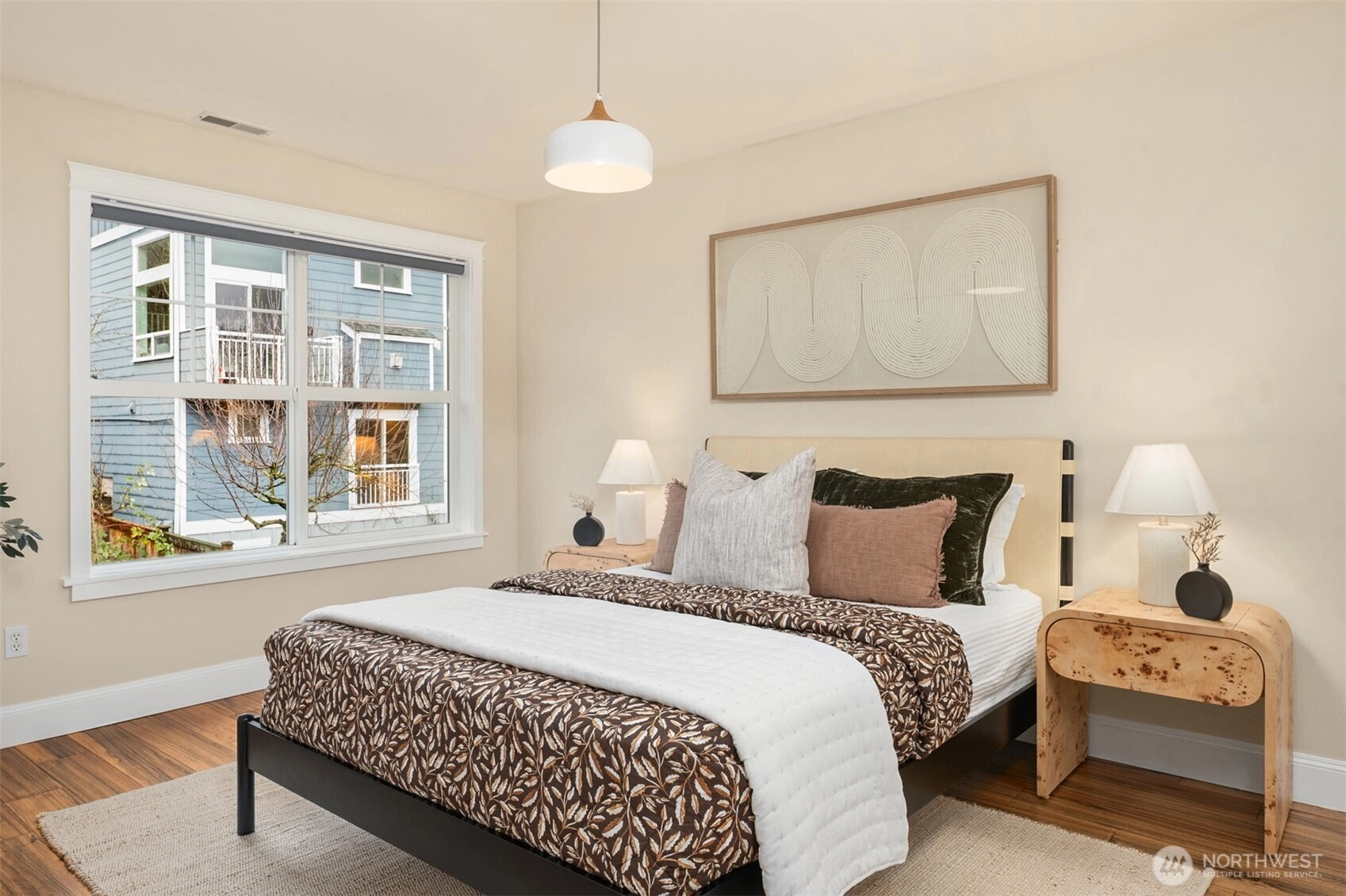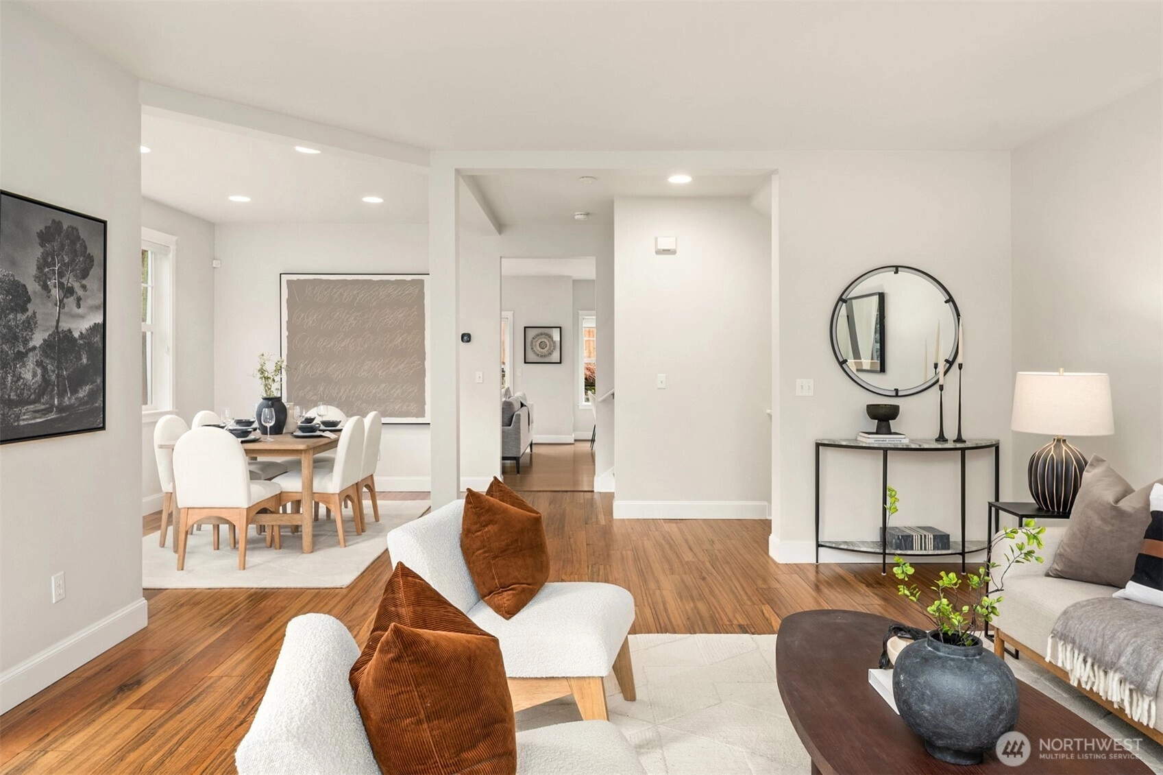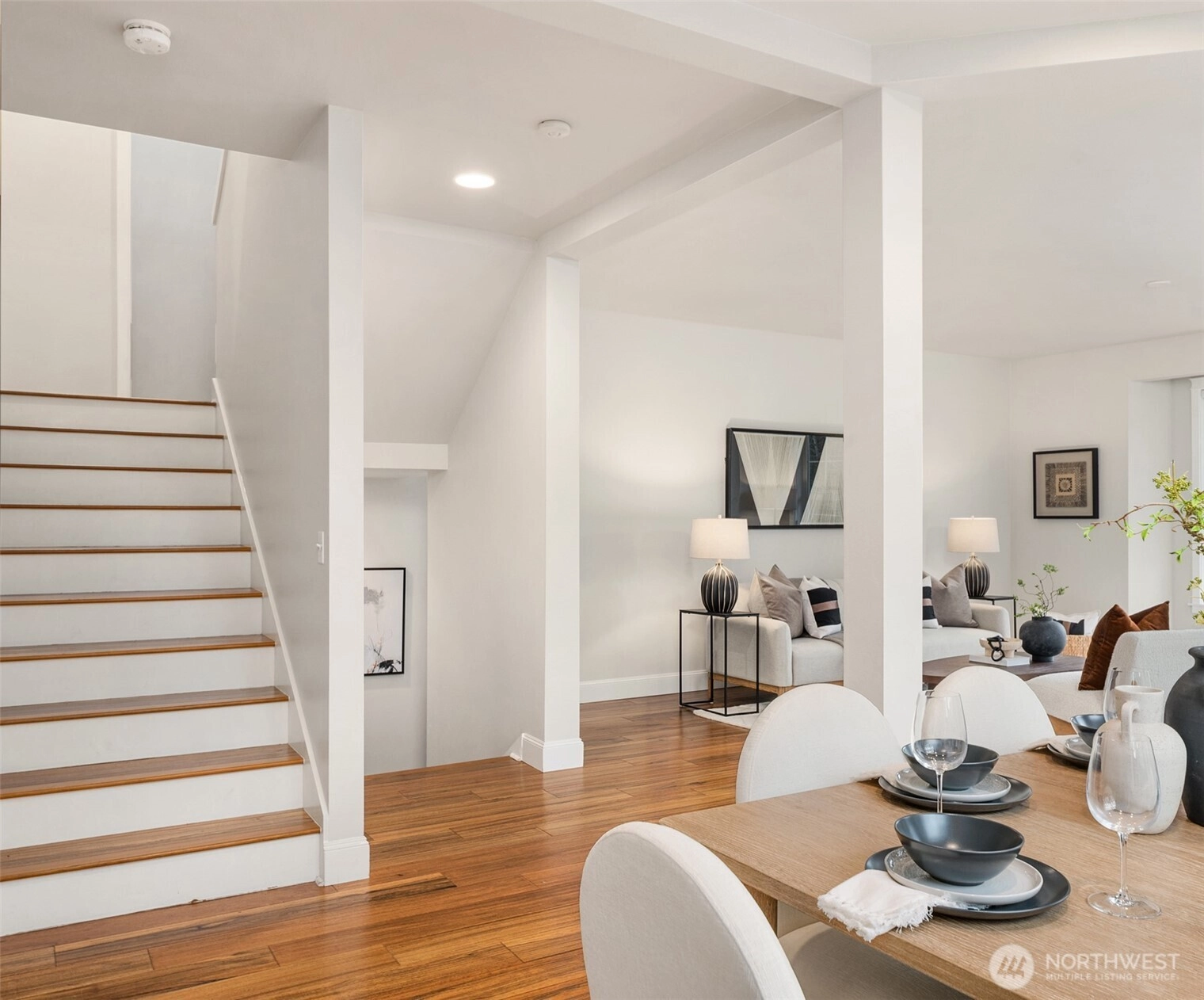 Incredibly located home just blocks in any direction to shops & cafes, this peaceful urban sanctuary delivers everything on your wish list: great yard, spacious floorplan & massive garage. High ceilings on main floor drench formal living & dining rooms with natural light and flows easily into the oversized eat-in kitchen and attached informal living room w/ cozy FP. The kitchen area overlooks the professionally-designed backyard with indestructible ipe deck and mature plantings. Upper level has ideal layout of 3 beds/2baths, w/ primary suite boasting 5 piece bath w/walk-in closet. Got gear? This house has a HUGE 2 car garage with room for hobbies + addtl storage space. Plenty of room in the driveway for EZ guest parking. New roof & decks!