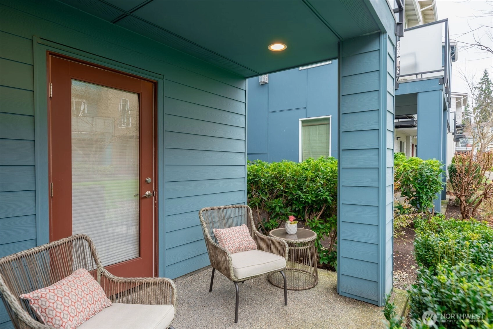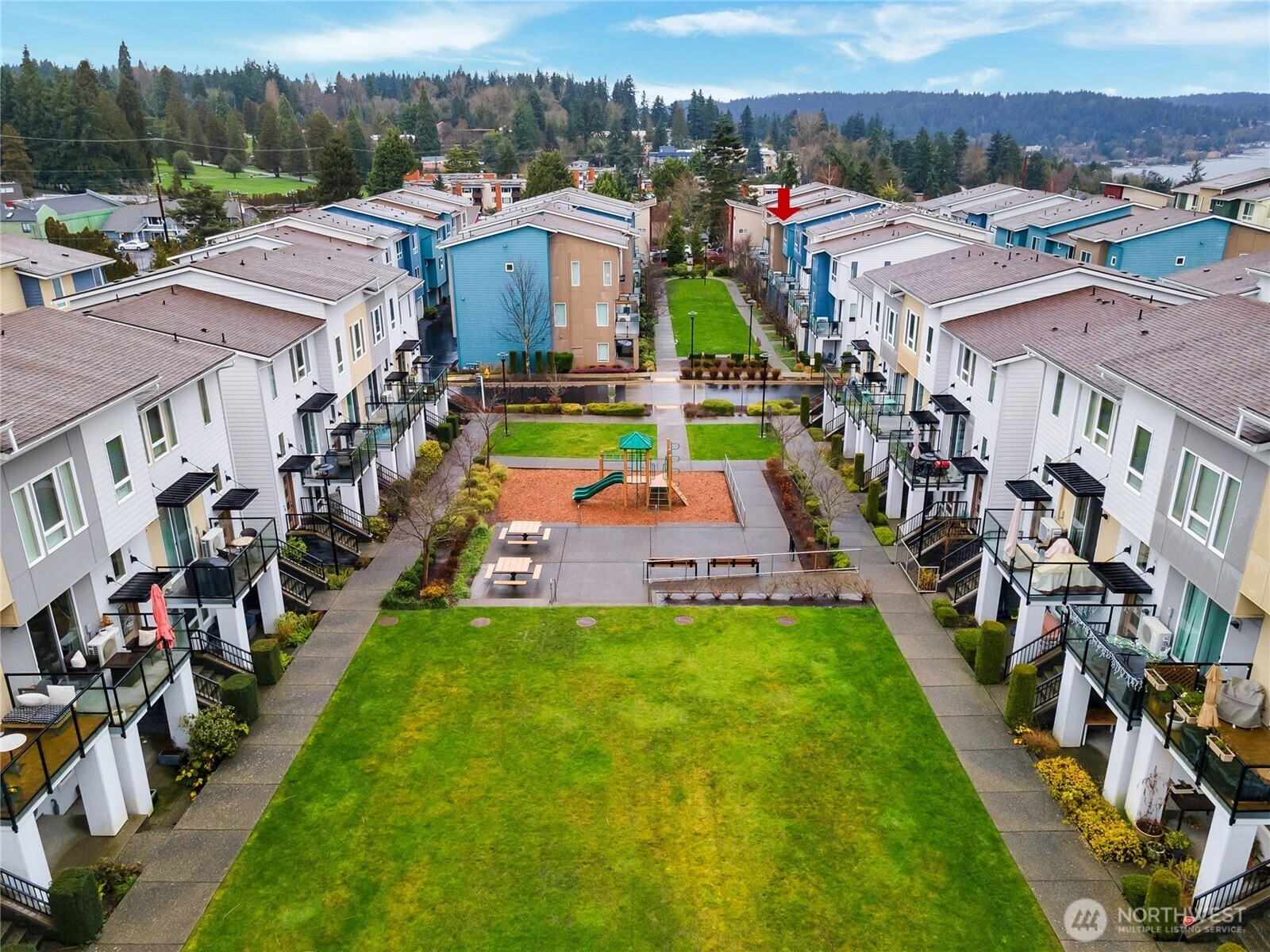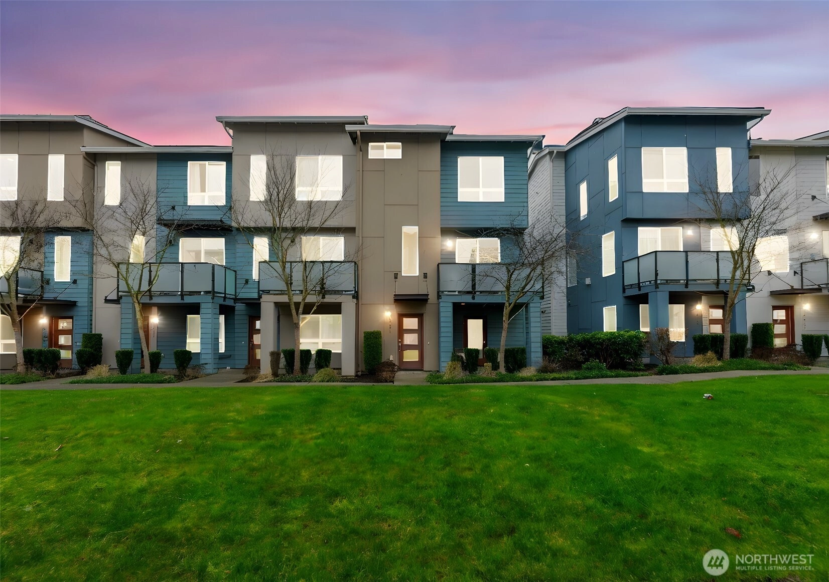 The largest floorplan among townhomes in the sought-after 12 Degrees North community, this corner unit is filled with natural light with 9-ft ceilings and oversized windows. Main level offers a 2-car garage, a laundry room w/ full-size W/D, and a private ensuite bedroom with patio—ideal for guests, in-laws, or a home office. Second level features a spacious living area with balcony, a chic kitchen with gas range and under-cabinet pull-out drawers, split mini AC, a cozy gas fireplace, and a half bath. Top floor includes a generous primary suite with a walk-in closet, plus two additional bedrooms and a full bath. Enjoy community bike racks, a playground, walking paths, and easy access to transit, shopping, dining, Burke-Gilman Trail, and I-5.