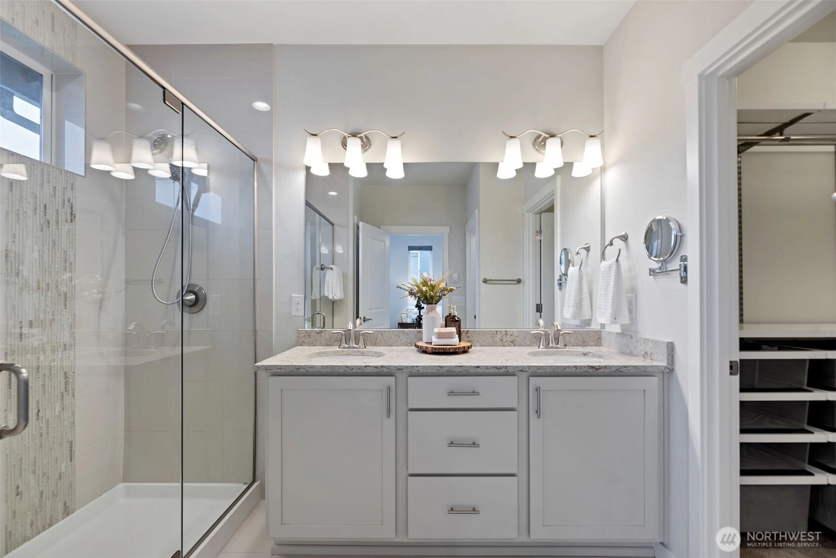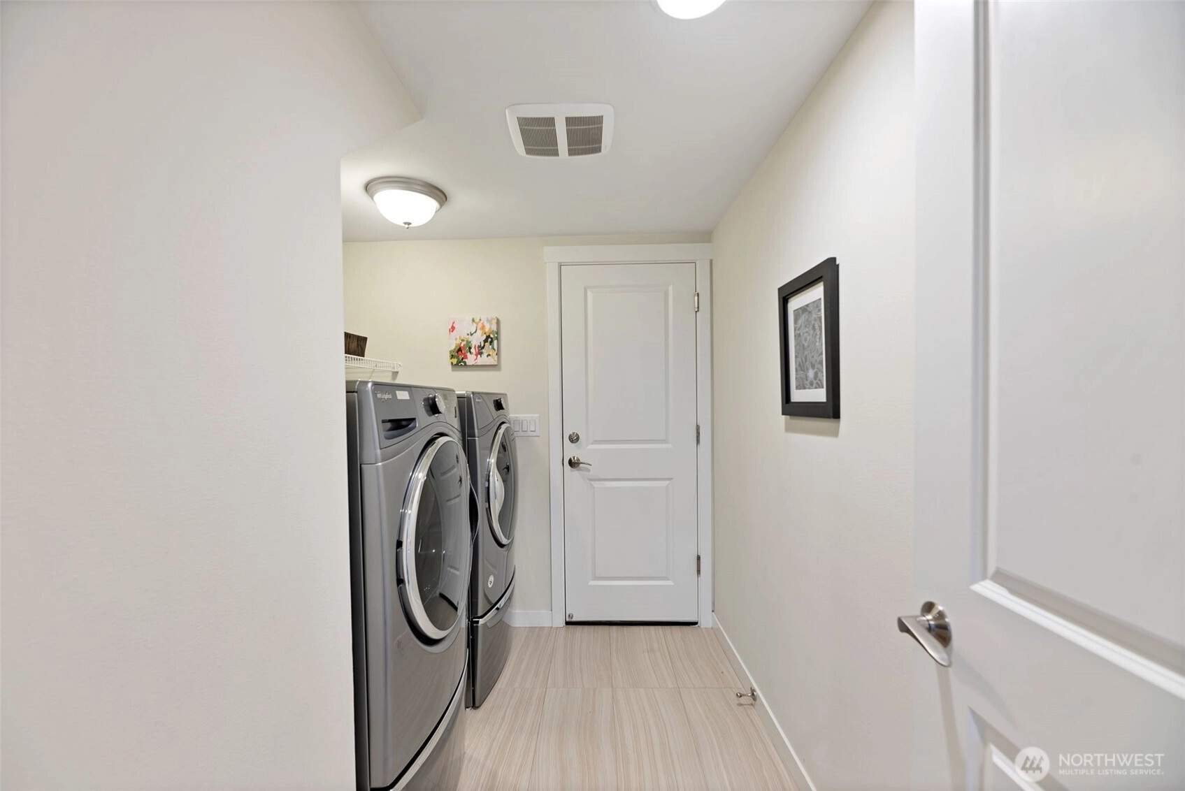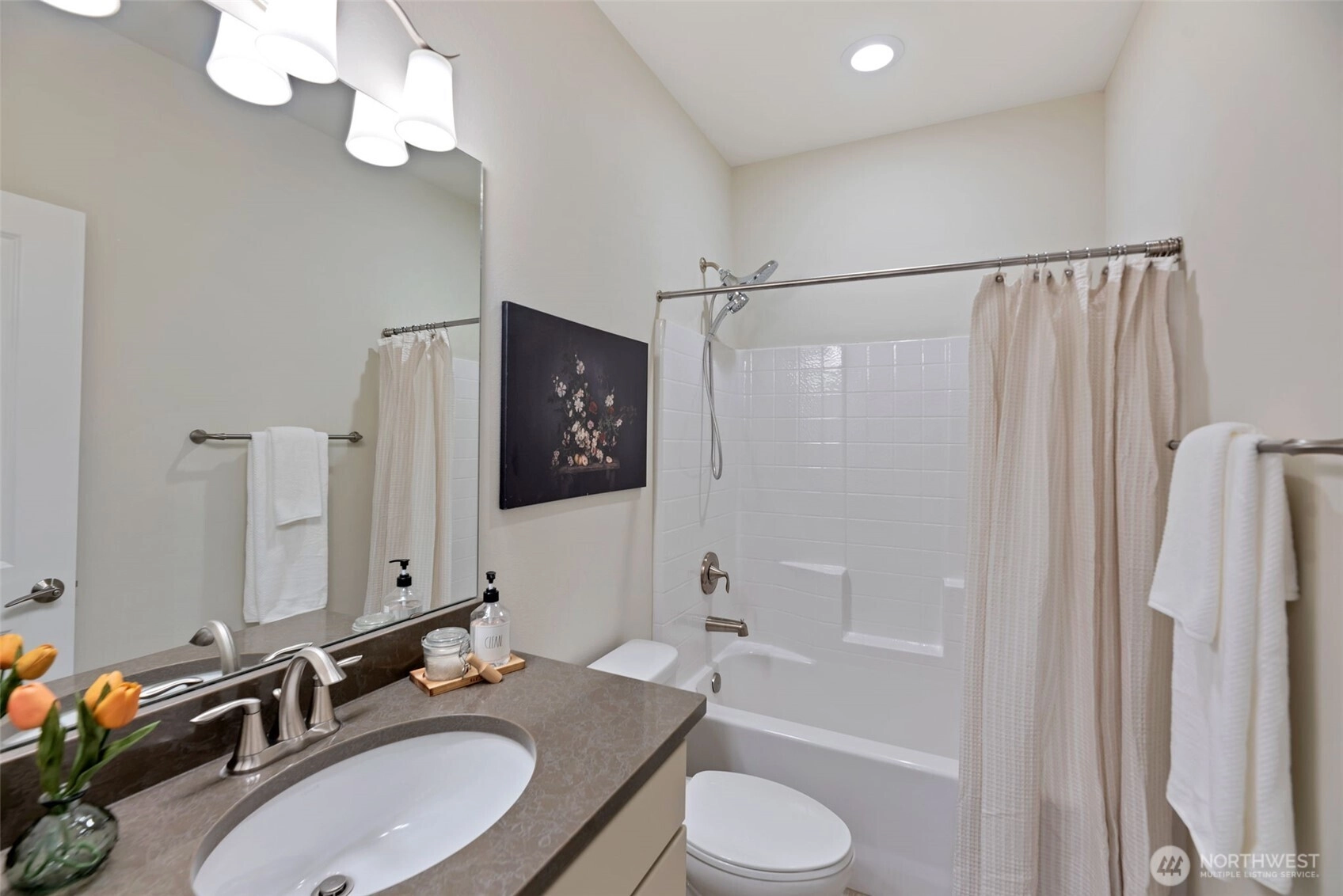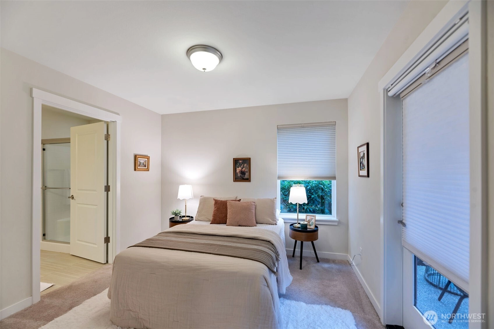 The largest floorplan among townhomes in the sought-after 12 Degrees North community, this corner unit is filled with natural light with 9-ft ceilings and oversized windows. Main level offers a 2-car garage, a laundry room w/ full-size W/D, and a private ensuite bedroom with patio—ideal for guests, in-laws, or a home office. Second level features a spacious living area with balcony, a chic kitchen with gas range and under-cabinet pull-out drawers, split mini AC, a cozy gas fireplace, and a half bath. Top floor includes a generous primary suite with a walk-in closet, plus two additional bedrooms and a full bath. Enjoy community bike racks, a playground, walking paths, and easy access to transit, shopping, dining, Burke-Gilman Trail, and I-5.