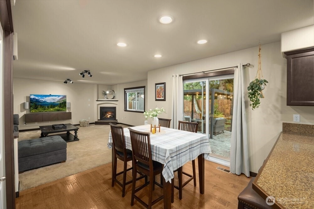 Welcome home to light-filled spaces and effortless living. A vaulted entry and living room create a stunning first impression, while an oversized family room with natural gas fireplace offers the perfect place to gather, relax, and entertain. The eat-in kitchen flows seamlessly into the family room and walk-out patio, featuring new stamped concrete and a covered area designed for year-round enjoyment. Upstairs, retreat to the four bedrooms, including a generous primary suite with vaulted ceilings, walk-in closet, and 5-piece bath. Thoughtful updates include air conditioning, new hot water heater, updated laundry/mud room, and a new flex room with French doors, perfect for a home office. A place to truly feel at home. Pre-inspected.