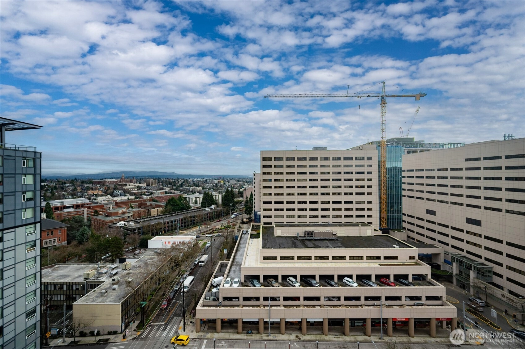 Spacious 2 br, 16th floor SE corner home offers spectacular views of the city, mountains and Lake Washington from the floor to ceiling windows. Primary ensuite features an exquisite soaking tub & extensive closets, while the 2nd bedroom doubles as office space with built in cabinets. Kitchen has been updated with generous granite countertops, ss appliances & open cupboards. Unit offers A/C as well as W/D, 1 parking spot & a large storage unit. First Hill Plaza is a premier full-service building offering resort style amenities including 24-hour concierge, indoor rooftop pool,renovated courtyard, tennis/pickleball court, guest suite & secure parking. Located between Downtown & Capitol Hill, moments from dining, culture & daily essentials.