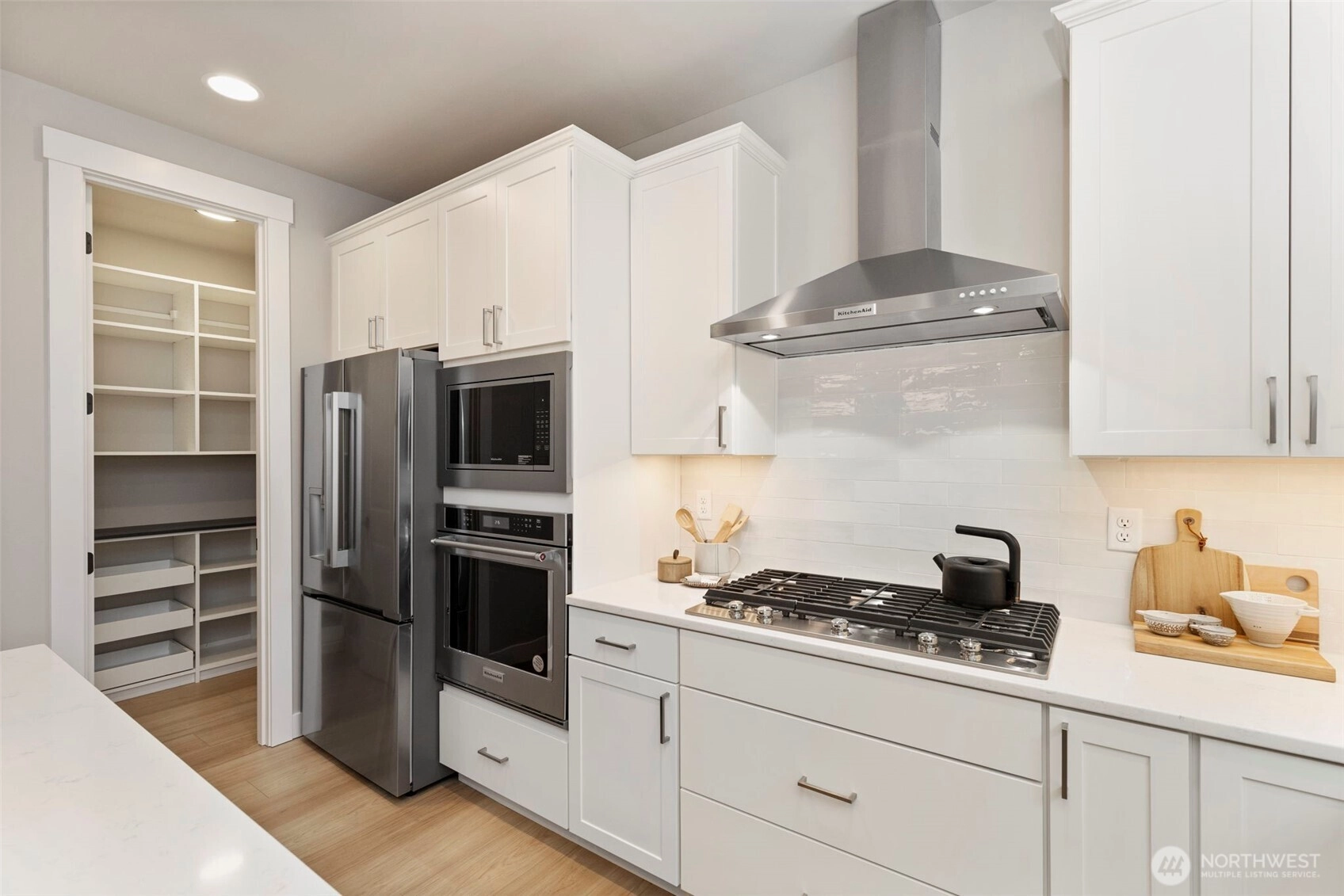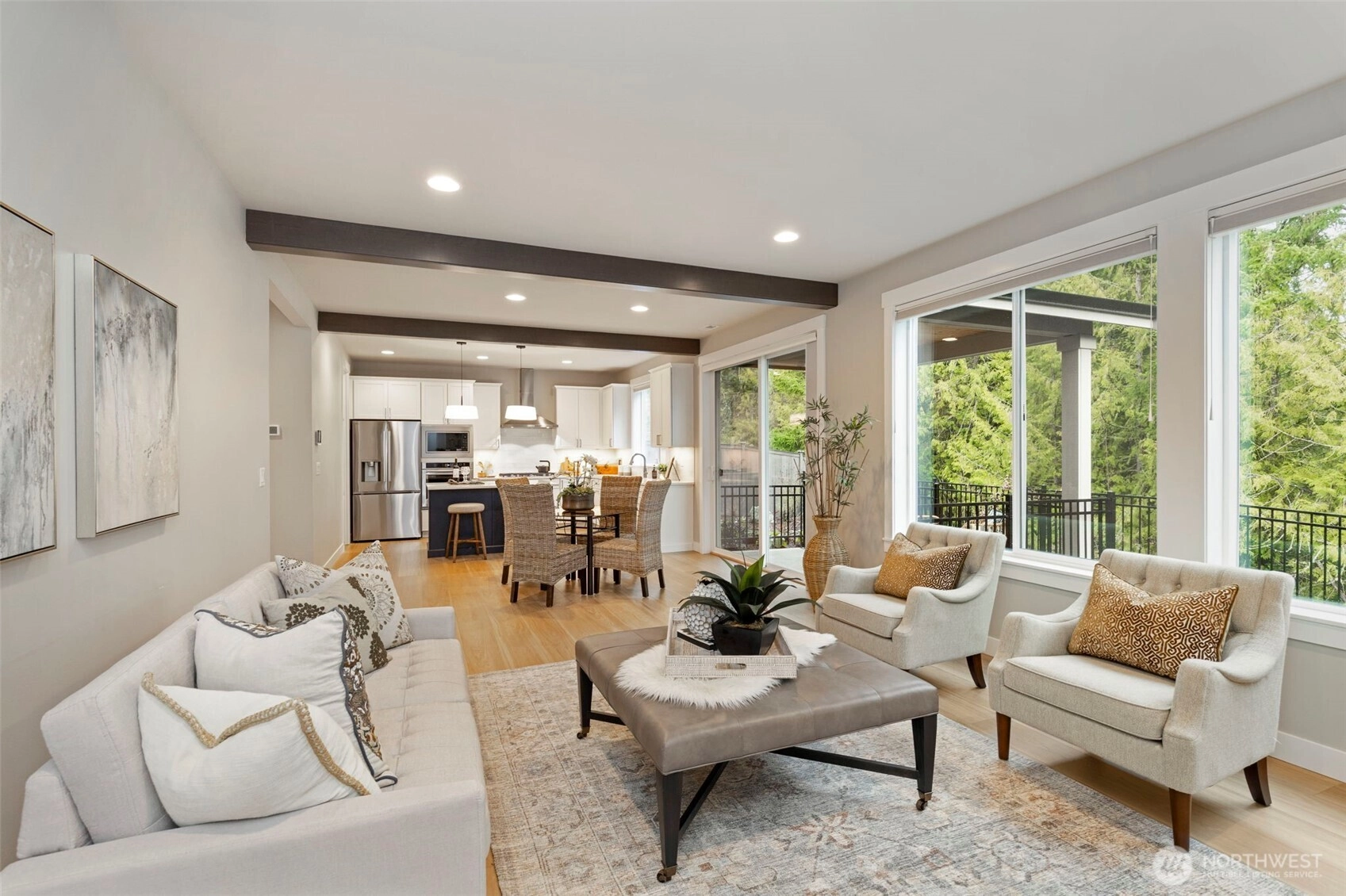 Completed in 2025 by award-winning JK Monarch Fine Homes, this Noll Terrace home has a modern design & immediate value beyond typical new construction. From the striking front door to upgraded appliances, baths, custom closet systems, & custom window coverings, every detail was thoughtfully selected. The versatile fifth bedroom is currently used as an expanded dressing room off the primary suite and can easily convert back to a bedroom. A light-filled loft with custom-built-ins adds flexible living or workspace. Professionally designed front and back yards by Fire Blossom Garden Design feature irrigation and black ornamental metal fencing positioned to preserve the territorial view. Ideally located near top-rated schools & downtown Poulsbo.