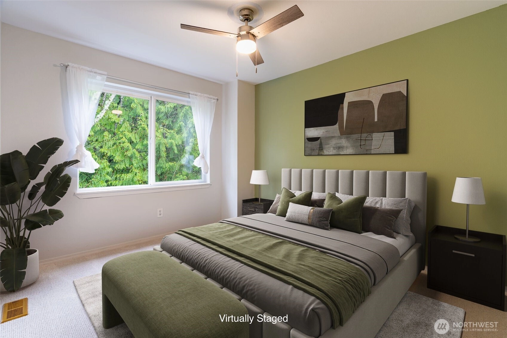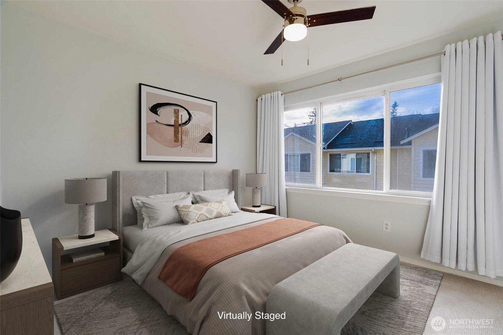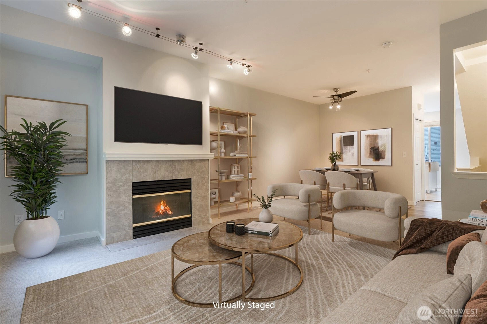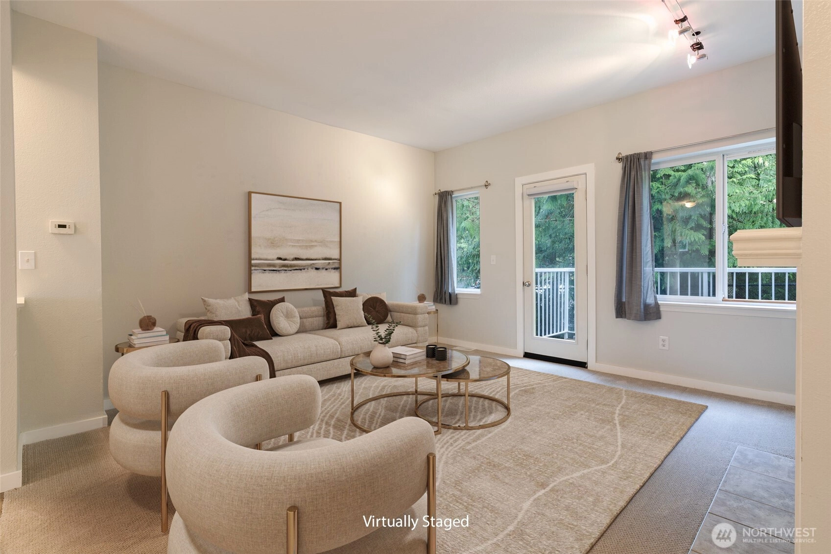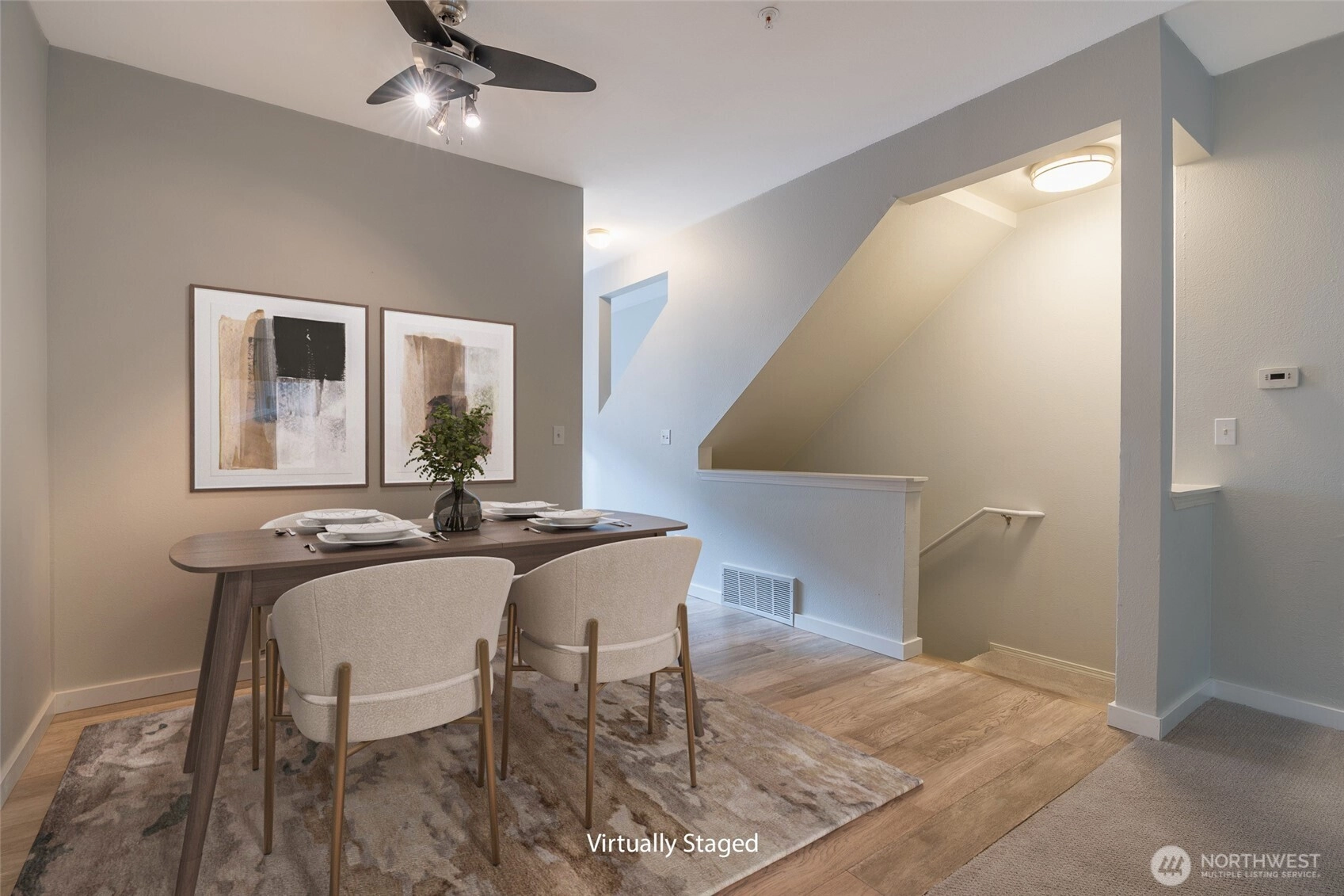 Quiet convenience awaits you at Rivendale at Mill Creek. Updated, turn-key, & move-in-ready, this alluring townhome offers an open floor plan, engineered hardwoods, newer carpet/paint, smart appliances, ring doorbell, & other modern conveniences. SW facing gives you wonderful natural light while lovely, mature trees grant privacy off your back deck. Living room boasts a cozy gas fireplace + a wonderful space for a home office nook. Large kitchen has plenty of room w/an island & pantry. Updated bathrooms & sizable bedrooms. Newer, top-of-the-line w/d combo conveys. Absolutely huge, 2-car tandem garage w/extra storage & epoxy coating. Well run HOA is pet friendly. Close to grocery, restaurants, schools, parks, trails, & public transport.