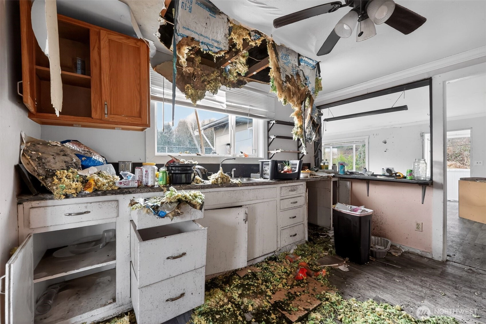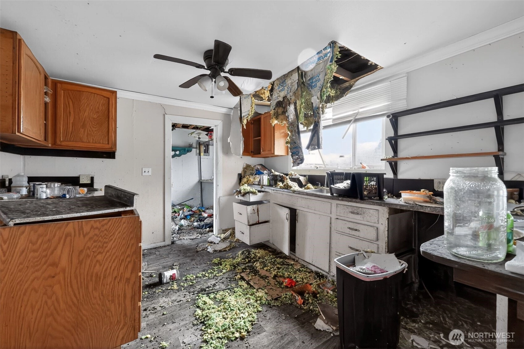 Fire damage! Bring your tools and vision board to transform this 2-bed, 1-bath home. Property needs some repairs and is sold AS-IS