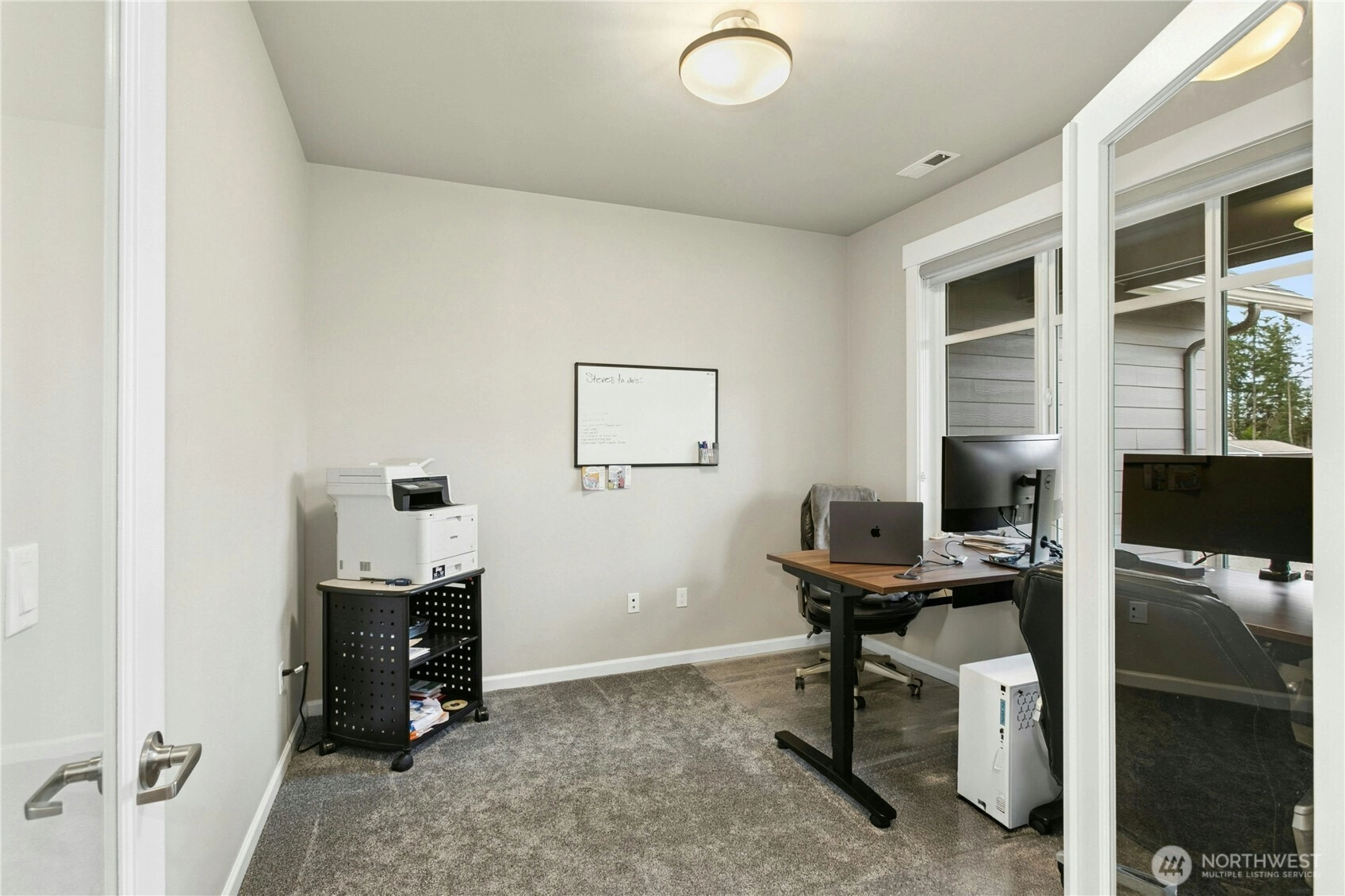 Delight in this meticulously cared for home in gated Carpenter Ridge. The perfect blend of comfort, style, and functionality. The open concept main living area is ideal for entertaining and showcases hardwood floors, quartz counters, and ShelfGenie cabinets. The main floor primary suite features a spa-like five piece bath. There is also a main floor home office. Step out to the covered back deck, perfect for relaxing year-round, fully fenced yard for privacy. Tasteful upgrades throughout include, new carpet, remote controlled window blinds, California Closets in primary and walk in pantry, black stainless appliances, RV parking with 50amp service, home is wired for generator, utility building with 2020 John Deer 140 included!