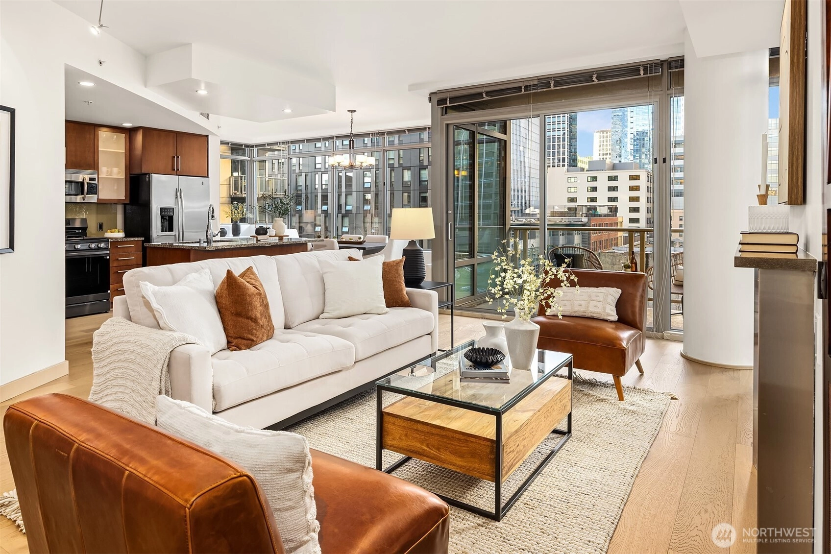 The ultra-convenient lifestyle of 2200 Westlake awaits in the epicenter of thriving SLU! Occupying the entire 7th floor S side, this 2BD/2BA residence spans 1423 SF and offers exceptional natural light and a floorplan that truly lives like a home. Offers sweeping urban views showcased throughout w/a formal entry, entertainer’s kitchen island w/breakfast bar, designated dining, spacious BDs, spa-inspired ensuite, walk-in closets, full guest BA, & large covered patio. Noteworthy highlights incl updated NEW wide-plank wood floors, prem updated ss appl w/gas stove, granite counters, gas fireplace and A/C. Professionally managed & offering residents 5-star amenities- fitness, spa, concierge, clubrm, conference rm, roof deck, guest ste & theater
