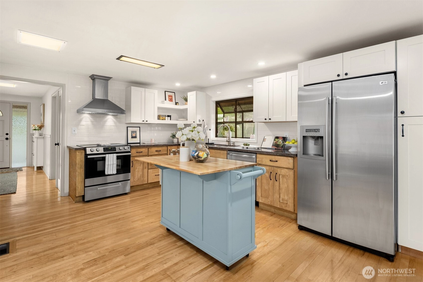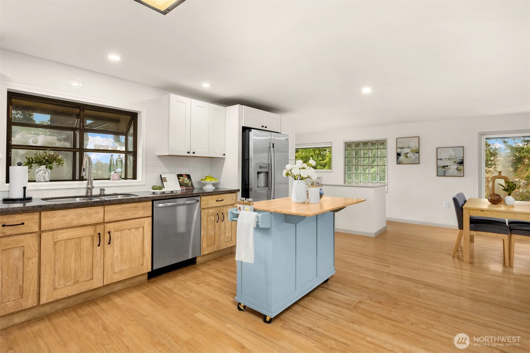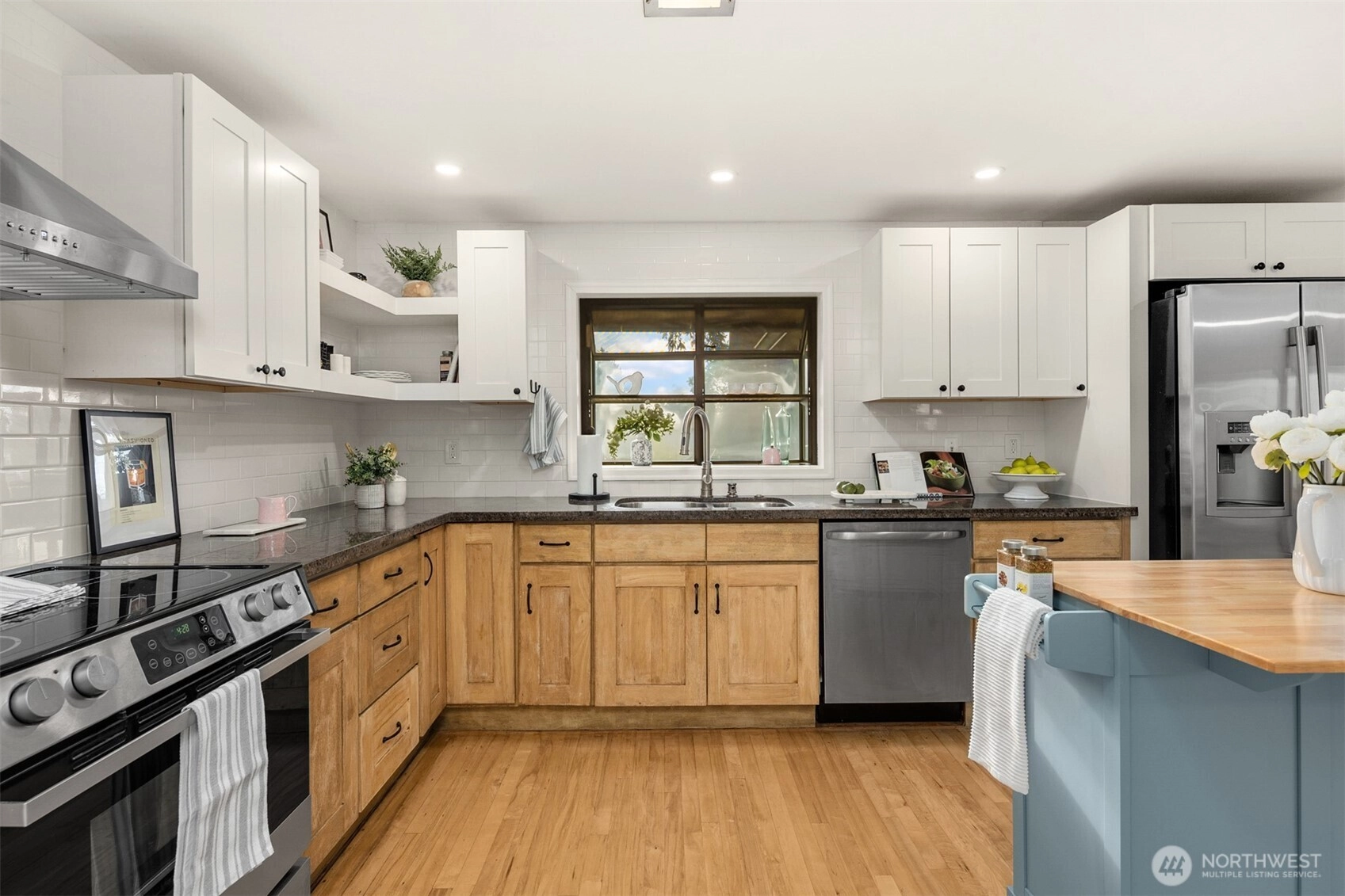 Step inside this extensively updated West Seattle gem & instantly appreciate its mid-century styling with a wide-open floorplan, clean lines, hardwood floors & oversized windows. Enviable floorplan with 3 bedrooms on the main floor & an updated kitchen at the heart of the home with stainless appliances & abundant storage. Versatile lower level rec room with sliding glass door overlooking the garden patio is perfect for game-day entertaining with maple hardwood floors & a cozy gas fireplace. It also provides an excellent guest space with its own stylish 3/4 bath. Ideally positioned for privacy with fully fenced front & back yards offering 4 alley parking spaces & a new oversized shed for storage, hobbies, home gym or future home office.