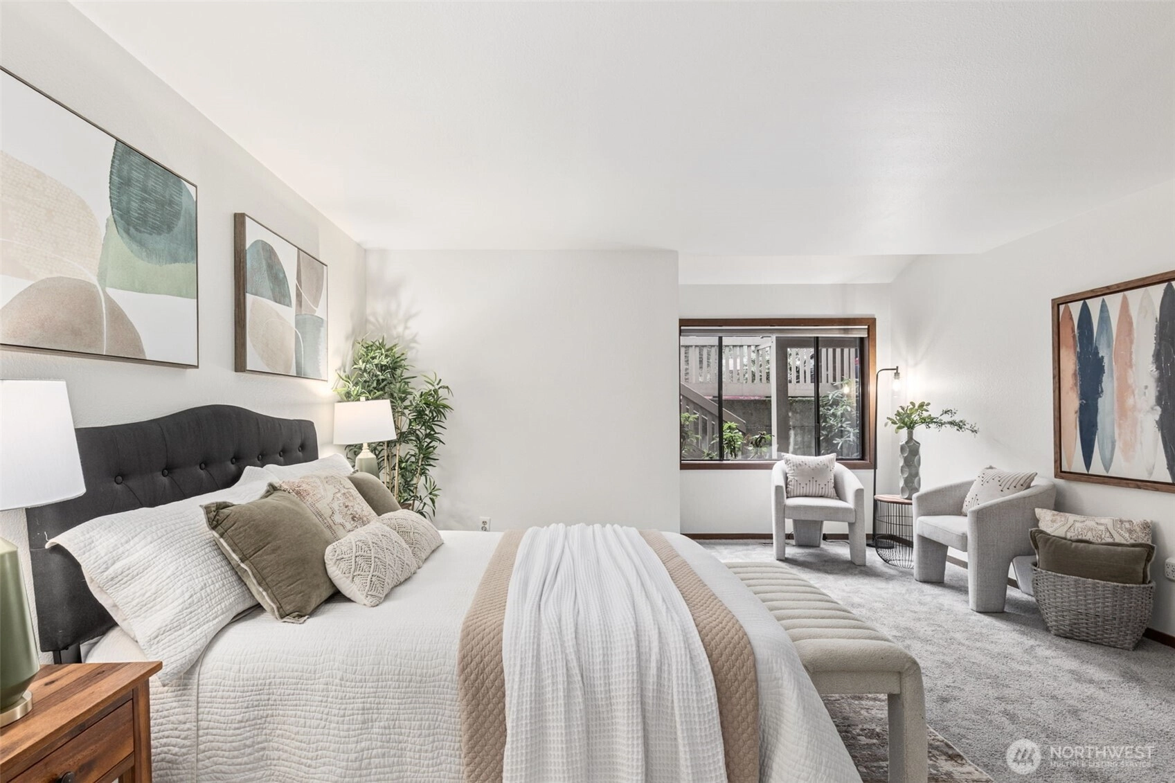 Welcome home to this spacious and serene one-bedroom, 1.5-bath ground-floor condo nestled in the beautifully landscaped, gated community of Chambery Park. With approximately 1,128 sq ft of living space, this residence offers the rare combination of generous size, privacy, and location. Step inside to discover wood-burning fireplace in the living room, floor-to-ceiling windows that frame the lush grounds, and a private patio that opens directly to the tranquil garden setting. The master suite features double closets and an en-suite bath; there’s also a convenient half bath for guests. Beyond your door, enjoy the community amenities: a gated entry for peace of mind, outdoor pool, hot tub, tennis/pickleball court, fitness room & clubhouse.