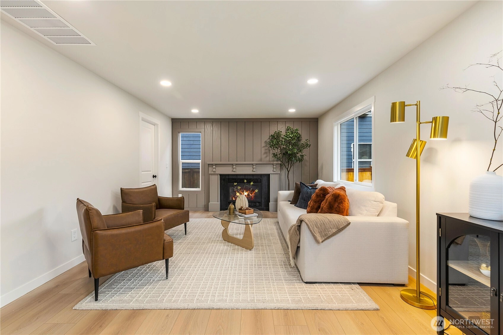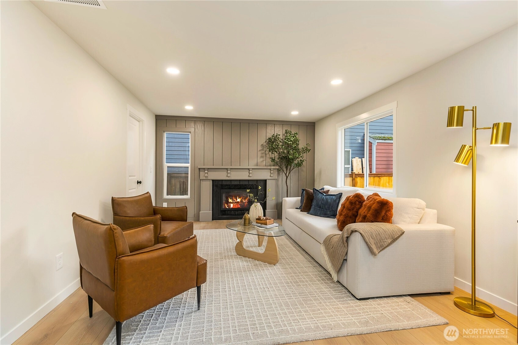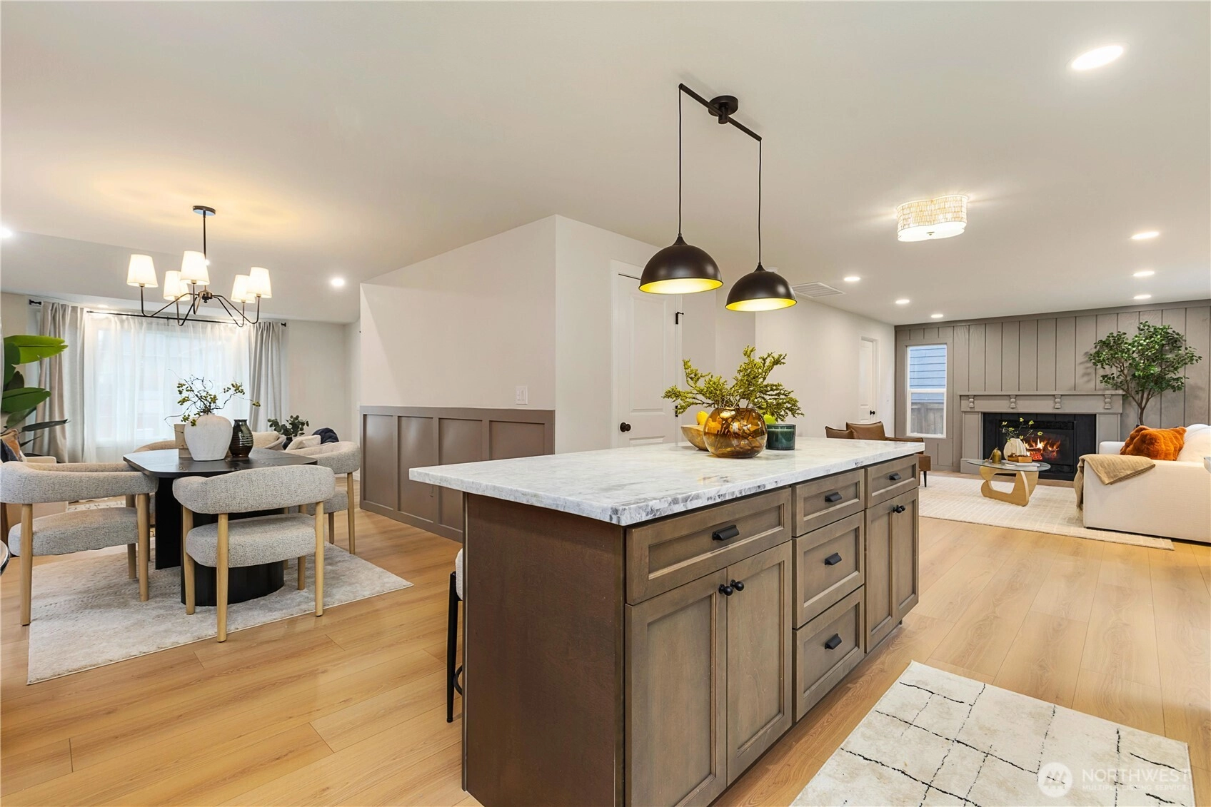 Fully updated & permitted home on a quiet street in Renton Highlands. Soaring ceilings welcome you into sunlit formal living rm w adjoining dining, flowing into kitchen w new cabinetry, stone countertops, SS appliances, tiled backsplash & ample storage w walk-in pantry. Family rm feats new FP design & easy access to expansive backyard. Laundry & charming powder BA adds convenience. Upstairs, 3 beds & remodeled full BA. Primary retreat offers ¾ ensuite w all-new tile, double vanity & large shower w sleek finishes & walk-in closet. Outside, enjoy the level, freshly sodded & manicured lawn, huge patio & shed. New roof, furnace, HWH, floors, doors, trim & more. Easy access to parks, trails, shopping at The Landing & convenient commuter routes.
