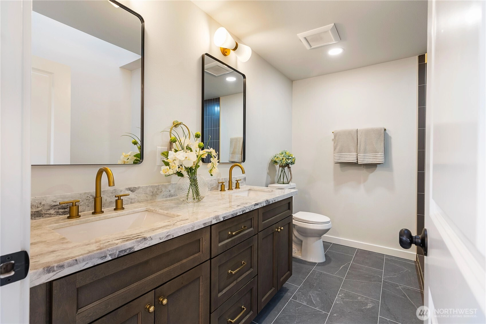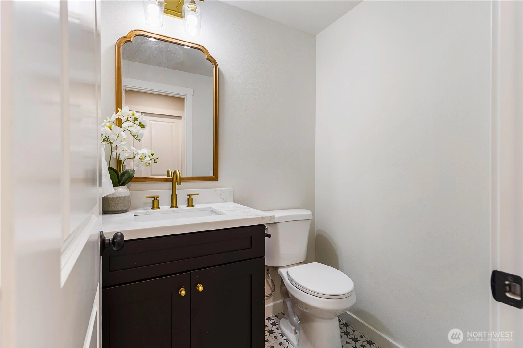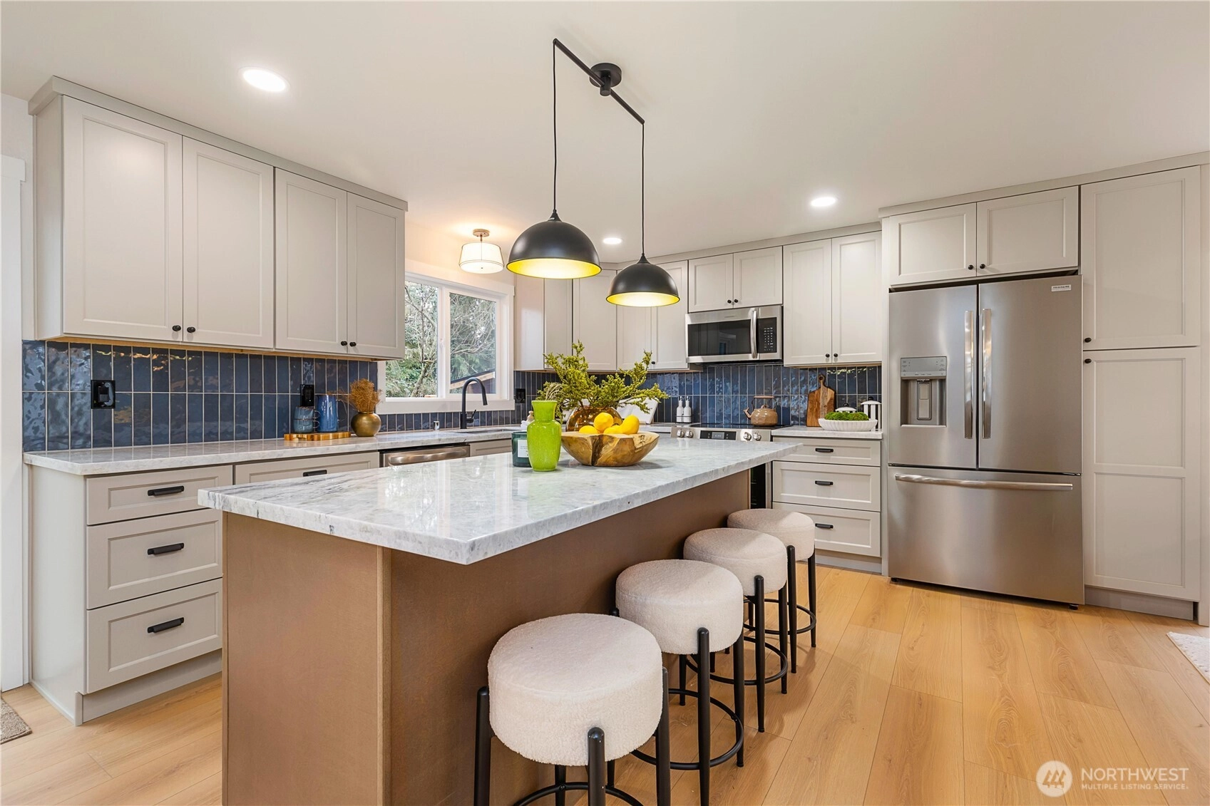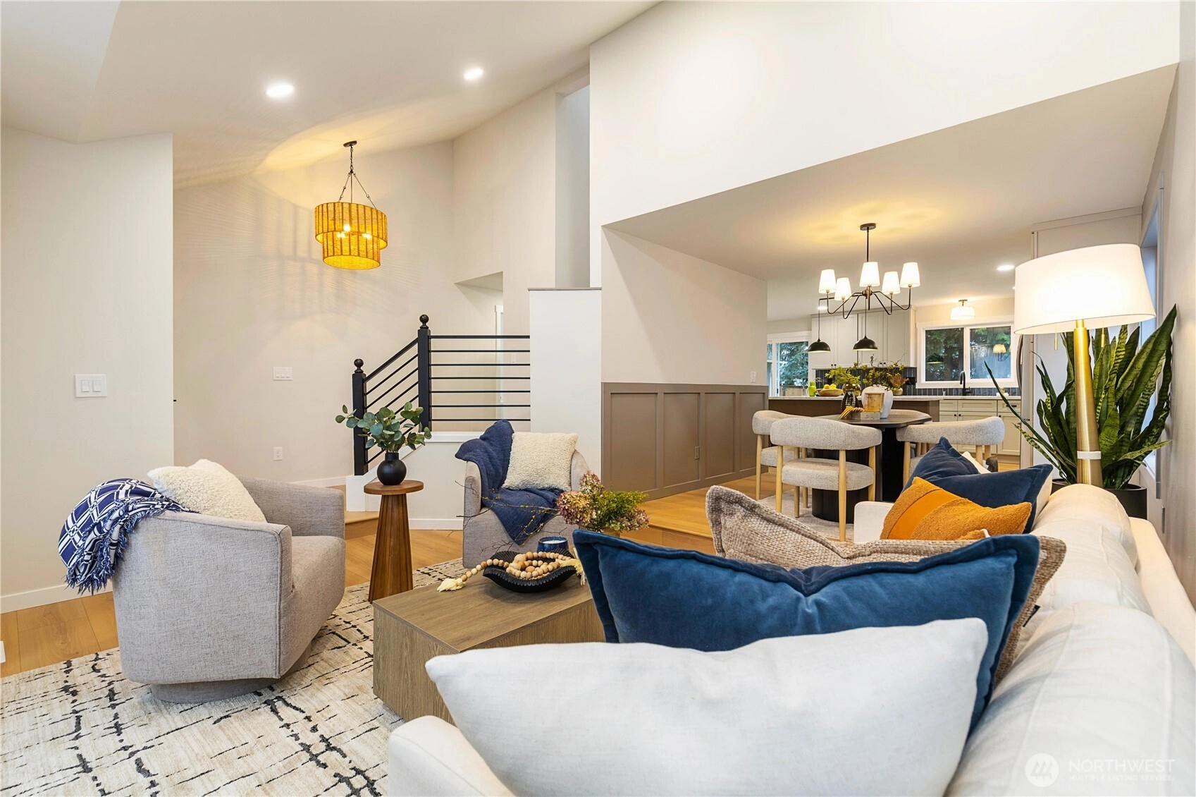 Fully updated & permitted home on a quiet street in Renton Highlands. Soaring ceilings welcome you into sunlit formal living rm w adjoining dining, flowing into kitchen w new cabinetry, stone countertops, SS appliances, tiled backsplash & ample storage w walk-in pantry. Family rm feats new FP design & easy access to expansive backyard. Laundry & charming powder BA adds convenience. Upstairs, 3 beds & remodeled full BA. Primary retreat offers ¾ ensuite w all-new tile, double vanity & large shower w sleek finishes & walk-in closet. Outside, enjoy the level, freshly sodded & manicured lawn, huge patio & shed. New roof, furnace, HWH, floors, doors, trim & more. Easy access to parks, trails, shopping at The Landing & convenient commuter routes.