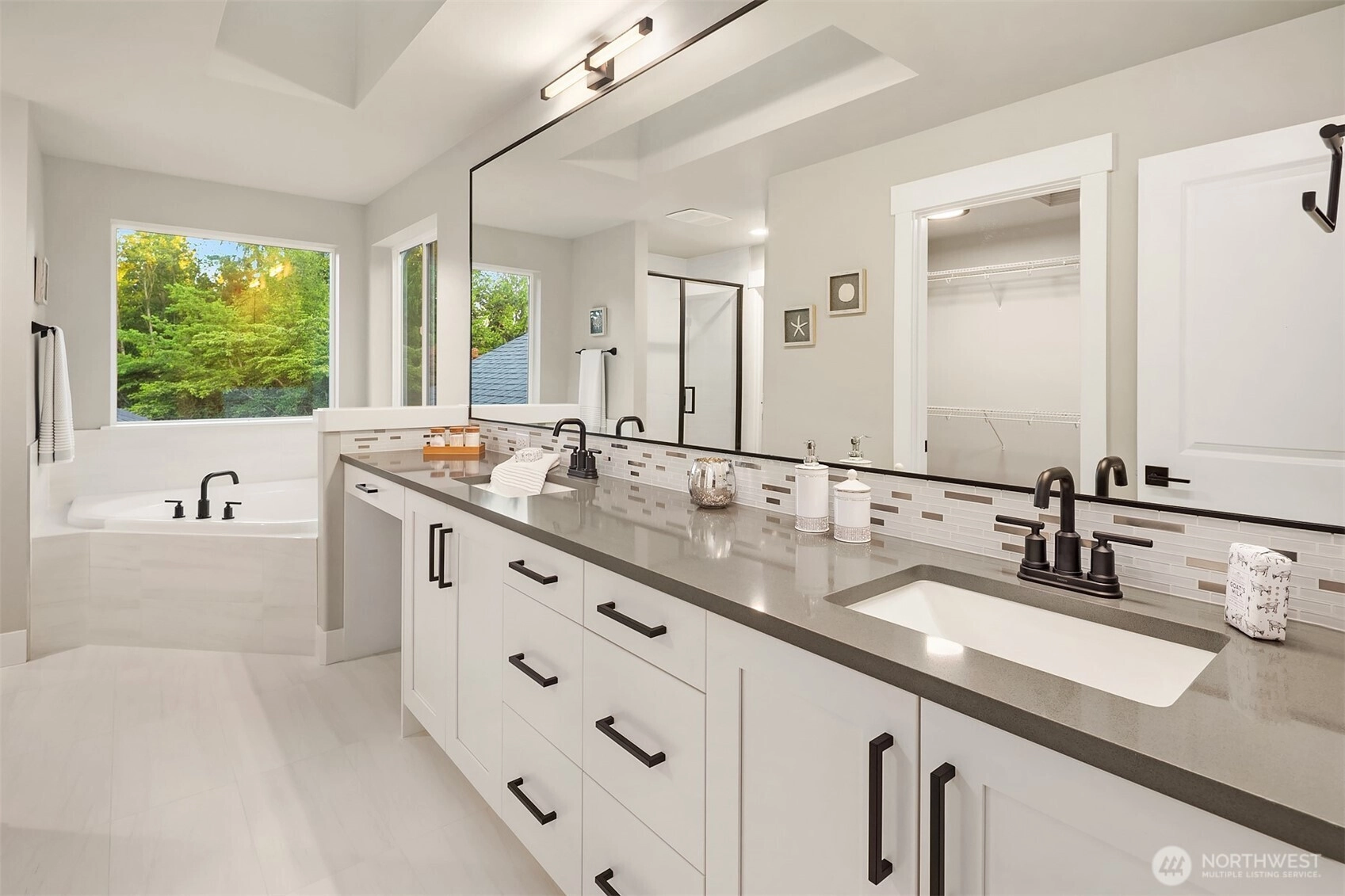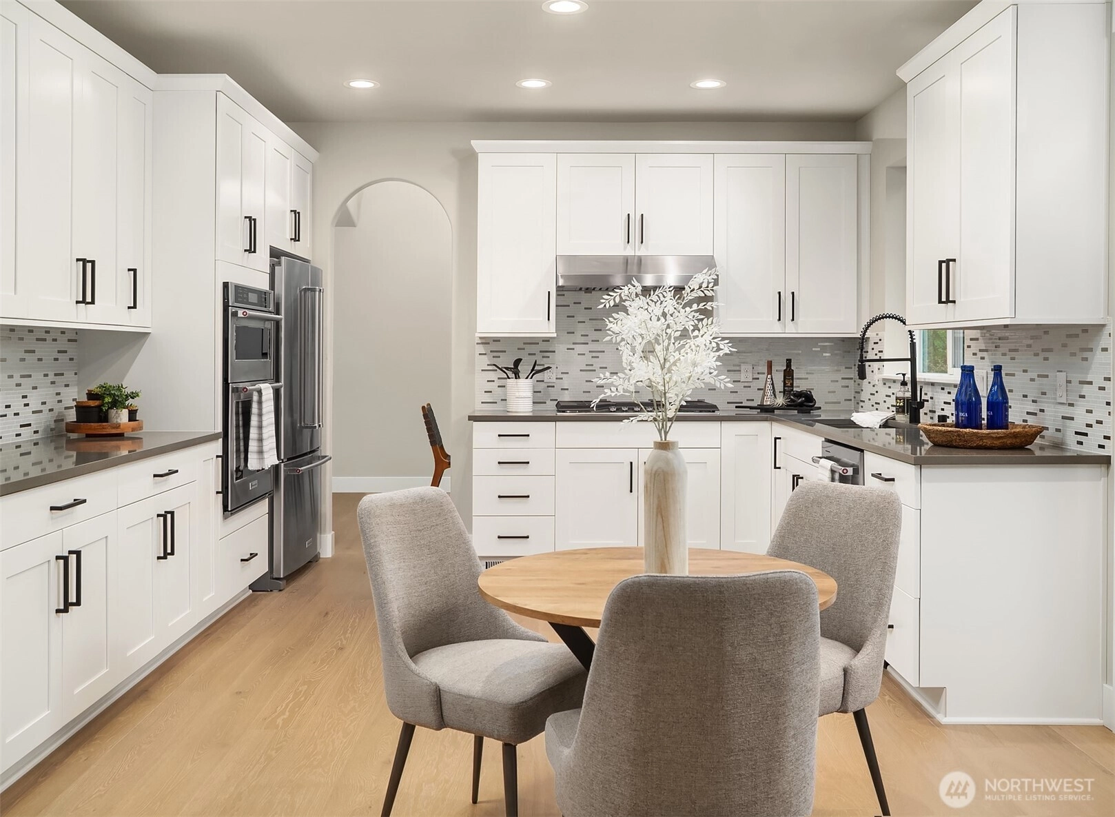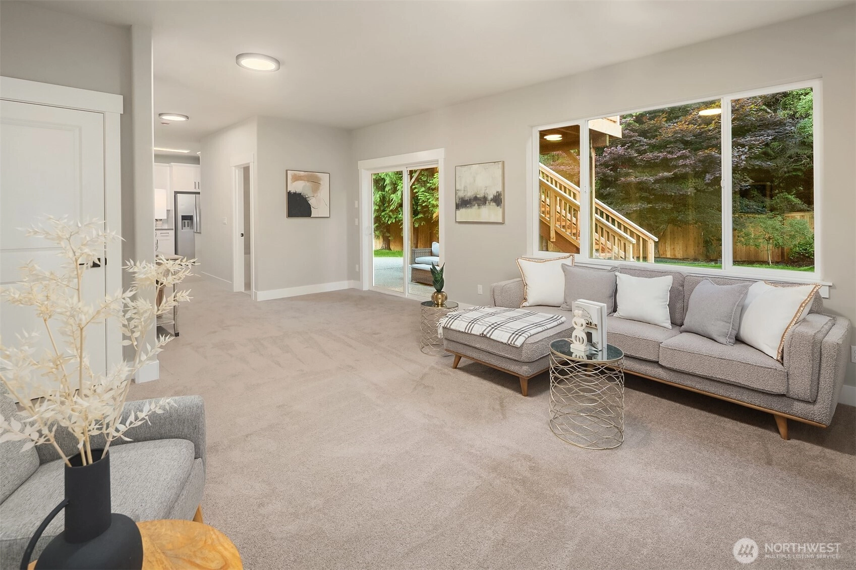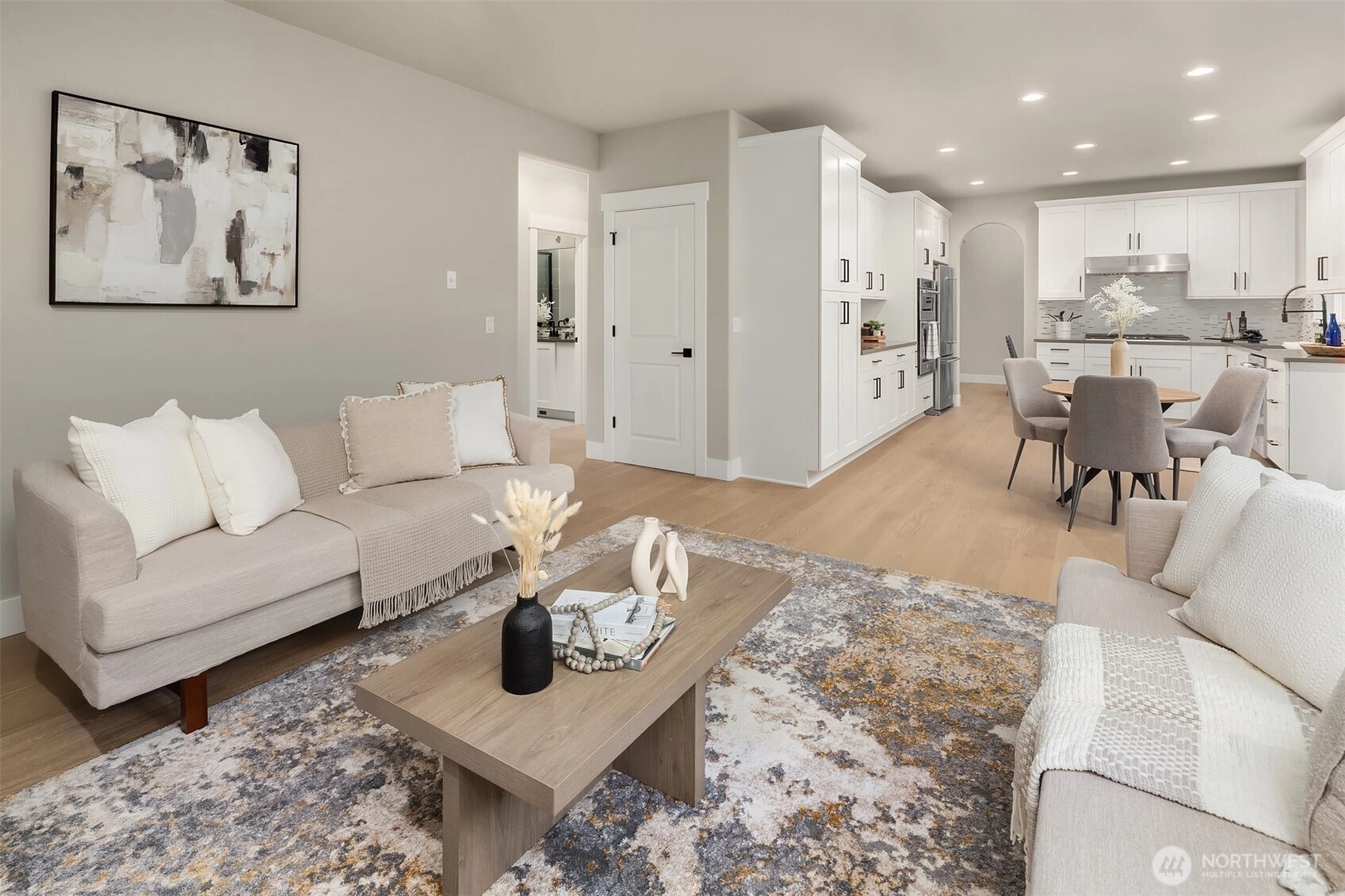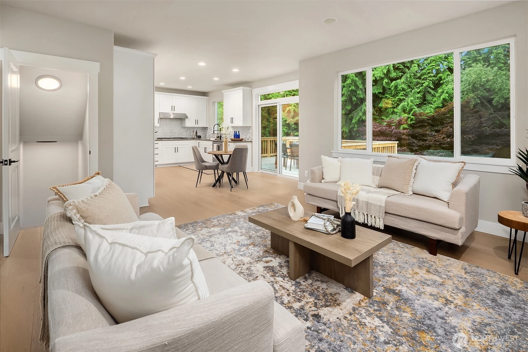 Nestled in Snohomish’s Kensington Estates neighborhood this studs-out 4-bed remodel is sure to impress. 3-car garage + separate rear garage for storage or toys. Thoughtfully designed w/ soaring ceilings & wide-plank oak hardwoods throughout the main. Every detail upgraded by Arcadia Homes: new light fixtures, hardware, flooring, kitchen, baths, deck, & driveway, showcasing their impeccable craftsmanship. Kitchen features white shaker-style cabinetry, quartz counters & sleek built-in appliances. Vaulted ceilings in spacious Primary Suite complete w/ skylight, WIC & 5-pc bath. Lower level includes rec room, full kitchen & bed —perfect for multi-generational living. Expansive backyard w/ deck & patio ideal for entertaining. Lake Stevens SD.