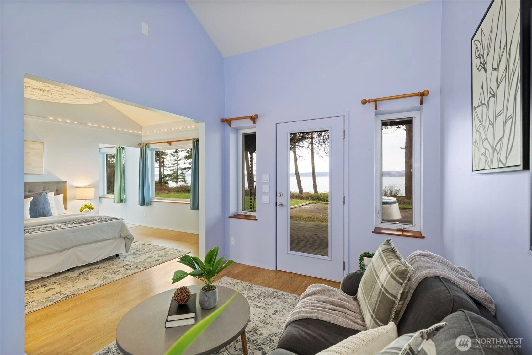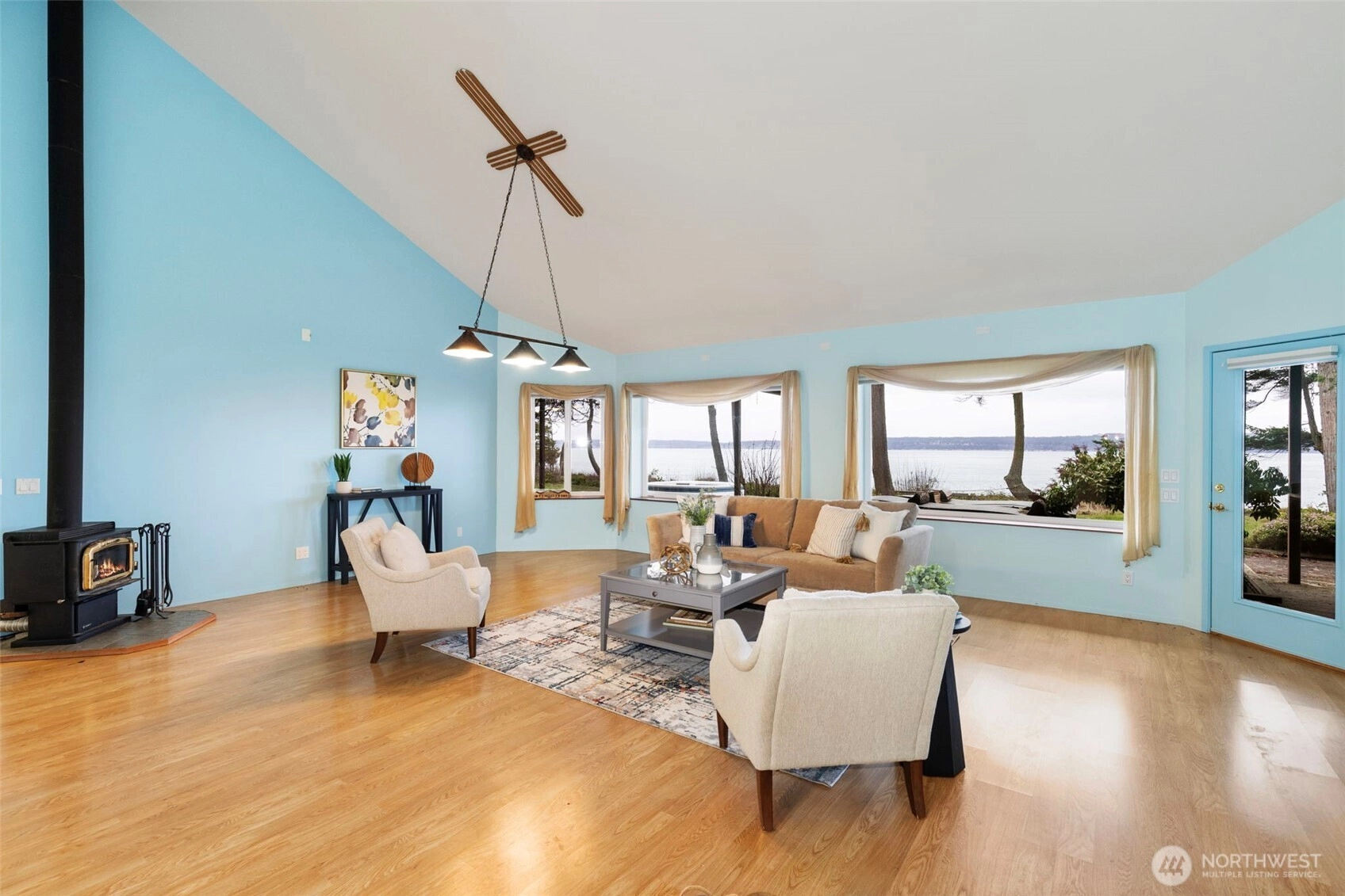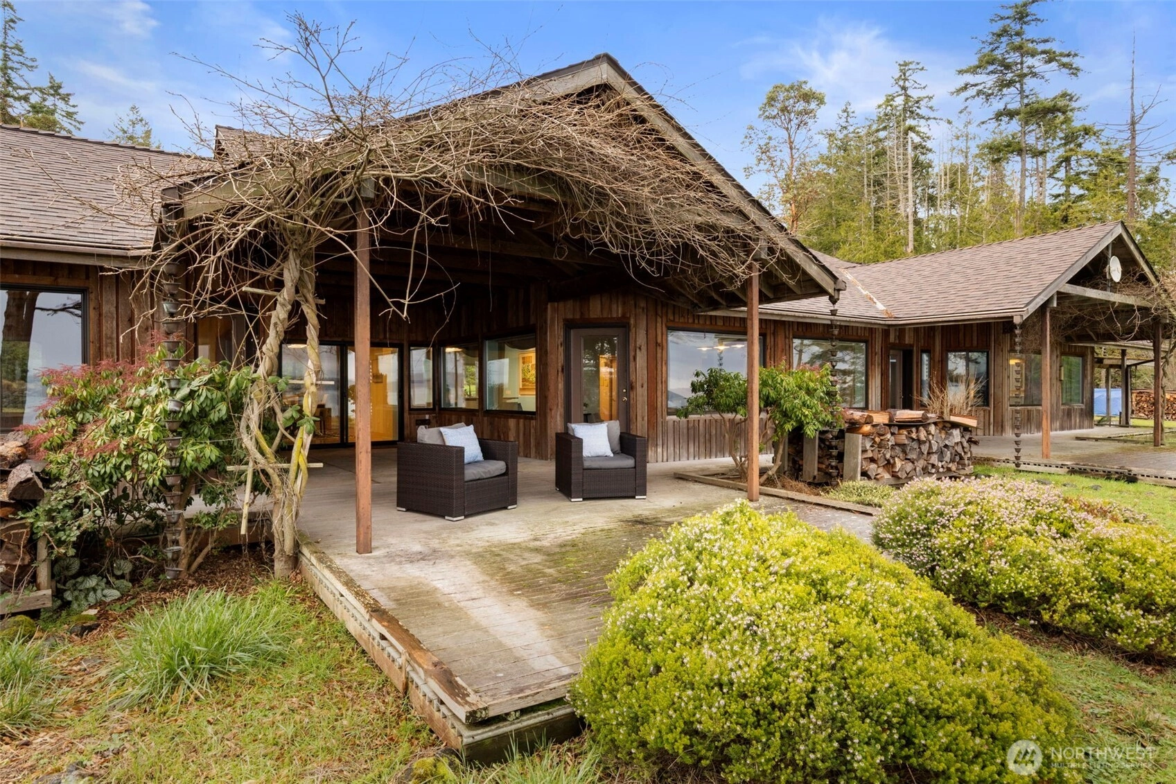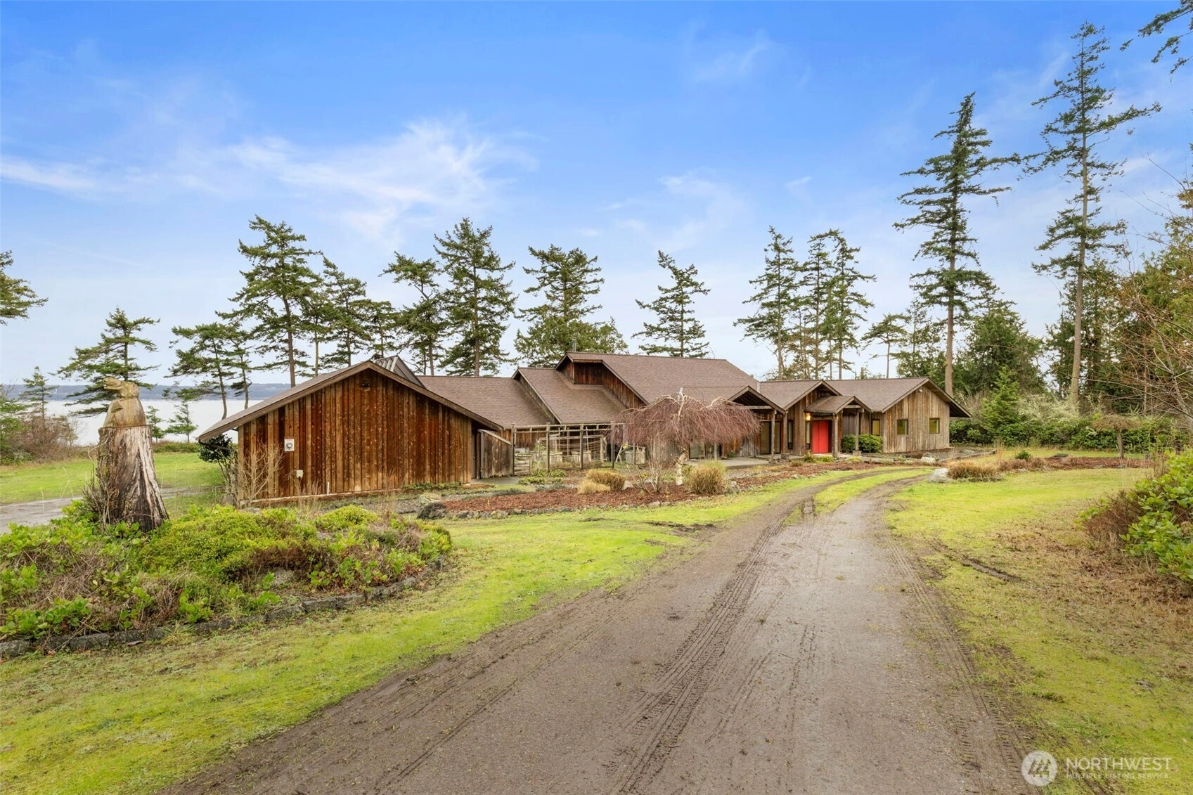 Stunning panoramic views of Admiralty Inlet, Mt. Baker & Rainier. With over 200 ft of waterfront & 5.9 private acres, this extraordinary Marrowstone property offers privacy & flexibility. Water views grace nearly every rm of this expansive, single-level home, featuring a versatile floor plan. Property highlights include a workshop, 3 car garage, solar power & radiant floor heating. Primary suite offers dual sinks, showers, closets, & sitting area. Two living rooms provide inviting spaces to gather—one formal w/ a fireplace, the other w/ wood stove. Kitchen is the heart of the home, boasting a 12-ft island, walk-through pantry, standing desk, sliding doors to kitchen garden. Watch Eagles soar, Orcas migrate & the sun rise over the Cascades!