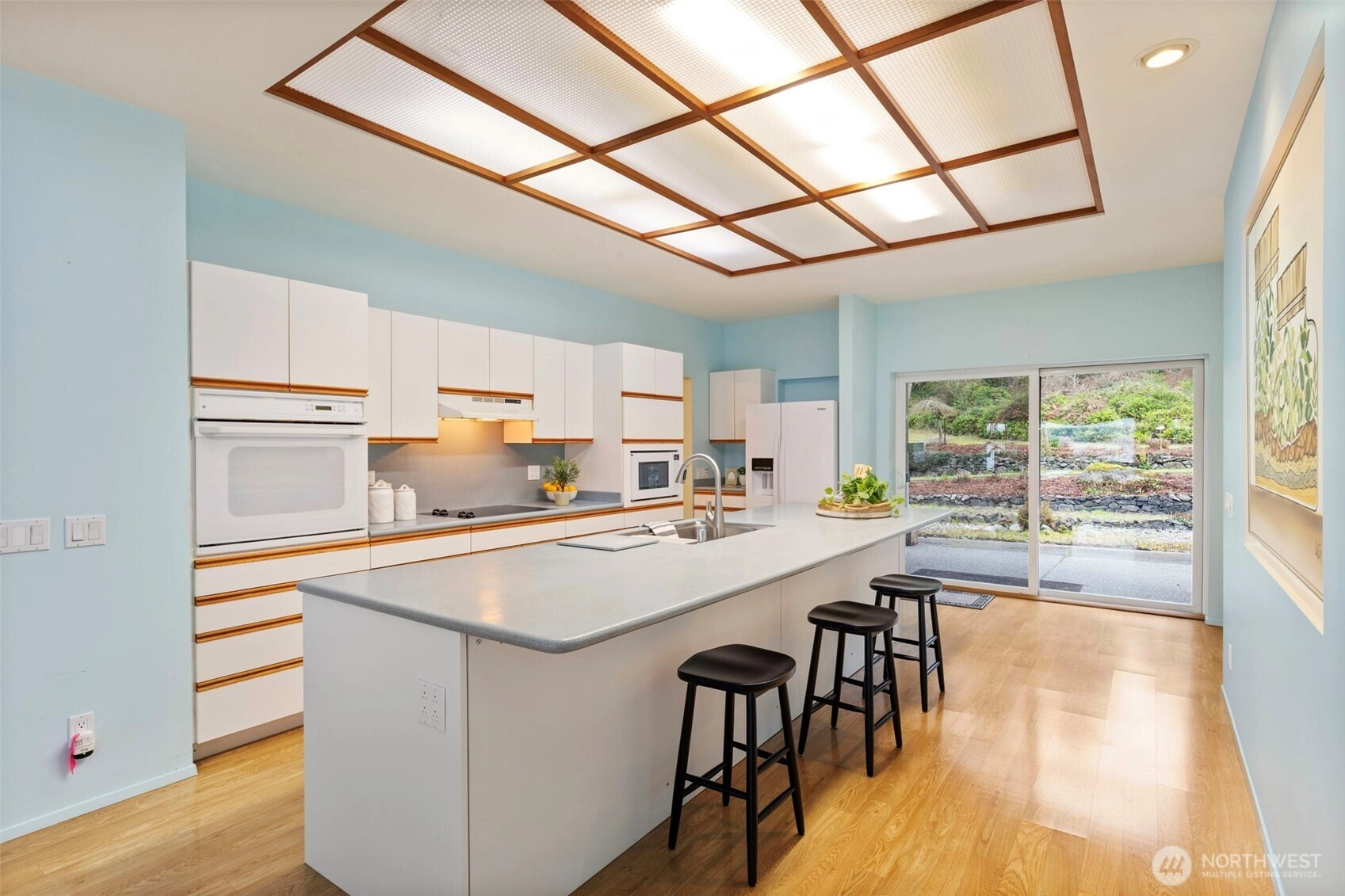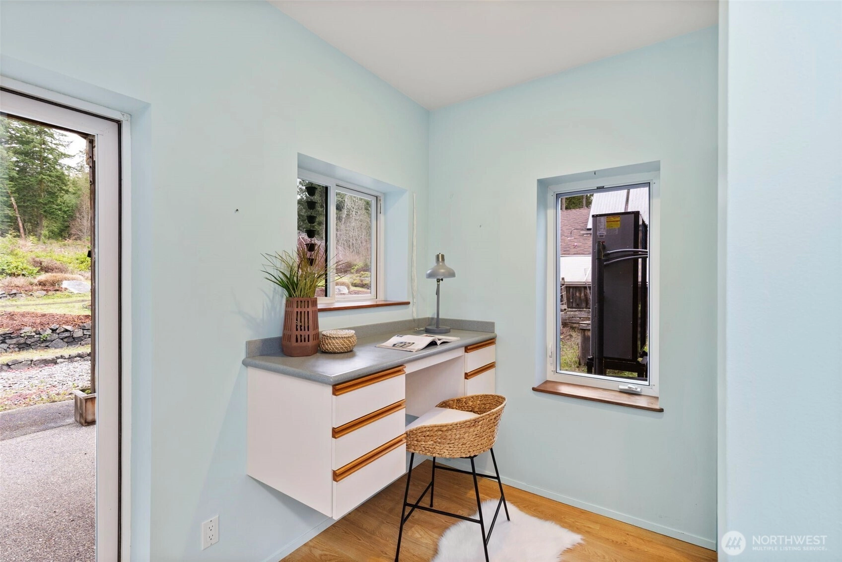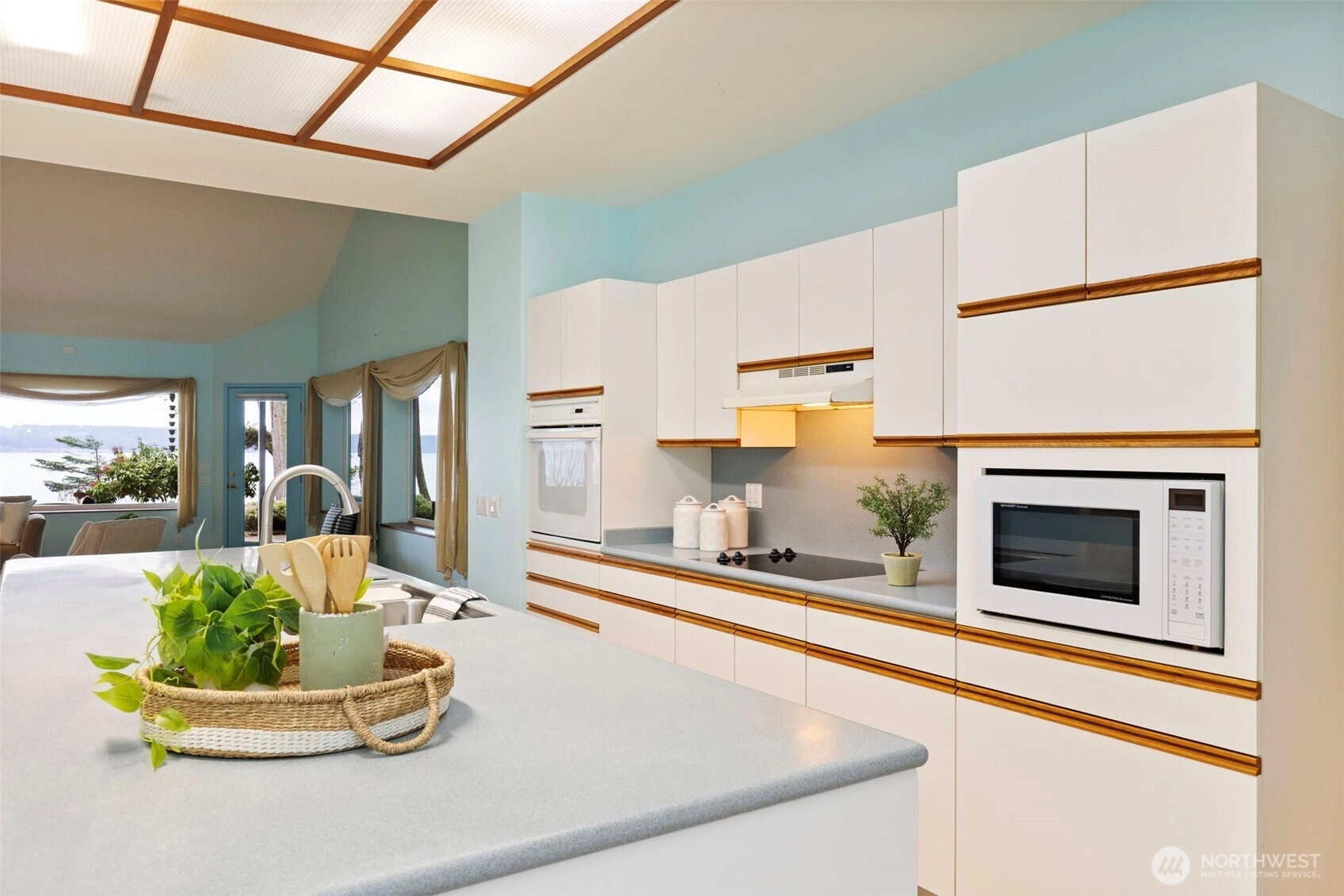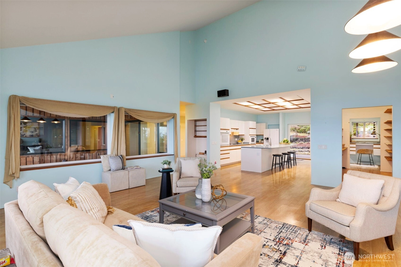 Stunning panoramic views of Admiralty Inlet, Mt. Baker & Rainier. With over 200 ft of waterfront & 5.9 private acres, this extraordinary Marrowstone property offers privacy & flexibility. Water views grace nearly every rm of this expansive, single-level home, featuring a versatile floor plan. Property highlights include a workshop, 3 car garage, solar power & radiant floor heating. Primary suite offers dual sinks, showers, closets, & sitting area. Two living rooms provide inviting spaces to gather—one formal w/ a fireplace, the other w/ wood stove. Kitchen is the heart of the home, boasting a 12-ft island, walk-through pantry, standing desk, sliding doors to kitchen garden. Watch Eagles soar, Orcas migrate & the sun rise over the Cascades!