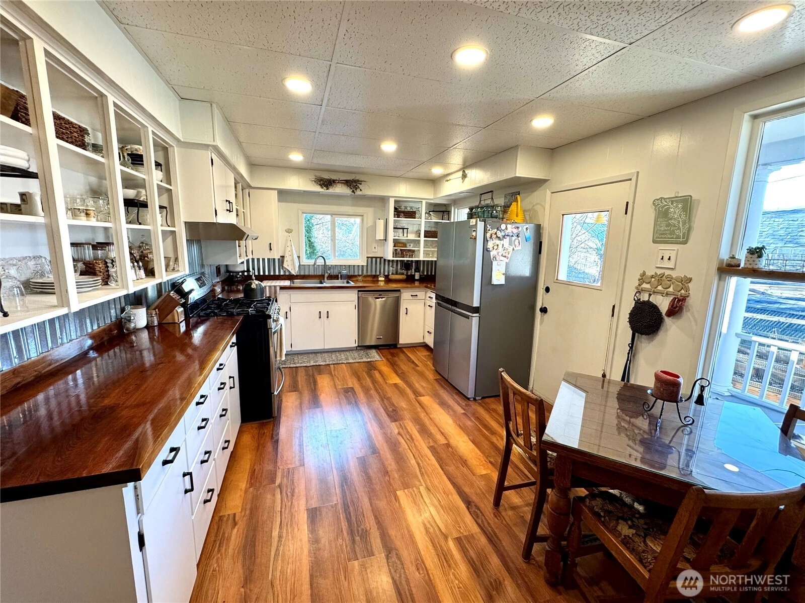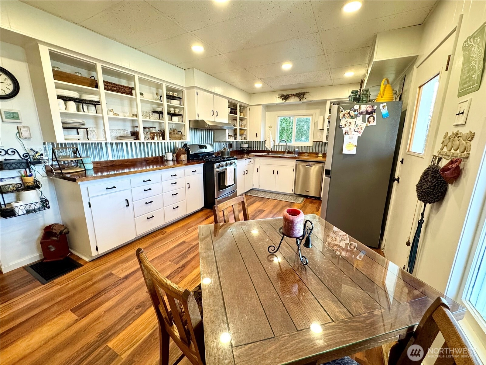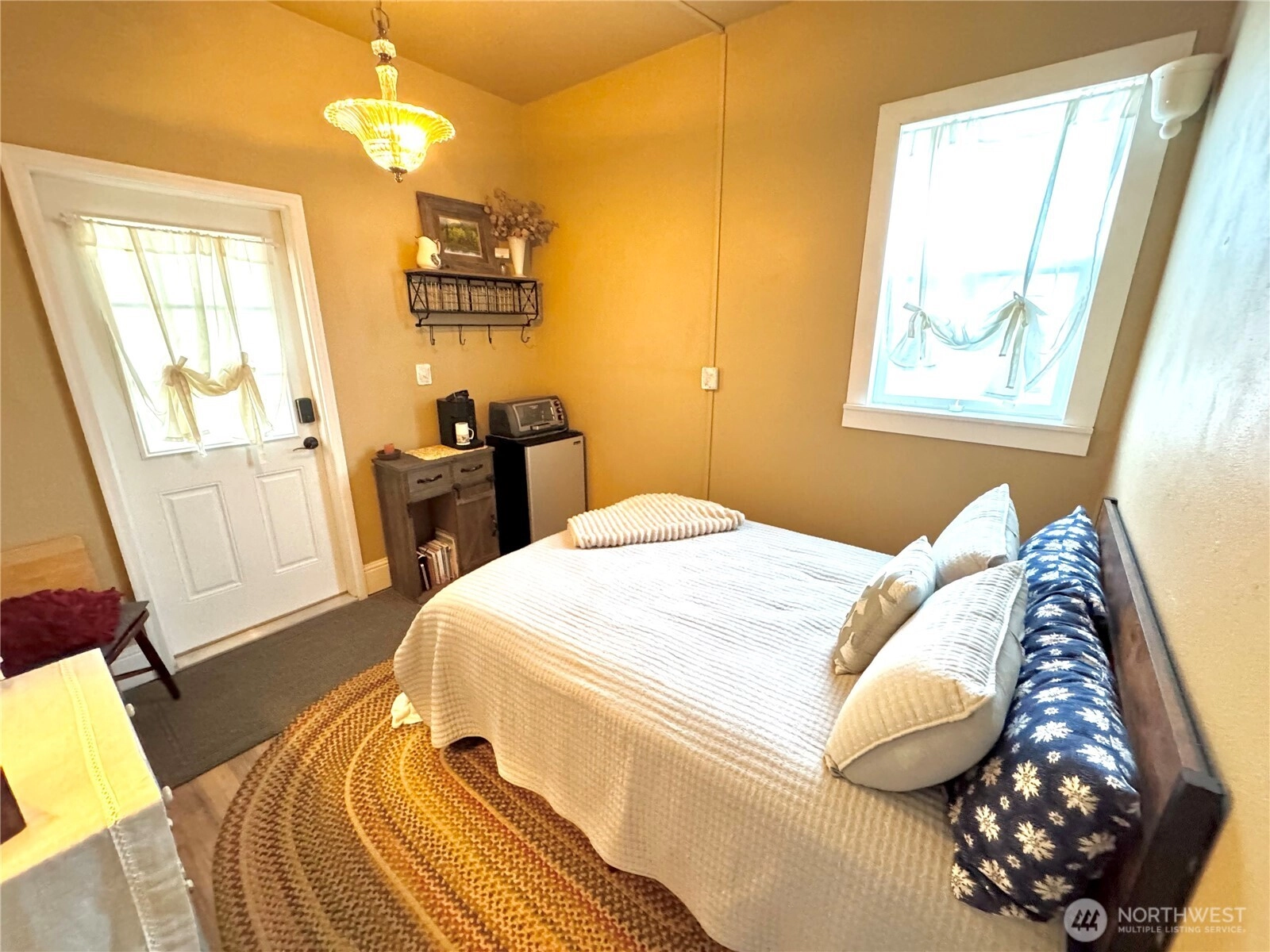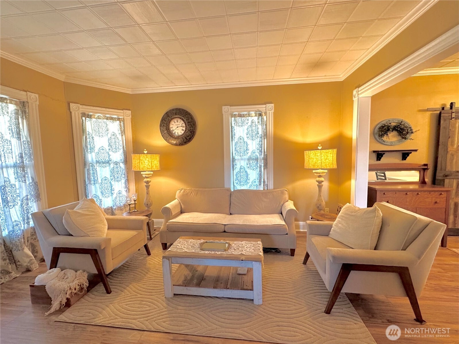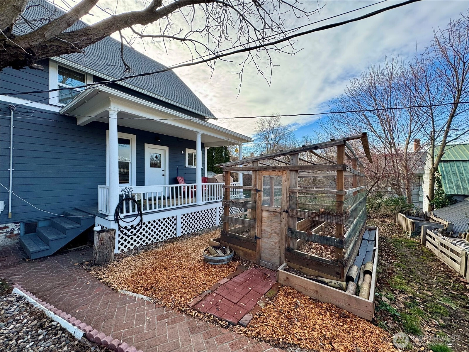 Charismatic 1903 Victorian offering timeless character paired with thoughtful modern updates, set on an 11,700 sq ft corner lot. A covered, concrete front porch enhances the home’s classic curb appeal and provides a welcoming place to relax. The main floor bedroom offers a private exterior entrance and en-suite bathroom, making it ideal for guest accommodations or flexible living arrangements. Enjoy a cozy living room with a wood stove to keep you warm. Recent owner improvements include a heat pump for year-round comfort. Exterior enhancements include a wood shed and covered garden space. This generously sized lot provides ample room for outdoor enjoyment and future potential, including space to add an additional garage or shop.