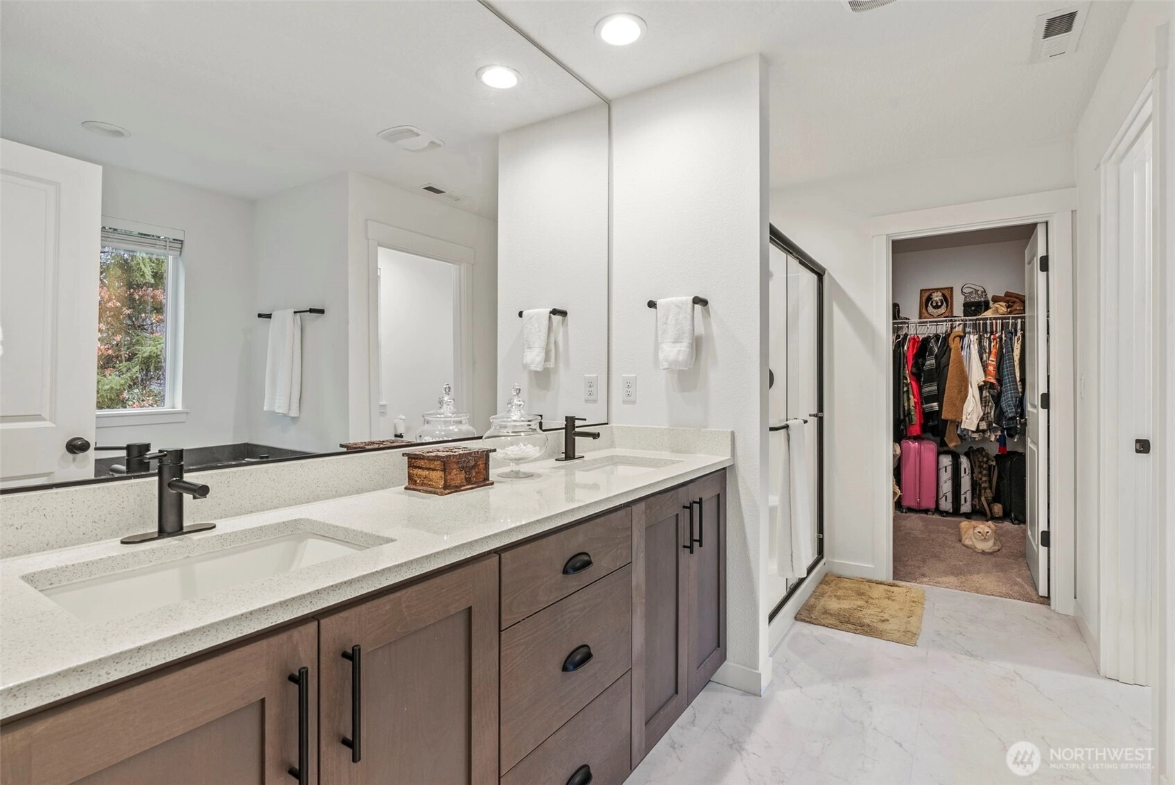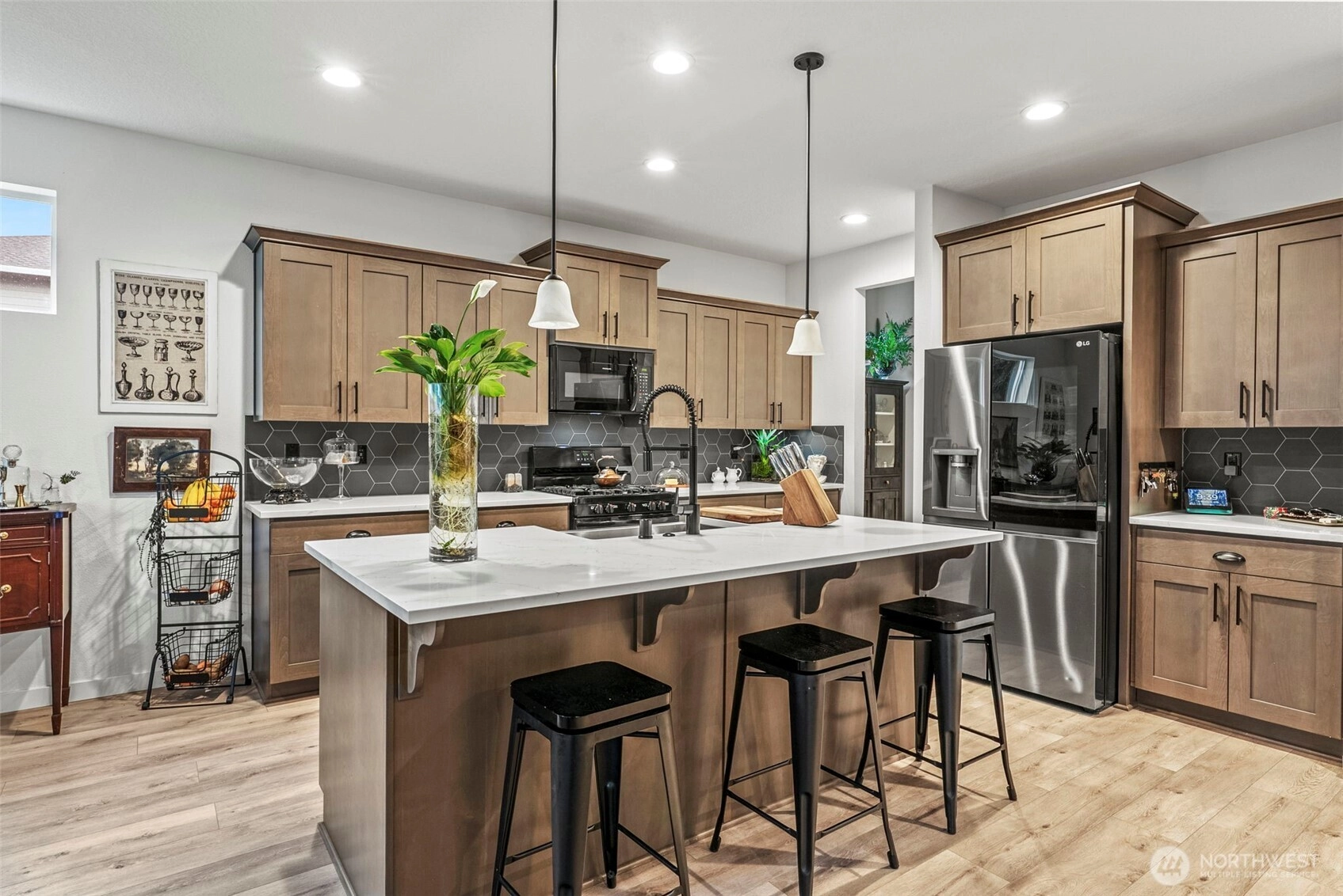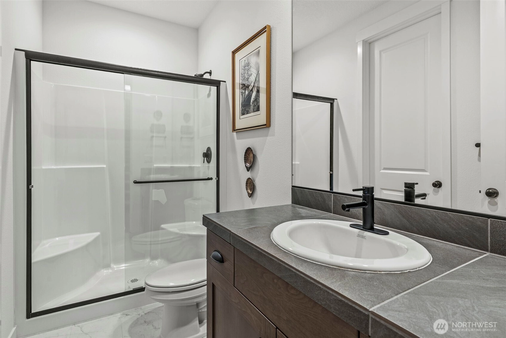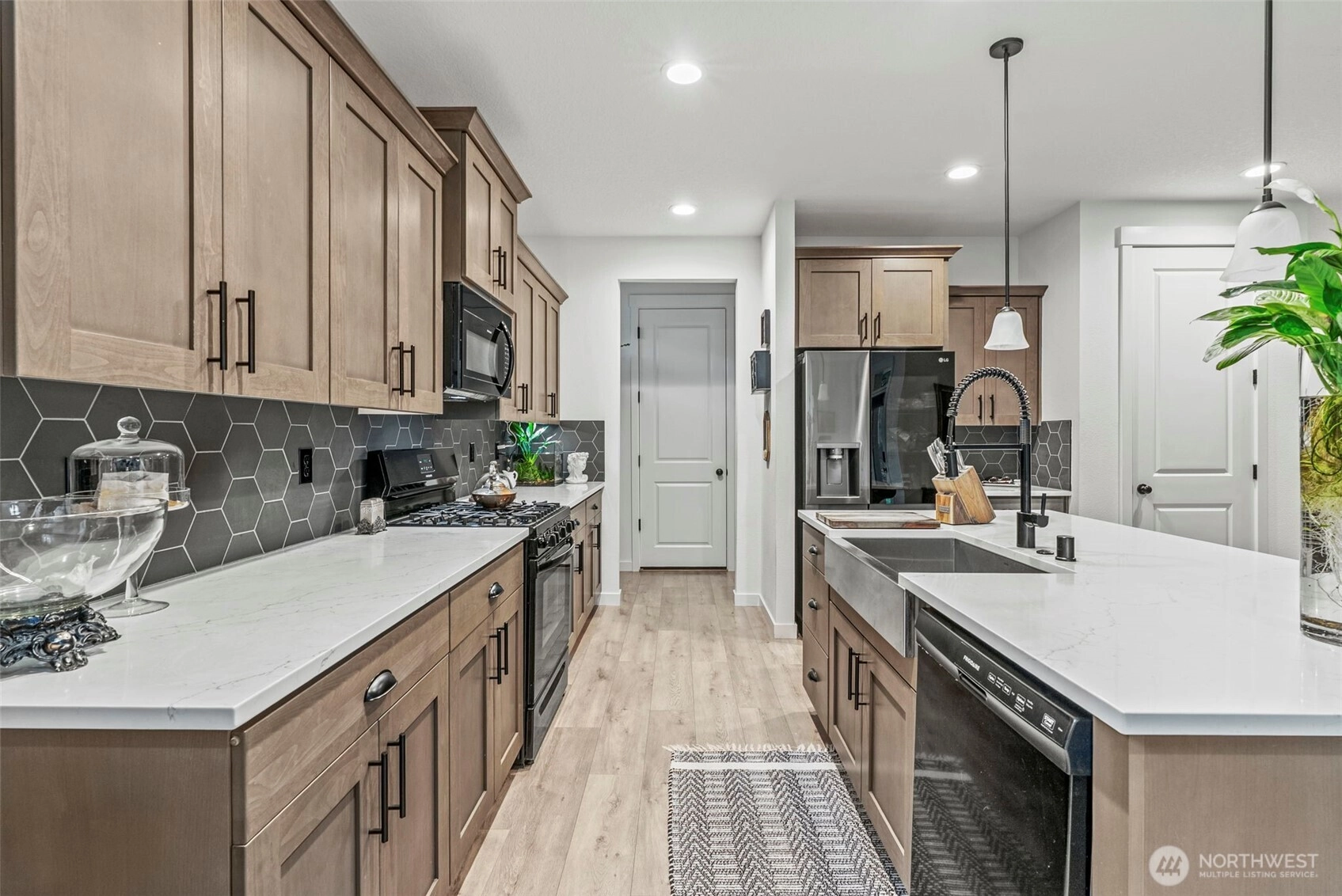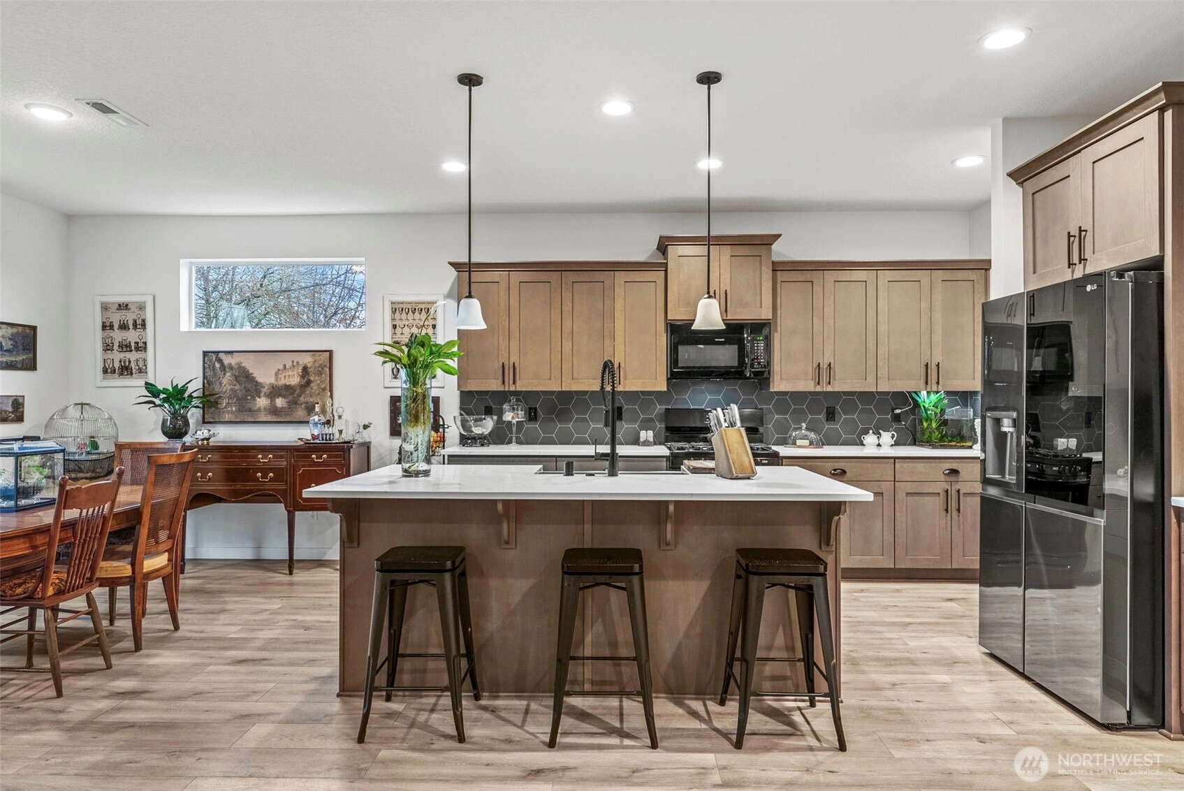 RAMBLE CREEK is a new community! Welcome home to Ramble Creek, where comfort meets flexibility on a large corner fenced lot. This almost new build with spacious living in 2562 sqft - 5-bed, 3-bath home features an open-concept layout and two private primary ensuites—one upstairs and one downstairs—ideal for multigenerational living or guests - lg kitchen perfectly situated for entertaining as it overlooks living area - quartz countertops, laminate flooring wall to wall carpet - 3-car garage. Easy access to the airport and downtown Portland. Enjoy peaceful surroundings with quick access to shopping, dining, trails, and city conveniences just minutes away.