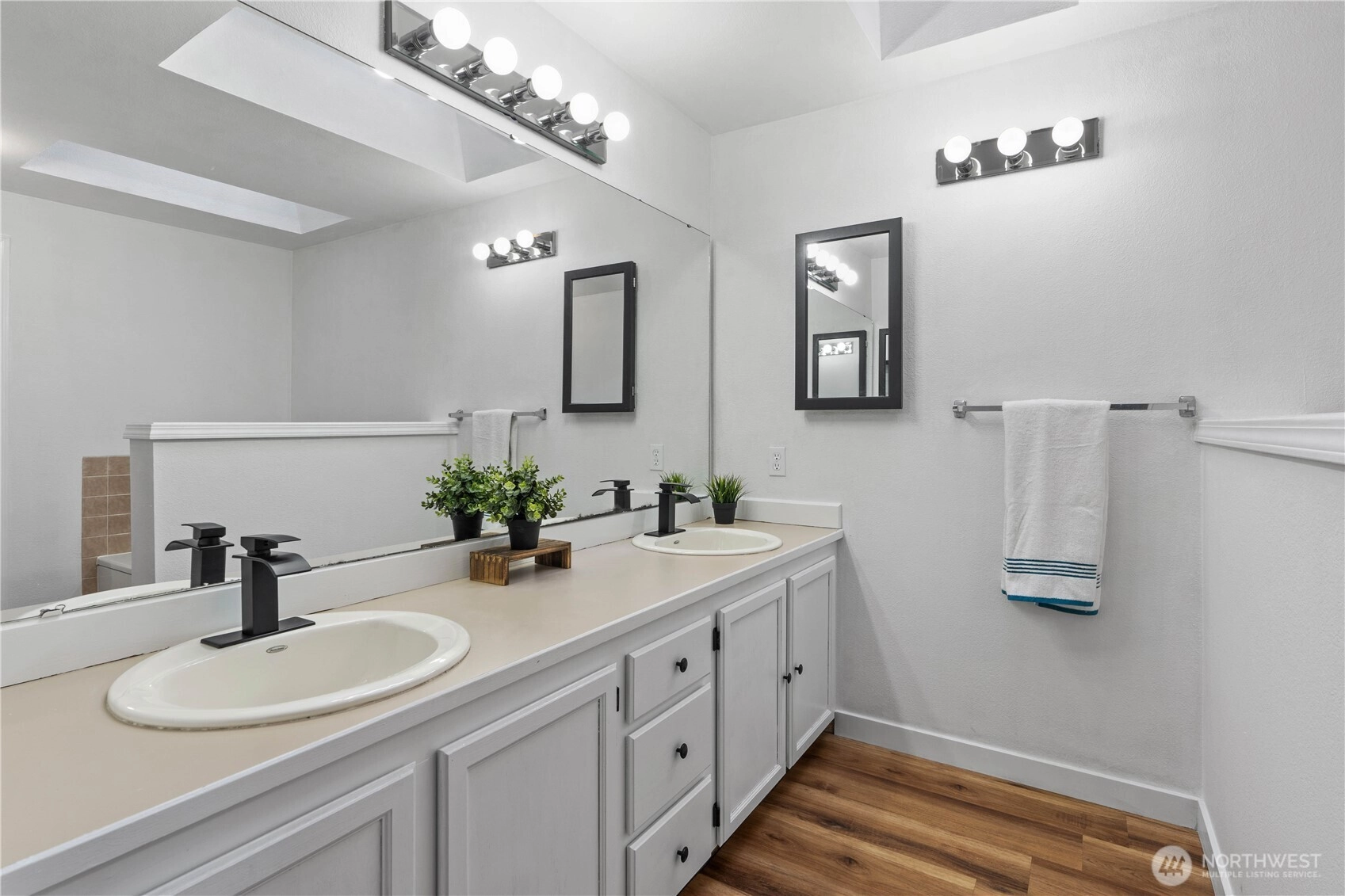This is the one. Nestled in the picturesque Westbury neighborhood. Come home to the quiet end of Federal Way that is neighboring the water, near Dash Point. Open floor plan allows lots of natural light. Large Primary Bedroom has walk in closet and ensuite with skylights and soaking tub. Private slider has alternate access onto back deck. Upstairs loft bedroom overlooks living room and would be great for an office or large playroom. Peninsula kitchen opens up to dining and living rooms for entertaining friends. Also comes with mounted TV in kitchen. Two separate decks great for outdoor gatherings. Close to shopping and food. Walking distance to Dumas Bay and Dash Point State Park. Also 10 minute drive to newly open light rail stop.