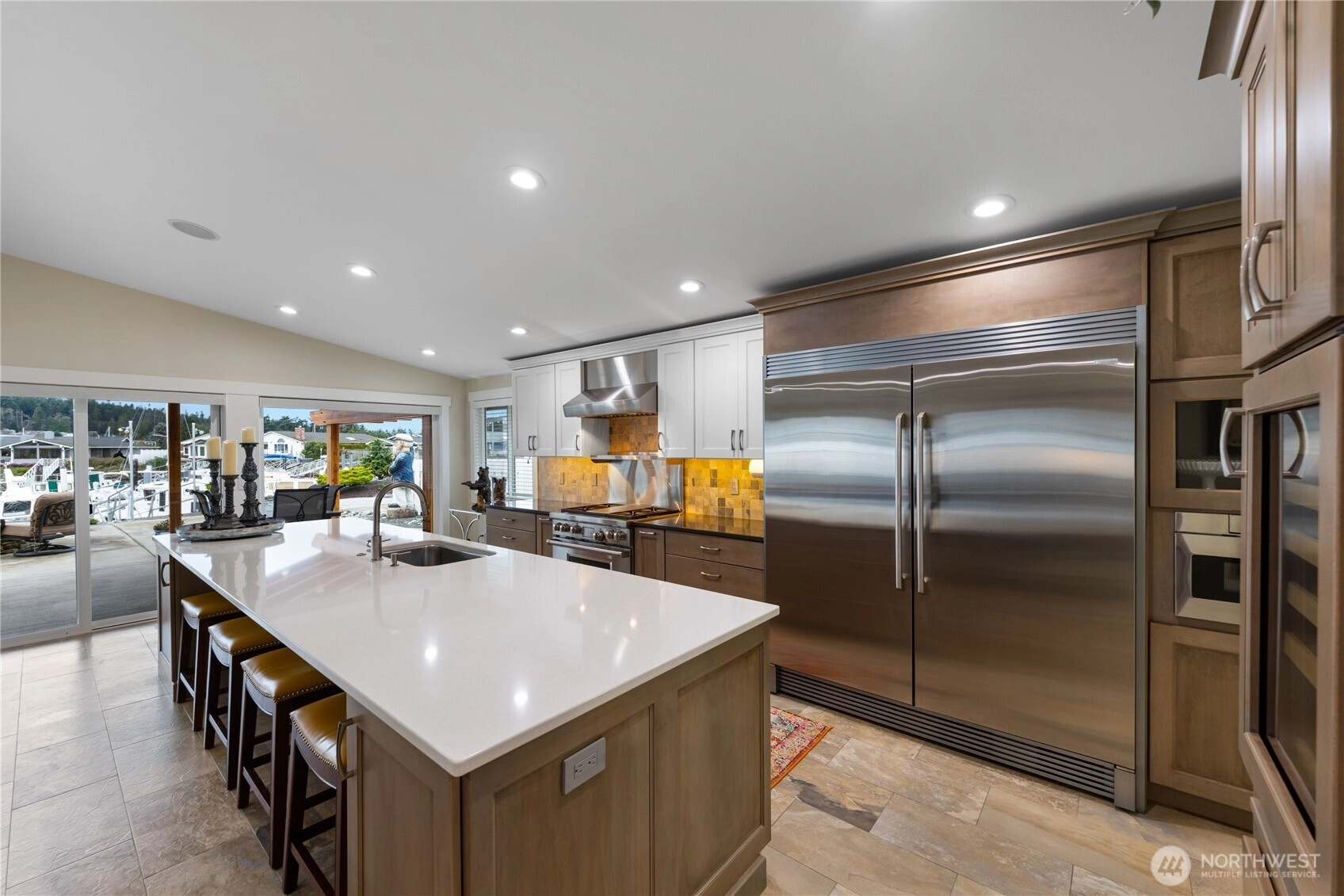 One-story living meets coveted low-bank waterfront in this fully remodeled and turn key fully furnished Skyline Marina home. Enjoy shoreline access to your brand new steel 46’ dock, perfectly suited for serious boating & seamless San Juan Islands adventures. Unwind at sunset on the expansive covered patio with Sunbrella curtains & 2 cozy gas propane fireplaces so you can entertain with ease. Inside, an open & inviting layout showcases a chef-inspired gourmet kitchen with high-end appliances, an oversized island, a dedicated dining area, and a light-filled great room anchored by a gas fireplace. Thoughtful extras include RV parking & a spacious three-car garage. The Skyline community offers exceptional amenities for outdoor adventurists.