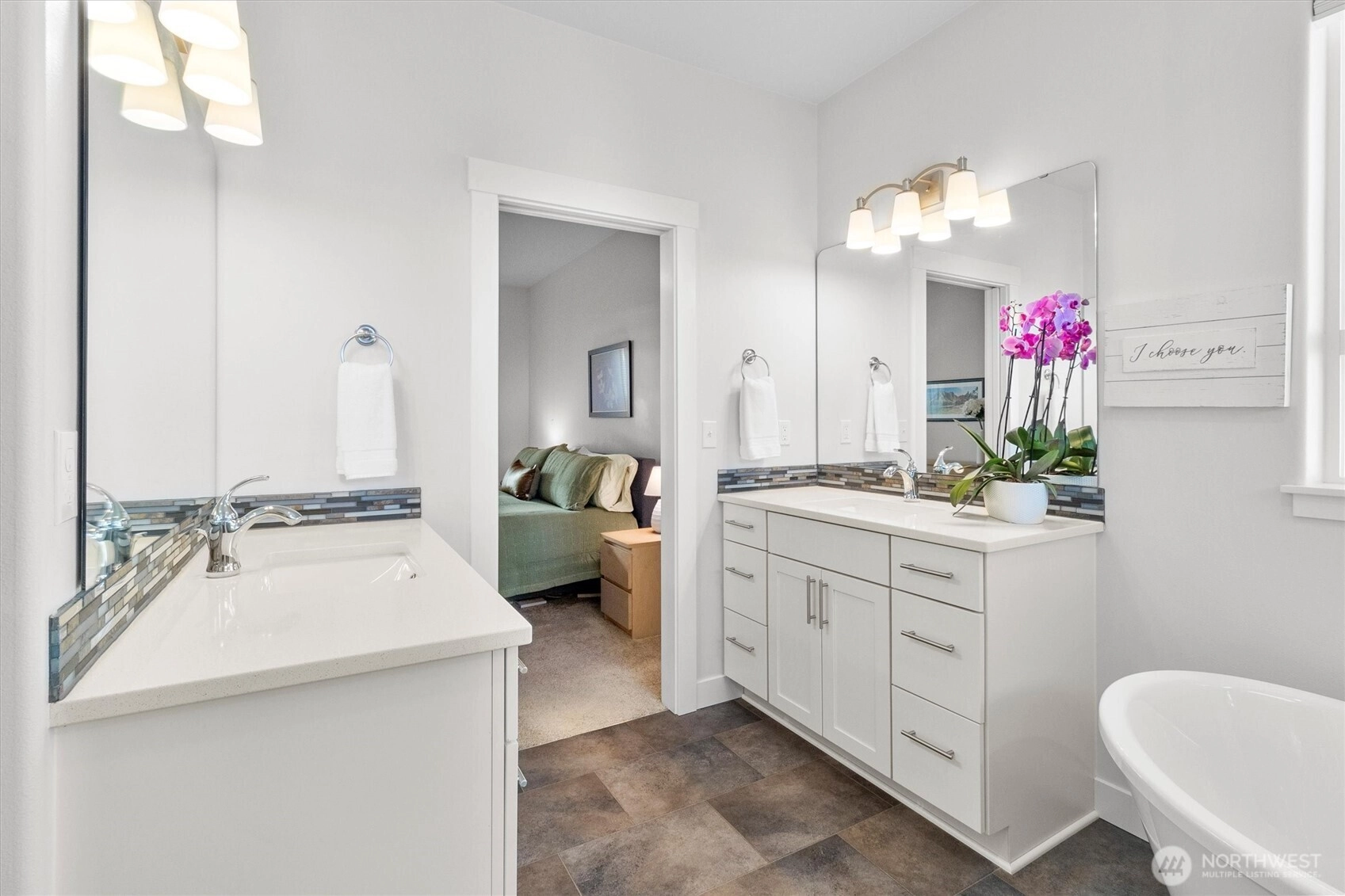 Discover this beautiful, move in ready home perfectly situated in a cozy cul de sac! This stunning residence features A/C, 4 spacious bedrooms plus a versatile office, with the 4th bedroom easily functioning as a flex or bonus room. The open concept kitchen flows seamlessly into the dining and living areas, ideal for entertaining and everyday living. Enjoy covered back deck, which offers direct access to a lovely lower patio and stairs leading to a private berm that offers breathtaking views of Mount Baker and the Cascade Range. Enjoy outdoor adventures right from your front door with trails leading directly to Galbraith Mountain and Samish Crest, as well as quick access to shopping and downtown. Pristine home you don't want to miss!
