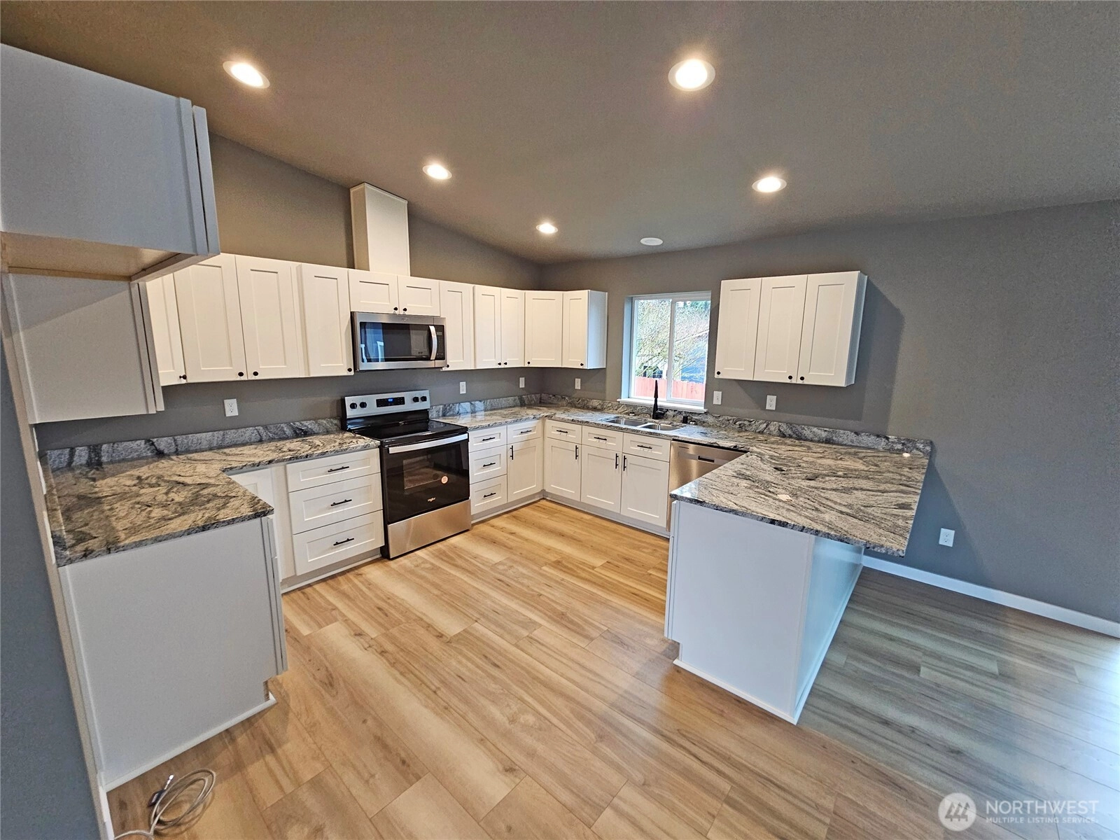 New 1600 sq.ft. home. Ideal floorplan offers a spacious great rm wi vast wallspace ideal for a huge flatscreen to watch your favorite sports. Great Kitchen prep-space wi solid, shining granite counters, ample cabinetry, soft close drawers, upgraded fixtures. EZ clean vinyl plank floors. Dual vanity sinks in main bath. Heatpump for economical AC & warmth. Long lived hardiboard siding. Quality/inexpensive city water. Short walk to school/playground/restaurant/lounge. 10 min to 100,000 acres of Capitol Forest trails, 5 min to a boatlaunch onto fishfilled Chehalis River, 70 miles to Ocean Shores. Extended hm warranty. EZ financing, VA/FHA/tribal 184 programs. Interest rates have dropped! Great time to buy! Best new home value in the region!