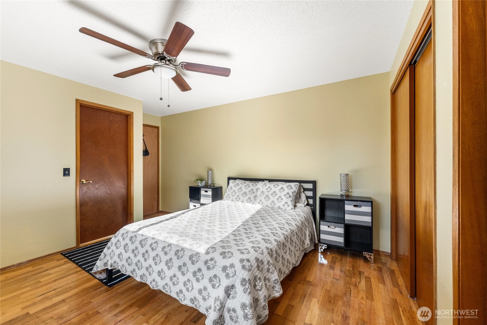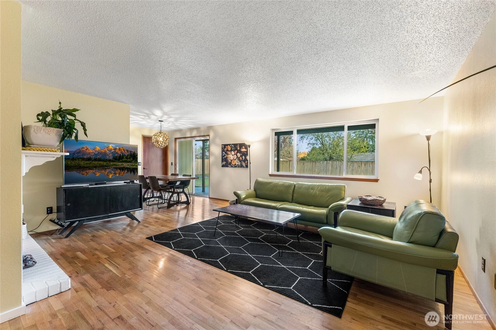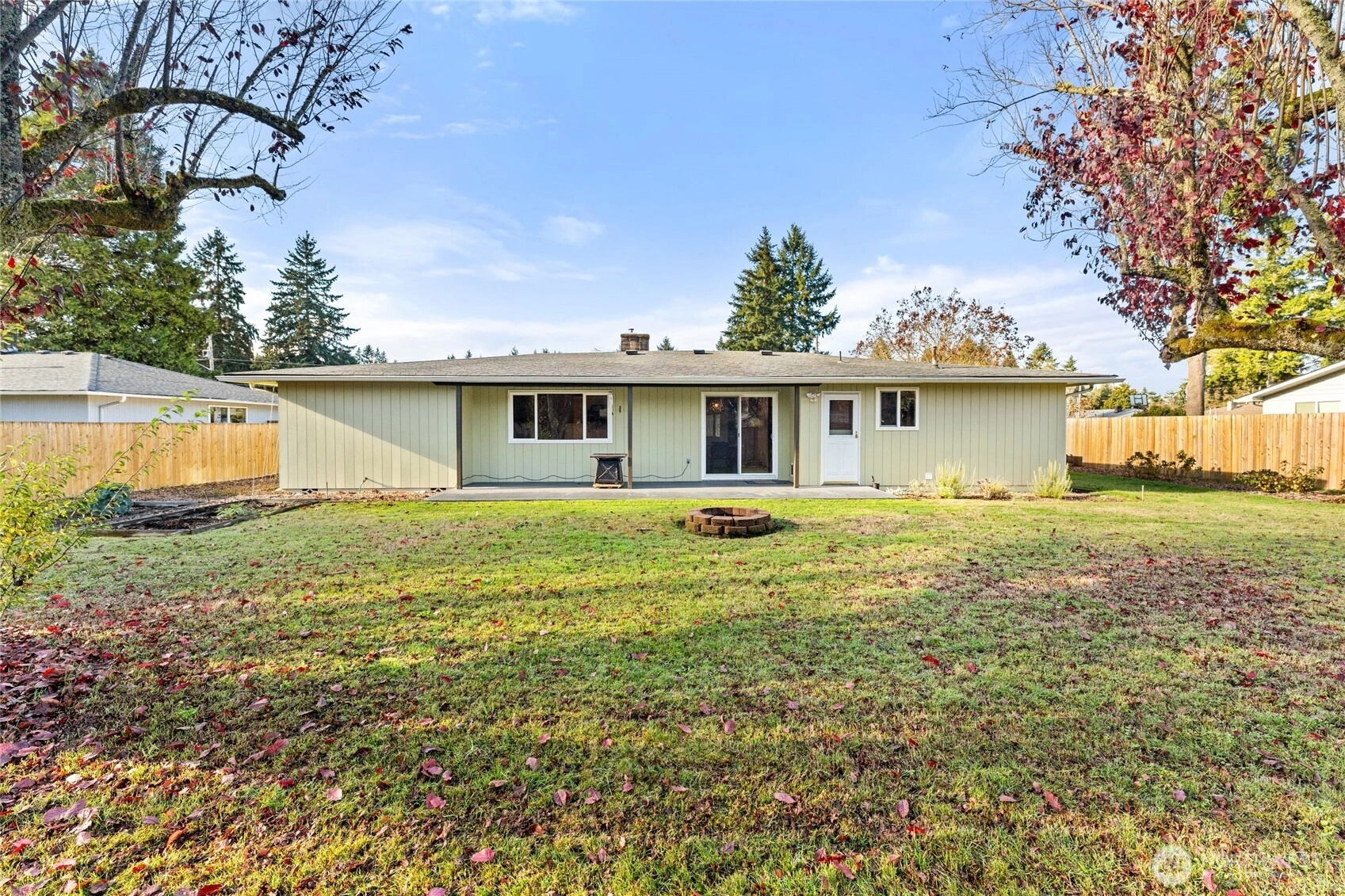 Charming, spotless, charged with mid-century magic, this beautifully maintained gem is move-in ready! This single-level, second-owner home offers 3 bedrooms and 1.5 baths, including a convenient half-bath off the primary suite. Gorgeous, original hardwood floors throughout!A roomy kitchen boasts abundant counter space and storage. The dining area opens through a slider onto a spacious patio and fully fenced backyard. Enjoy drive-thru access to the back yard - and a nice assortment of fruit trees and berry bushes, along with a new cedar greenhouse.The garage provides plenty of space for projects and all your gear. Roof replaced in 2018. Bonus: The City of Tumwater permits tiny homes in this area, providing room for flexibility and growth.
