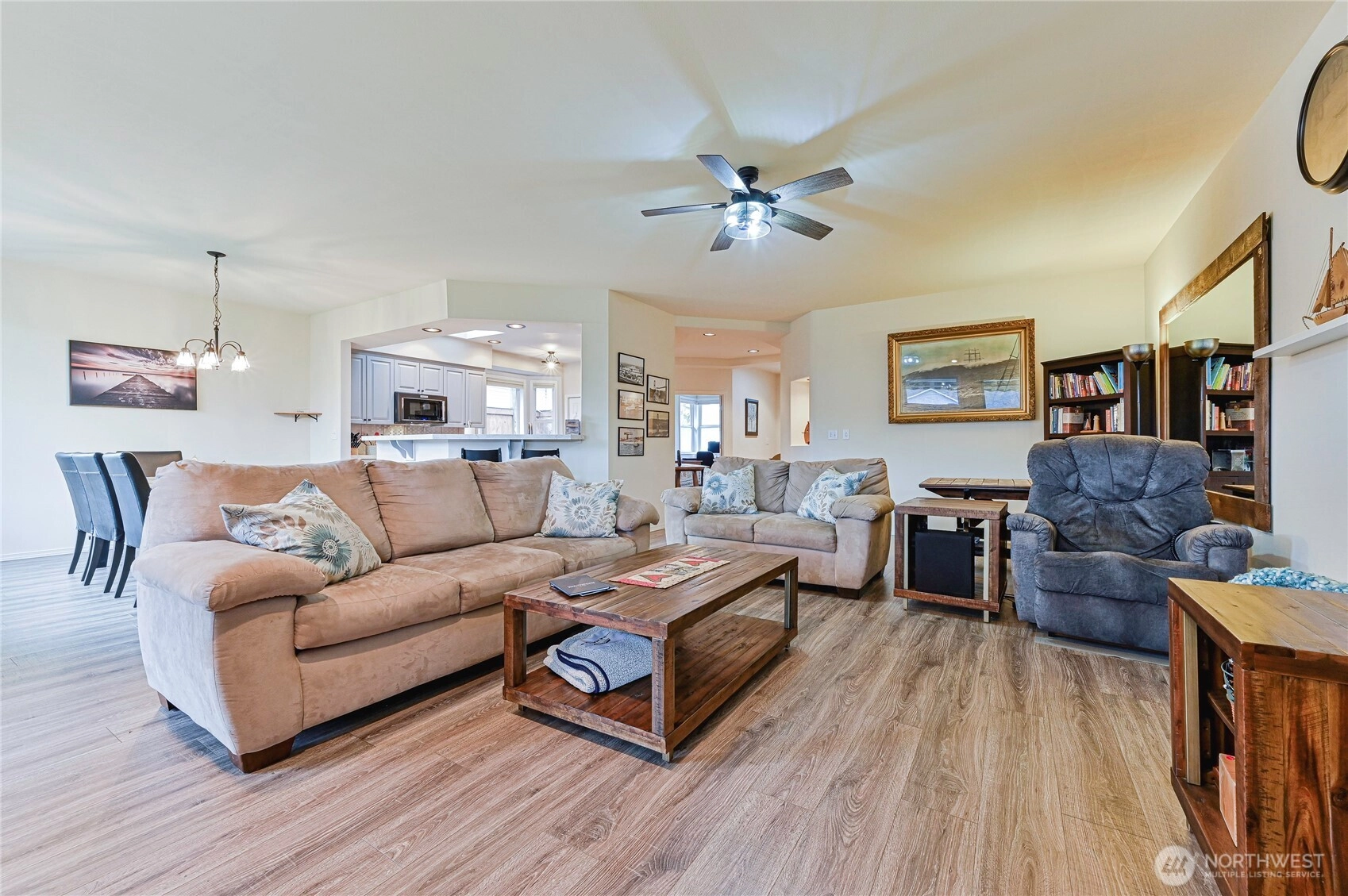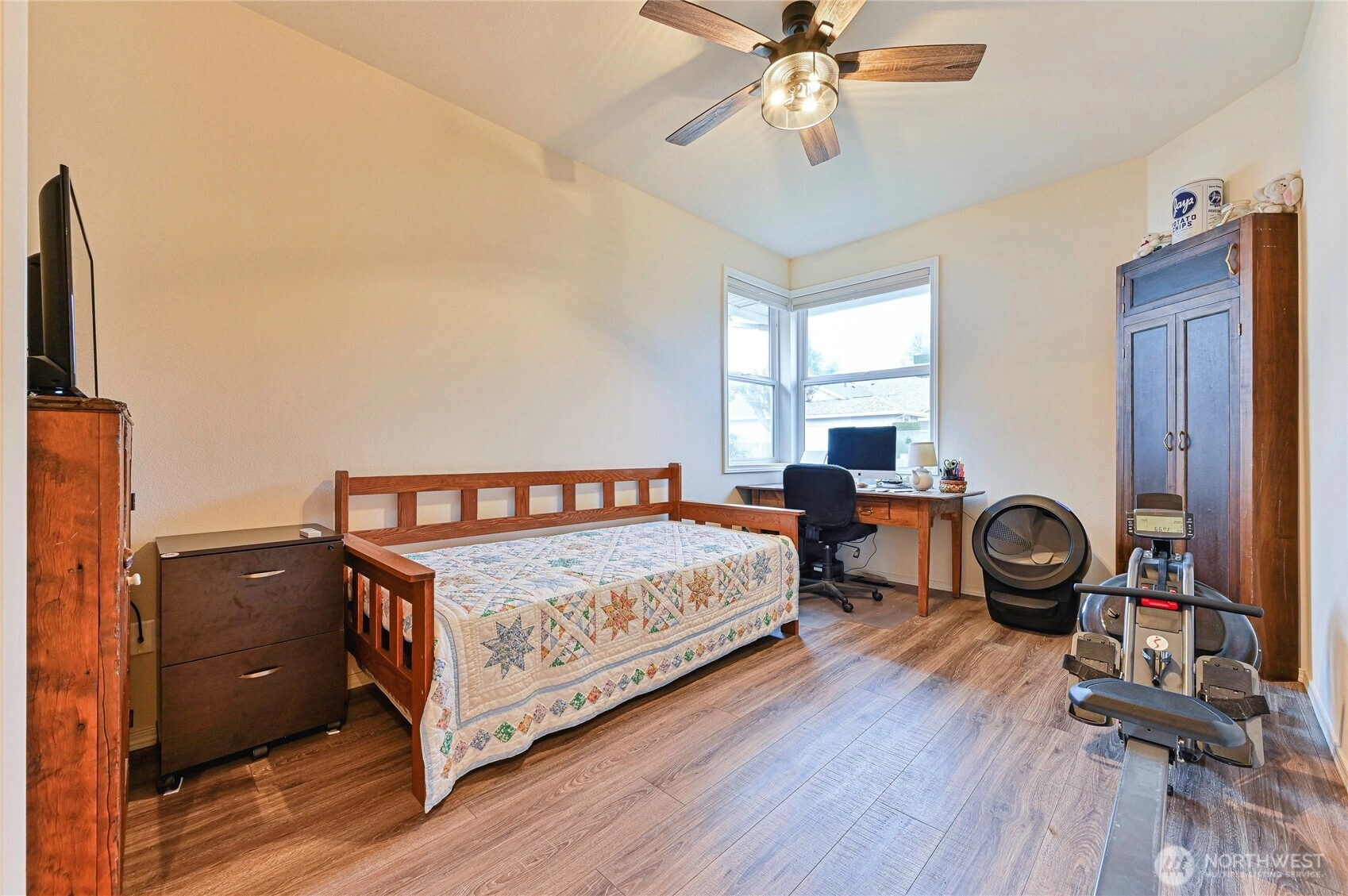 Welcome to this beautiful 2-bed, 2-bath 2 + office rambler filled w/ abundant natural light & upgrades throughout. Inviting layout features laminate flooring in living room, office, & bedrooms, complemented by vinyl sheet flooring in both bathrooms & laundry room. Refreshed kitchen shines w/ quartz counters, black stainless KitchenAid apps, & new sinks & fixtures. The primary bath offers a brand-new shower, while the second bath includes a sleek new shower door. Major system updates include a new furnace, A/C compressor, heat pump, & hot water heater. Enjoy outdoor living on the back patio w/ a Sunsetter motorized retractable awning, + top-down/bottom-up cellular shades on every window. An attached garage completes this move-in-ready home.