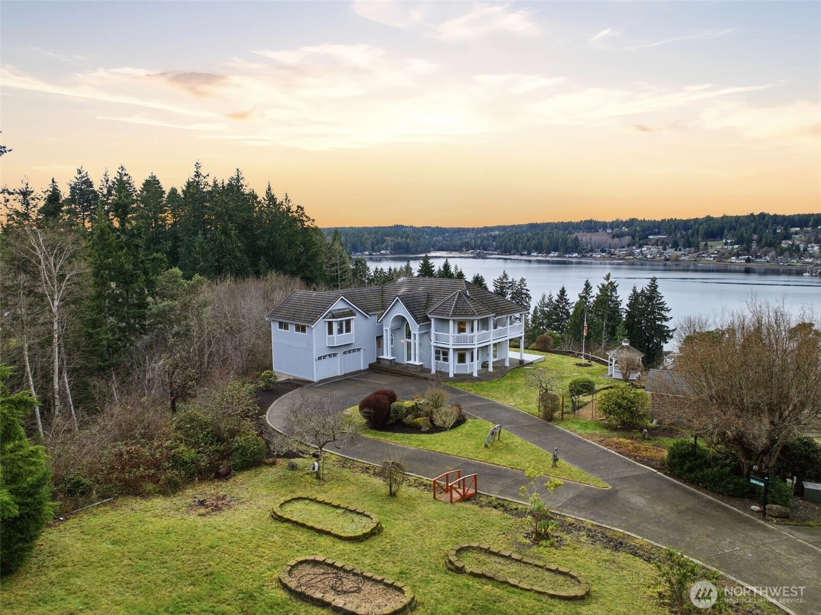 Discover a rare opportunity to own a private slice of the Pacific Northwest paradise, featuring sweeping views of North Bay, the Olympic Mtns and the charming town of Allyn. Set on 2.15-acres this over 3,000 sqft 2-story home with finished basement offers an unmatched lifestyle of tranquility, comfort, and natural beauty. From breathtaking panoramic views of North Bay to the expansive decks, this home is perfect for year-round entertaining. The finished basement comes complete with 2-bonus rooms, a 3/4 bathroom, flex space, a living room, and a kitchen w/wine bar, along with its own separate entrance (potential MIL or extra income rental apartment). 2-car attached garage provides ample space for vehicles, storage or a potential shop area.