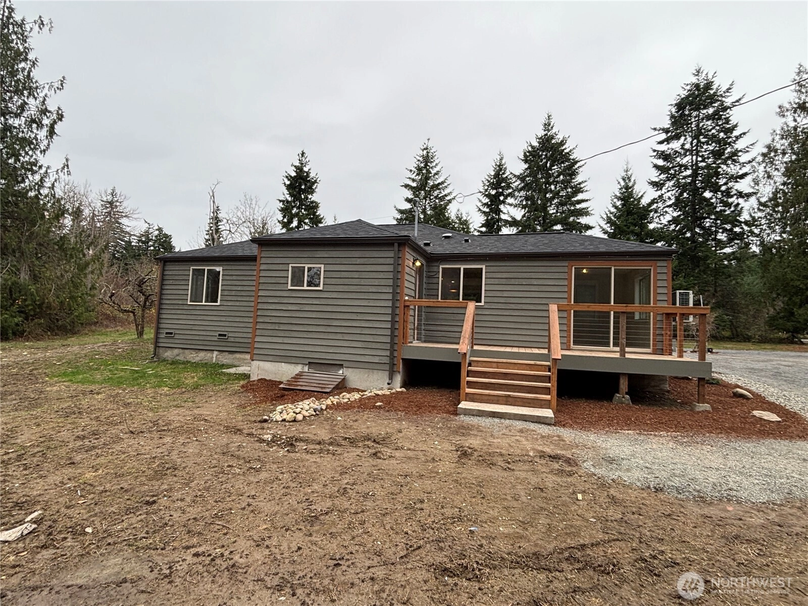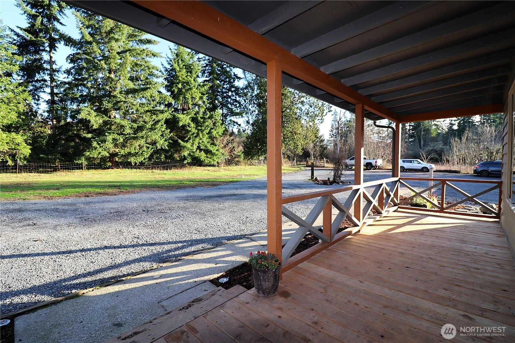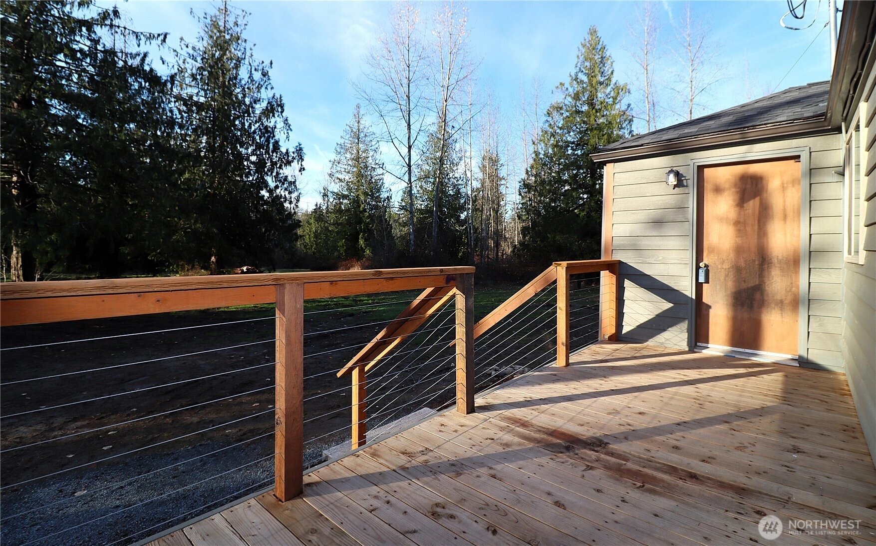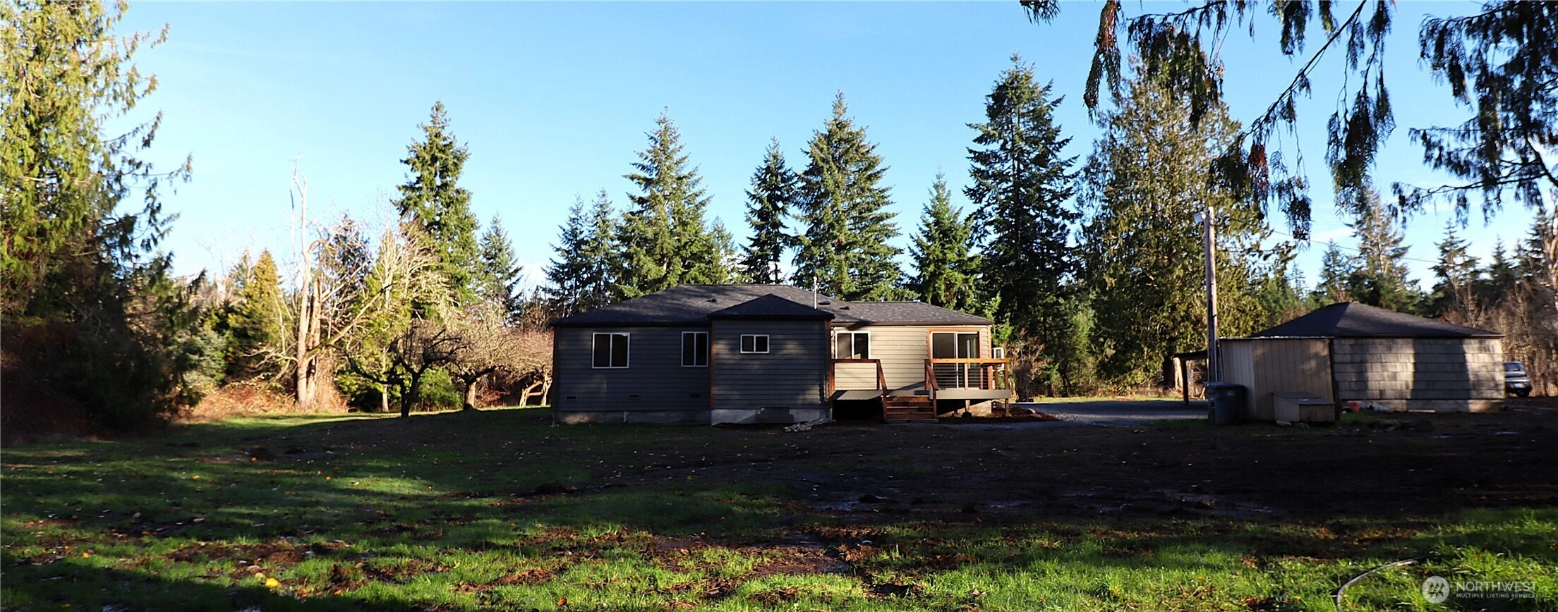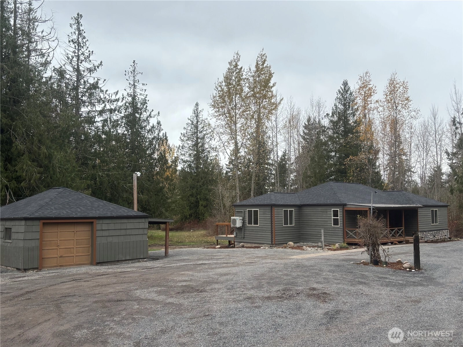 Beautifully updated craftsman house on nearly 10 acres with detached garage, new roof, RV hook up, and original barn. Upon entry, you're welcomed into an open living space with a stunning exposed beam that appears throughout the home. The kitchen boasts black quartz countertops with white veining, stainless steel appliances, and the star of the show, a quartz farmhouse sink. Off the kitchen is a large utility room with washer and dryer plugs and exterior access to your extended deck. In the primary bedroom, you're greeted by the lovely exposed beam, a large walk-in closet, and a soaking tub/shower with a view of the property. The home features two decks, landscaping, and has multiple fruit trees, and is completely fenced!