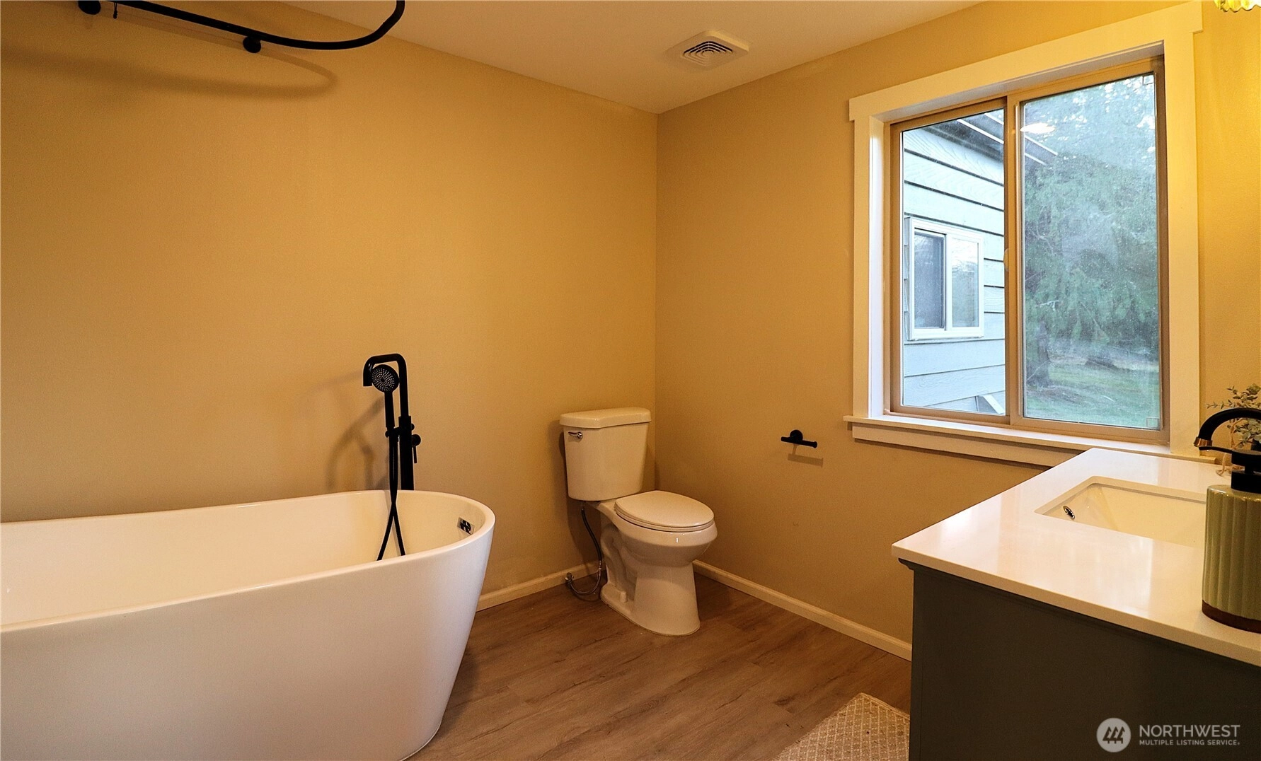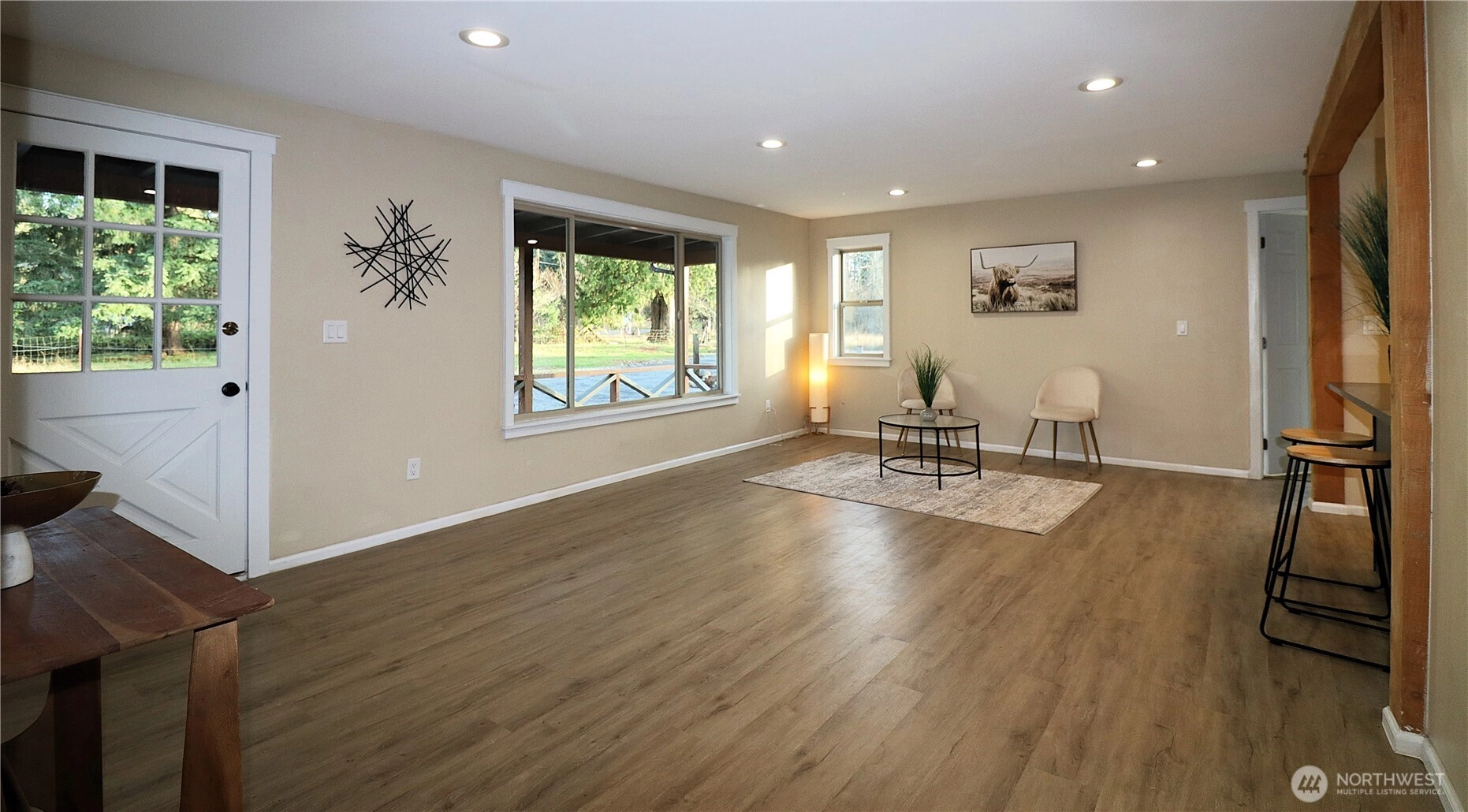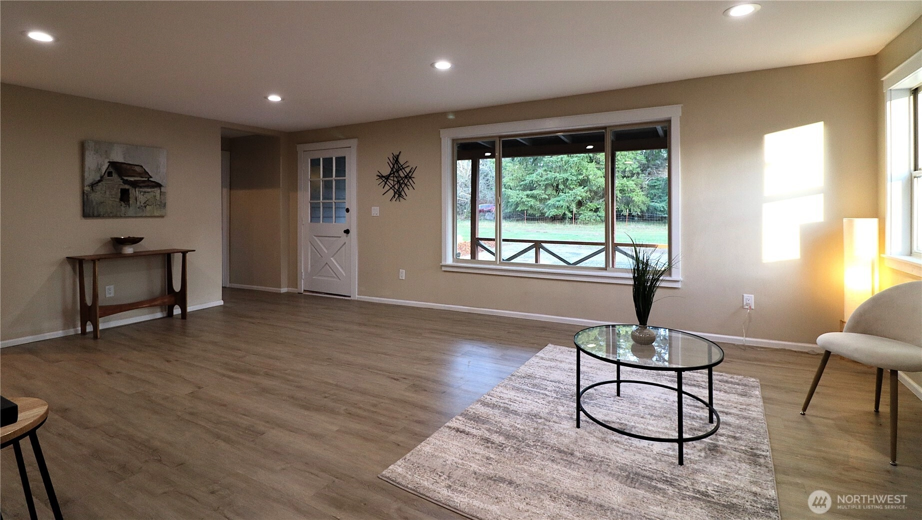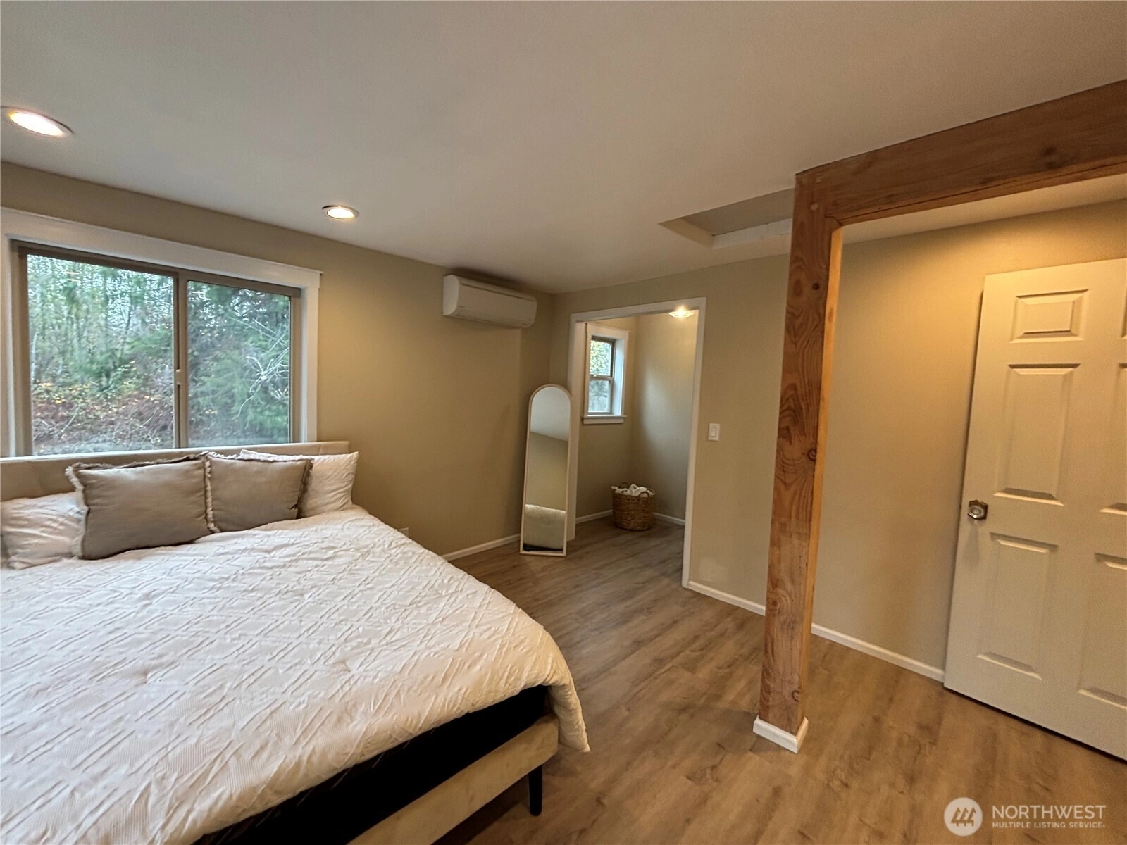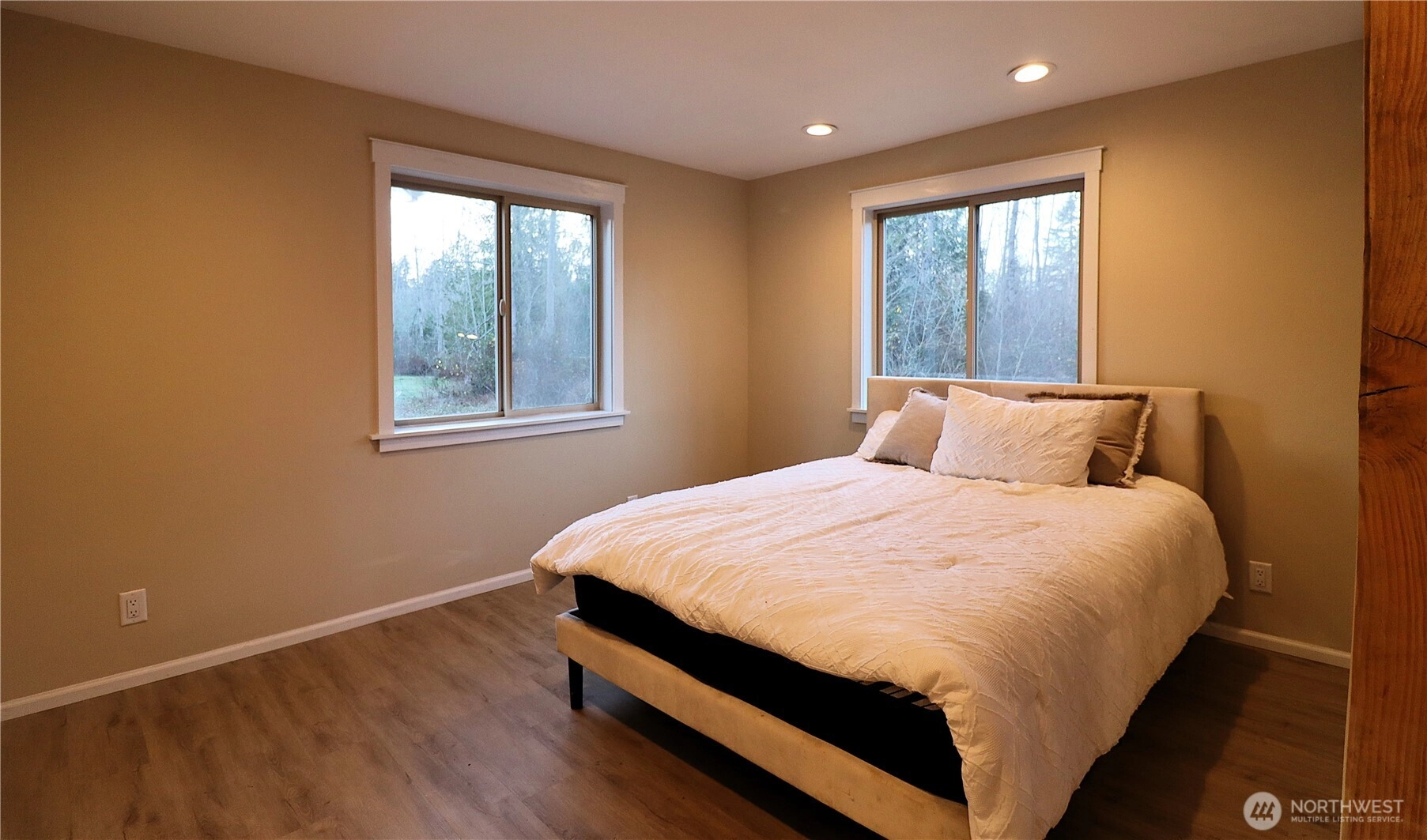 Beautifully updated craftsman house on nearly 10 acres with detached garage, new roof, RV hook up, and original barn. Upon entry, you're welcomed into an open living space with a stunning exposed beam that appears throughout the home. The kitchen boasts black quartz countertops with white veining, stainless steel appliances, and the star of the show, a quartz farmhouse sink. Off the kitchen is a large utility room with washer and dryer plugs and exterior access to your extended deck. In the primary bedroom, you're greeted by the lovely exposed beam, a large walk-in closet, and a soaking tub/shower with a view of the property. The home features two decks, landscaping, and has multiple fruit trees, and is completely fenced!