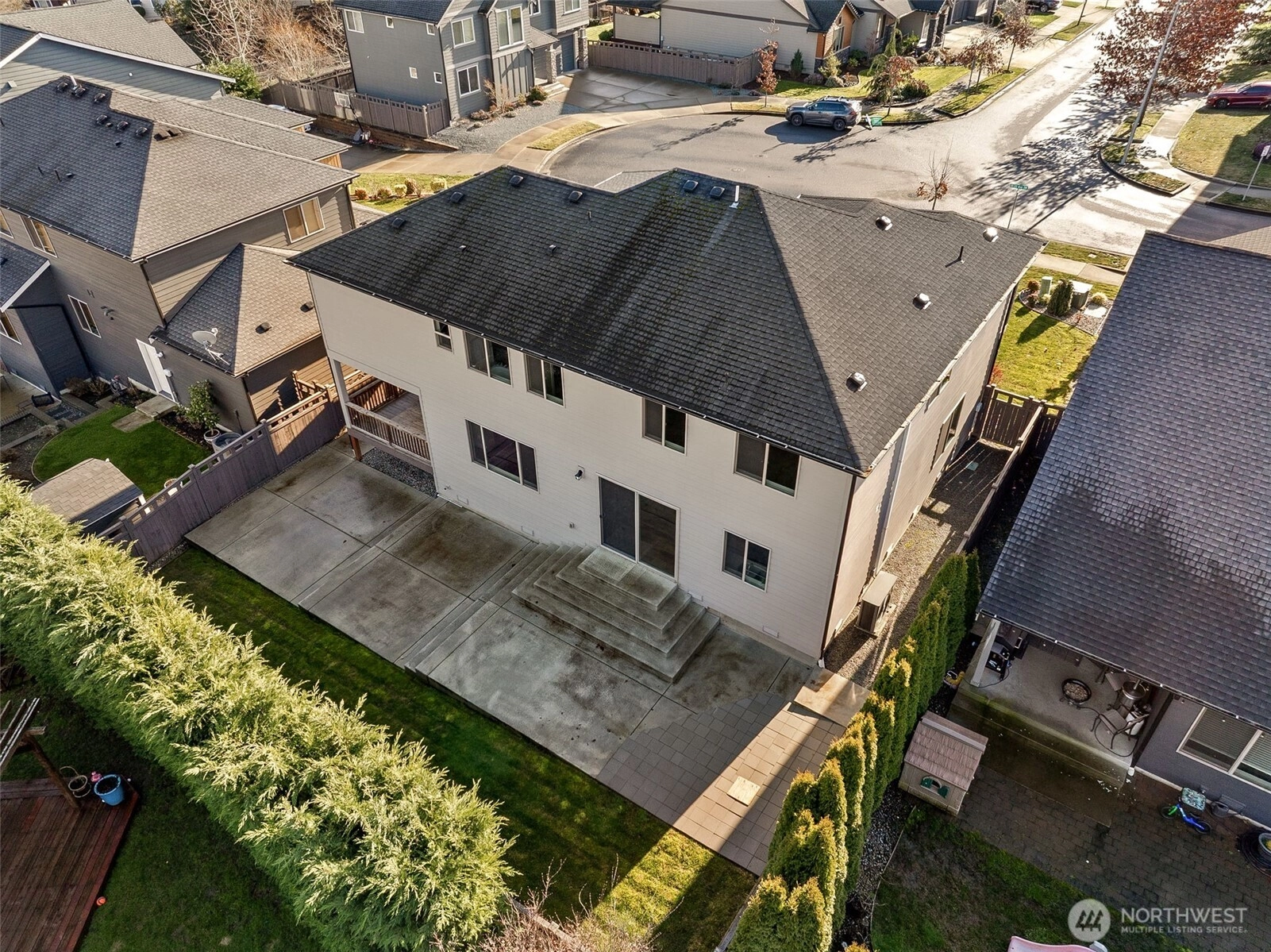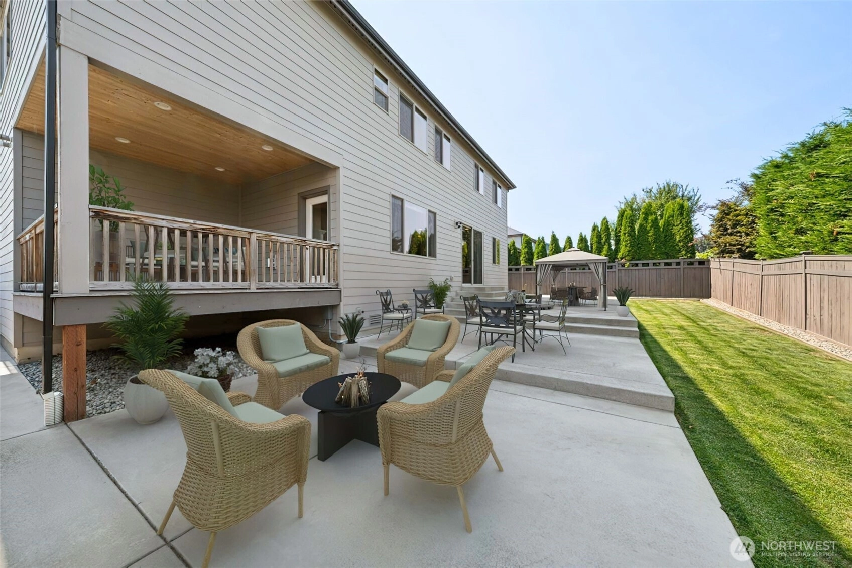 INCREDIBLE NEW PRICE in the BEST LOCATION! This stunning home in Fruitland View Estates is squeaky clean & has been meticulously maintained by the original owner w/ high-end finishes throughout. Main floor features soaring vaulted ceilings, beautiful kitchen w/ oversized island, quartz counters, gas range & walk-in pantry. Huge family room adjacent to kitchen w/ gas fireplace & access to the back yard & covered deck. Upstairs, huge primary bedroom w/ private 5-pc bath w/ 2 walk-in closets, laundry & 4 secondary bedrooms. Covered deck overlooks private, fully fenced yard w/ sprinkler system & custom concrete patio (wired for hot tub) for outdoor living. Air conditioning & 3-car garage, too! Desirable location minutes from downtown Puyallup & 512.